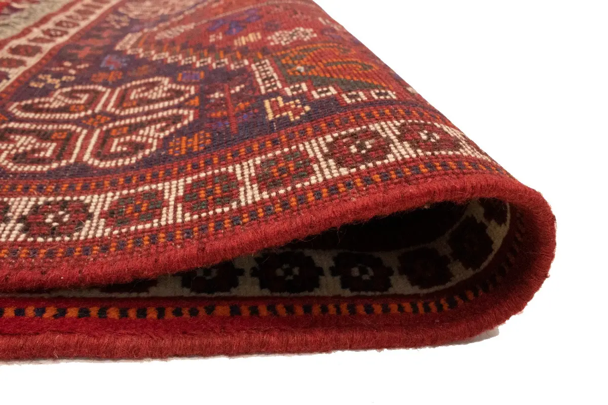 This authentic 3'4X5 red vintage Persian rug was masterly knotted by the hands of weavers inspired by a variety of wonderful artistic designs, to recreate the aged look of the original piece with a richness of color and intricate patterned background field. What set this tribal Oriental area rug from the others are the material and dye used (wool pile and cotton foundation), knot count, antique designs, fantastic grades, and its regional historical connection: it has deep roots, from the story of the people who produced it to the meaning of the symbols and colors displayed across its canvas that have been praised for centuries. This home décor carpet will be completely cozy and inviting that never will go out of style! Also, this Oriental rug would be among your most valuable treasures, it is a great investment that accrues value over time, and it will last for generations because was woven with high-quality, all-natural wool; it won’t rip, tear, or shed. Environmentally friendly, opulent yet affordable; this Persian rug will give you a thorough amount of character to help define your living space with luxury and warmth that will capture the eyes and attention of your audience (homeowners, designers, decorators, family and friends). EB-5652