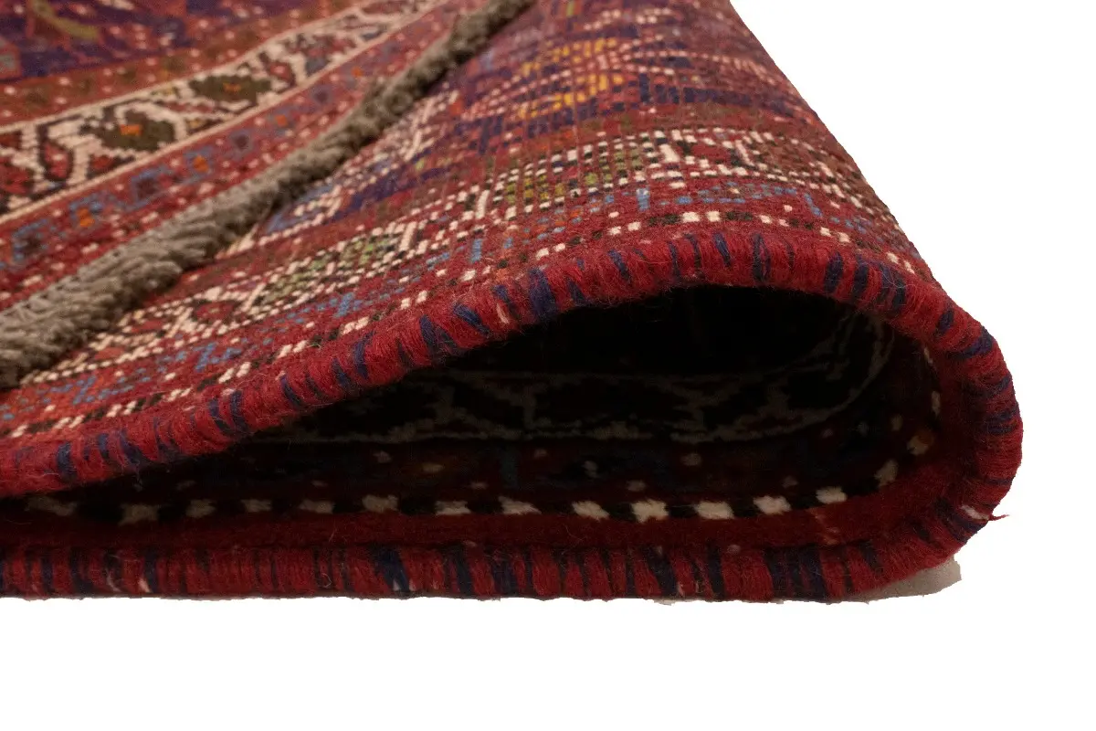 This original 3'5X5'3 red vintage Persian rug was well-constructed by the hands of master weavers motivated by a variety of stunning artistic designs, to recreate the aged look of the exceptional piece with a richness of color and developed decorative background field. What set this tribal Oriental area rug from the others are the material and dye used (wool pile and cotton foundation), knot count, ancient designs, fantastic grades, and its regional historical connection: it has deep roots, from the story of the people who produced it to the meaning of the symbols and colors displayed across its canvas that have been praised for centuries. This home décor carpet will be completely cozy and inviting that never will go out of style! Also, this Oriental rug would be among your most valuable treasures, it is a great investment that increase in value over time, and it will last a lifetime because was woven with high-quality, all-natural wool; it won’t rip, tear, or shed. Eco-friendly, opulent yet affordable; this Persian rug will give you an extra pop of character to help define your home environment with elegance and warmth that will capture the eyes and attention of your audience (homeowners, designers, decorators, family and friends). EB-5653