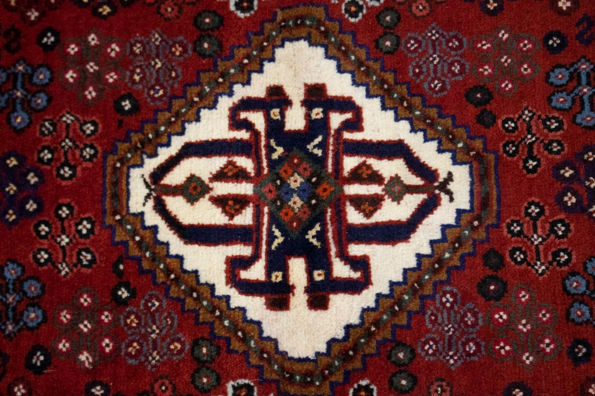 This original 3'5X5 red vintage Persian rug was well-constructed by the hands of master weavers motivated by a variety of stunning artistic designs, to recreate the aged look of the exceptional piece with a richness of color and developed decorative background field. What set this tribal Oriental area rug from the others are the material and dye used (wool pile and cotton foundation), knot count, ancient designs, fantastic grades, and its regional historical connection: it has deep roots, from the story of the people who produced it to the meaning of the symbols and colors displayed across its canvas that have been praised for centuries. This home décor carpet will be completely cozy and inviting that never will go out of style! Also, this Oriental rug would be among your most valuable treasures, it is a great investment that increase in value over time, and it will last a lifetime because was woven with high-quality, all-natural wool; it won’t rip, tear, or shed. Eco-friendly, opulent yet affordable; this Persian rug will give you an extra pop of character to help define your home environment with elegance and warmth that will capture the eyes and attention of your audience (homeowners, designers, decorators, family and friends). EB-3963