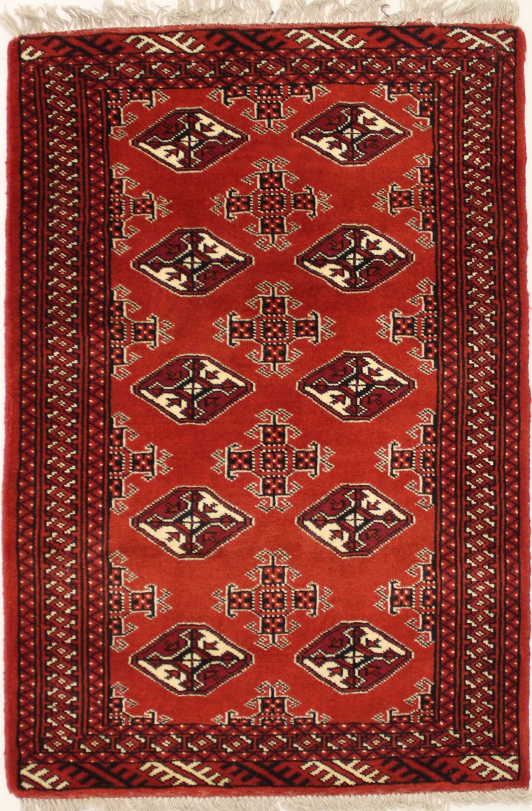This Elegant 3X5 Turkoman Area Rug was made by the hands of gifted weavers inspired by a variety of Gorgeous artistic designs, to recreate the aged look of the original piece with a richness of color and beautifully elaborated Geometric background field. This Red Wool Persian rug will be completely cozy and inviting that never will go out of style!