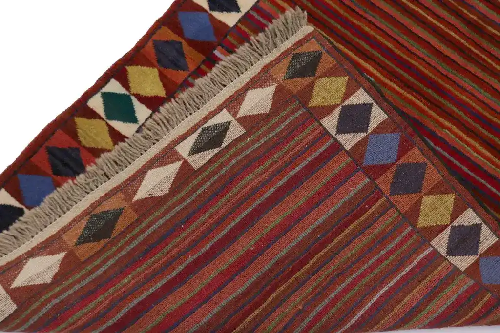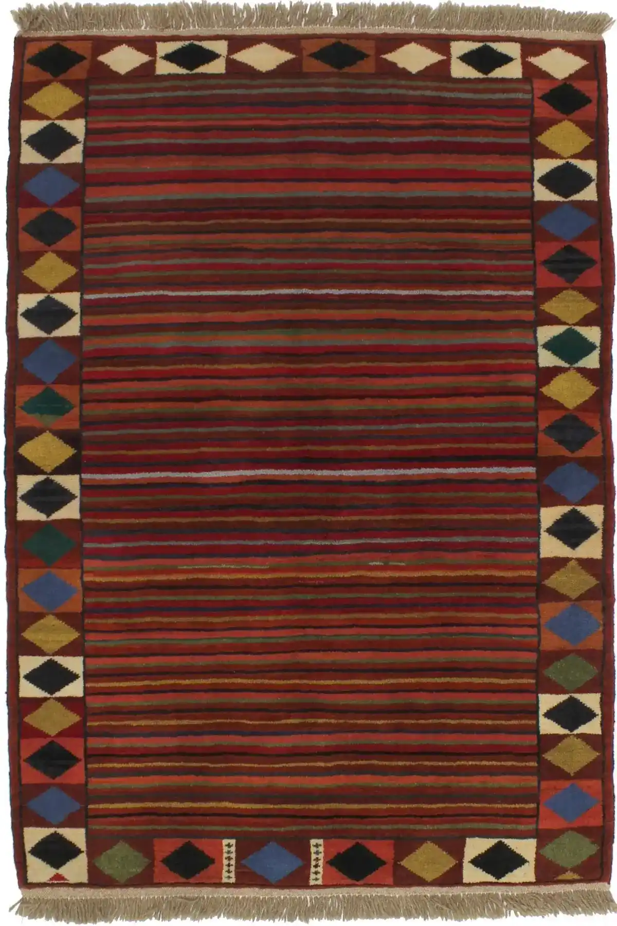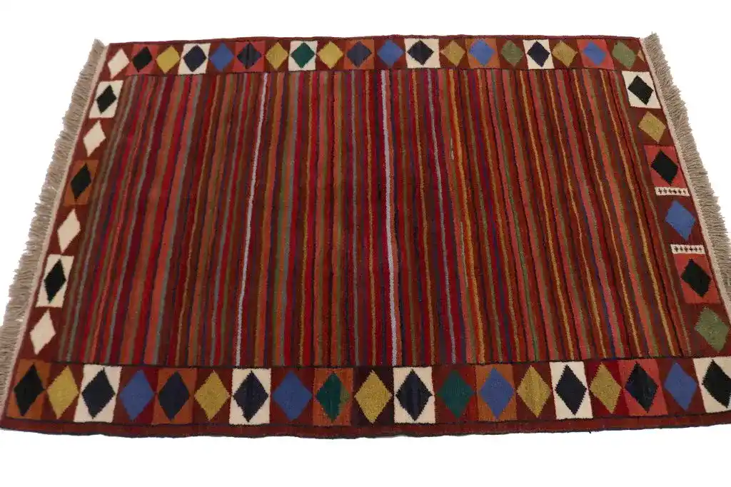 Red Tribal Stripes & Border 4X6 Gabbeh Persian Rug