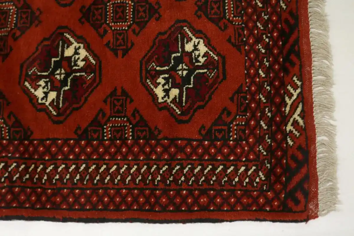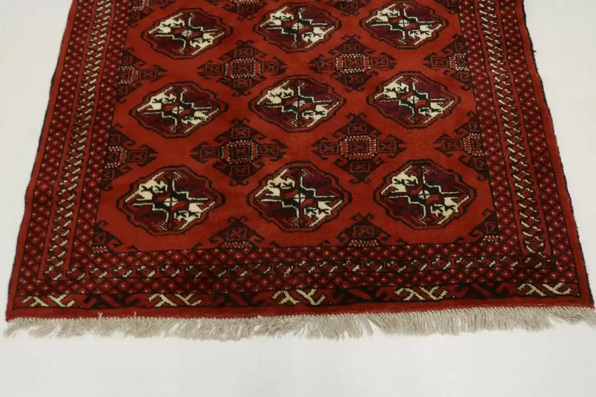 This Exquisite 4X6 Red Turkoman Area Rug was made by the hands of gifted weavers inspired by a variety of Stunning artistic designs, to recreate the aged look of the original piece with a richness of color and beautifully elaborated Geometric background field. This Red 100% Wool Persian rug will be completely cozy and inviting that never will go out of style! Also, this Geometric Oriental rug would be among your most valuable treasures, it is a great investment that increase in value over time, and it will last for generations because was woven with high-quality 100% Wool. Environmentally friendly, opulent yet affordable; this Recently Made Stunning Turkoman rug will give you a thorough amount of character to help define your living space with sophistication and warmth that will capture the eyes and attention of your audience (homeowners, designers, decorators, family and friends).