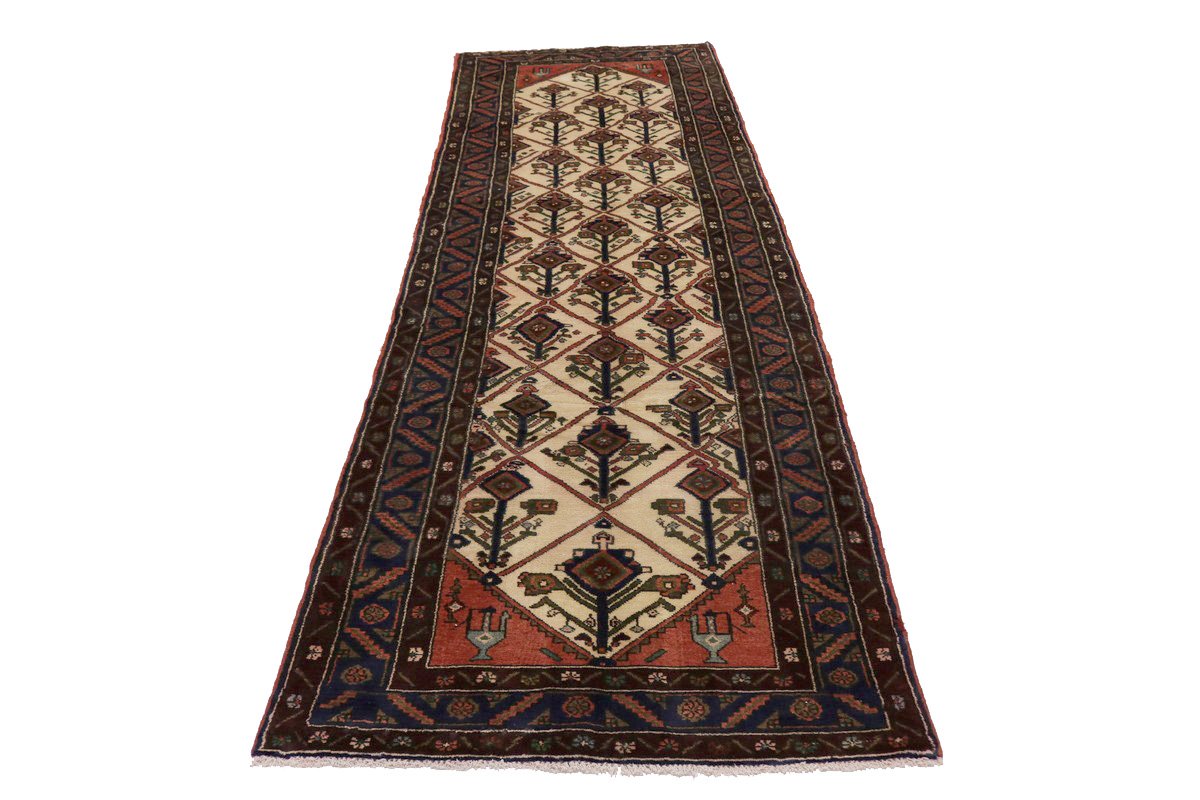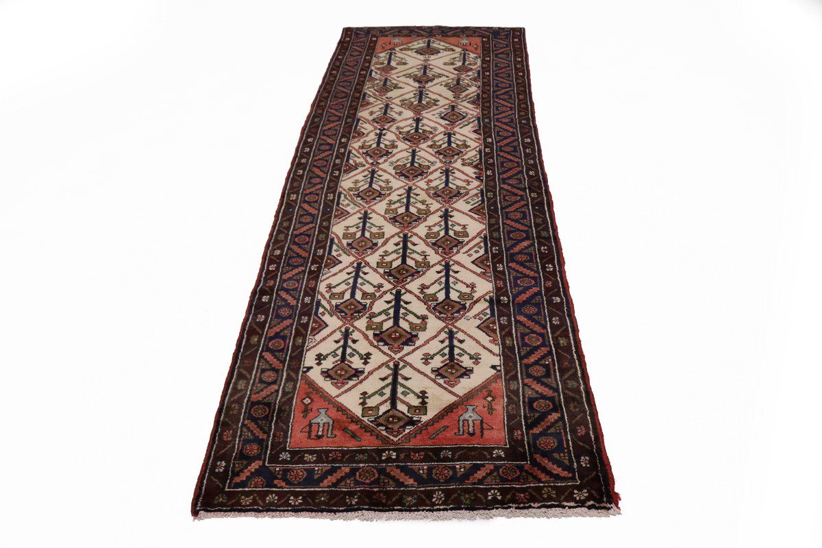 Semi Antique Beige Tribal 3X10 Hamedan Persian Runner Rug