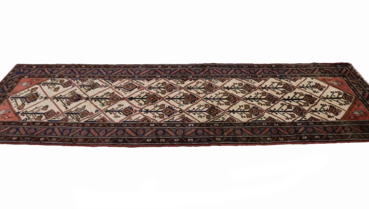 Handmade semi antique Persian runner made with natural dyes (fine wool pile and cotton foundation), superior knot count, and appealing ancient designs. This Oriental runner never will go out of style and would be among your most valuable treasures.