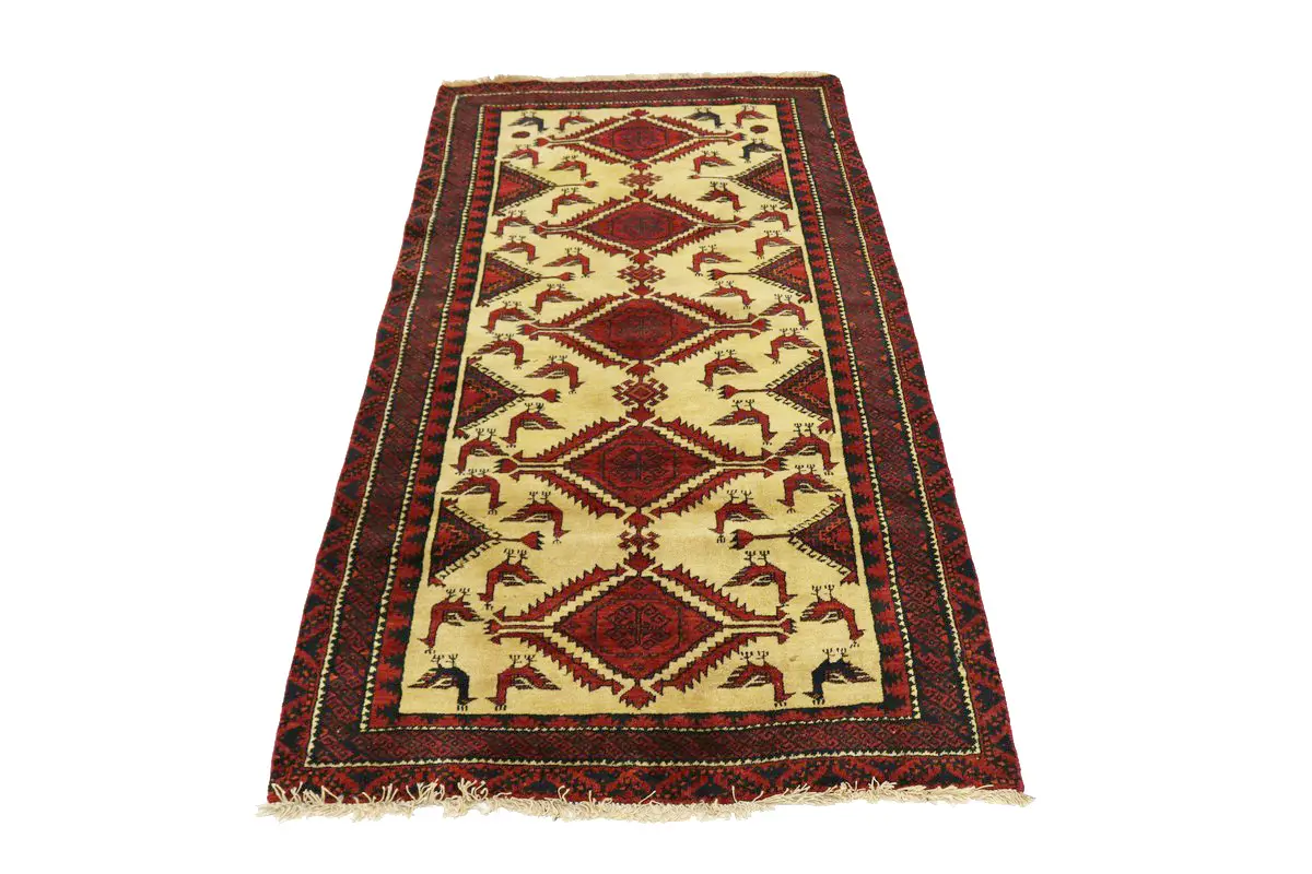 Beige Semi Antique Tribal 3X6 Balouch Hamedan Persian Rug