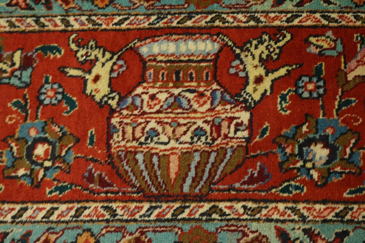 Signed Semi Antique Tabriz Persian rug made with natural dyes (fine wool pile and cotton foundation), superior knot count, and appealing ancient designs. This Oriental rug never will go out of style and would be among your most valuable treasures.