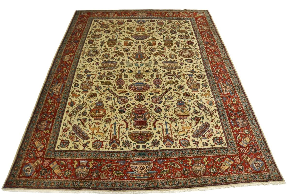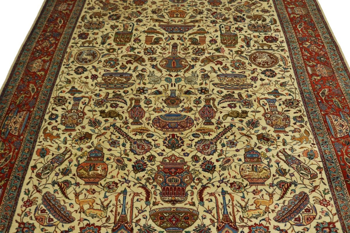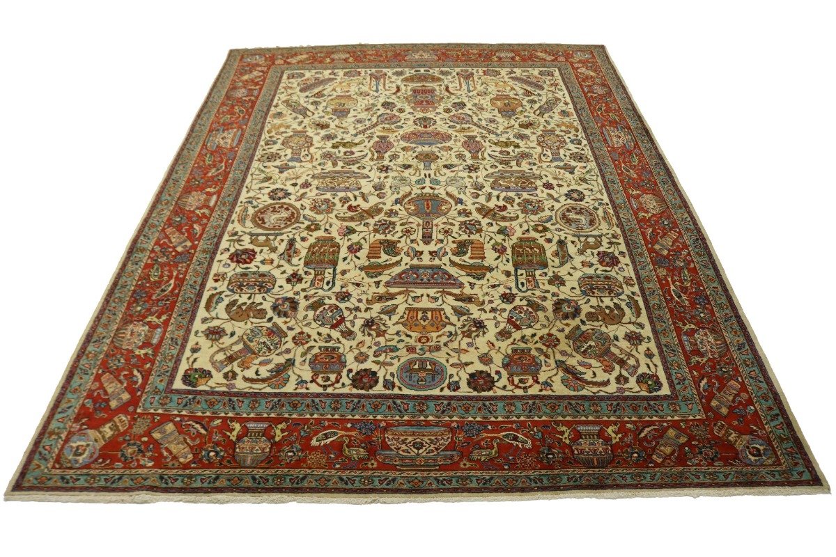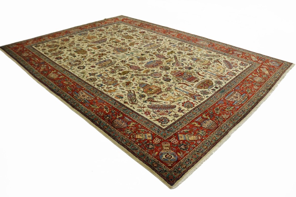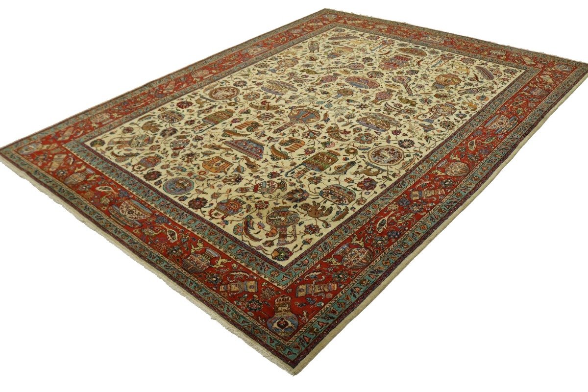 Semi Antique Cream Pictorial 10X14 Tabriz Persian Rug