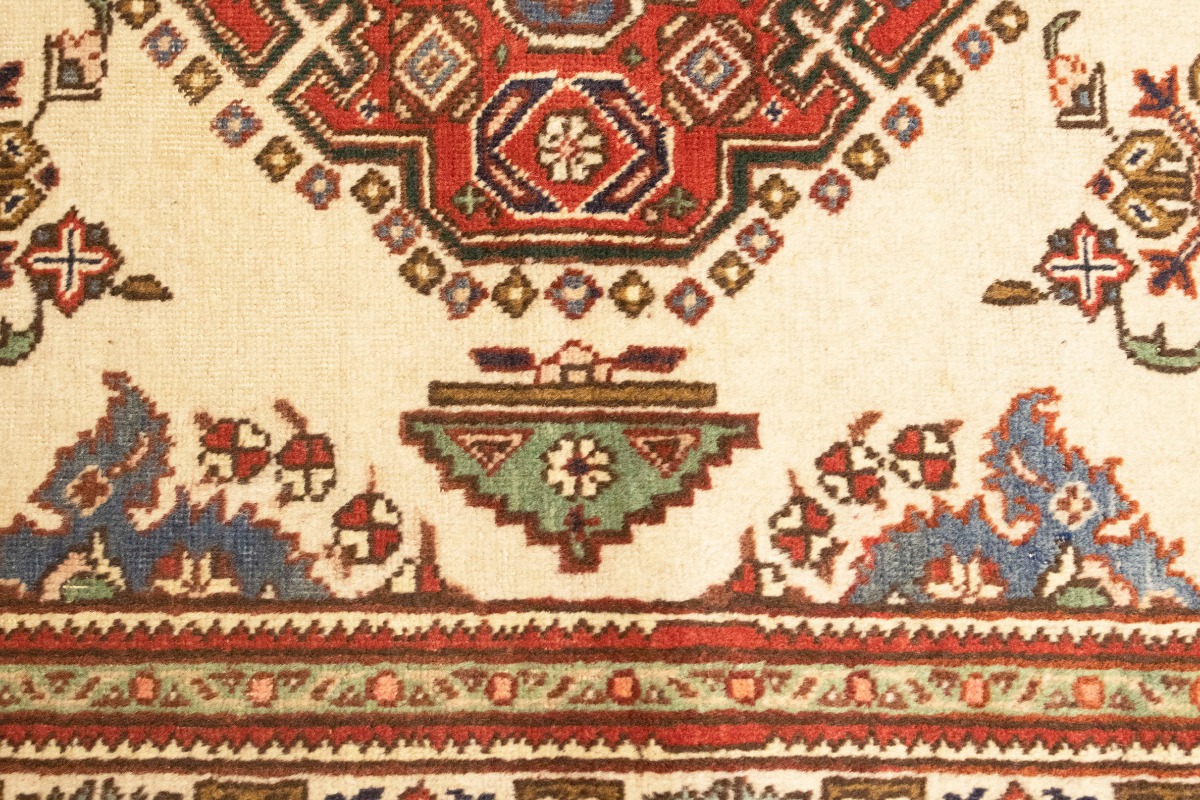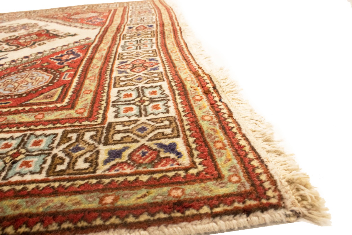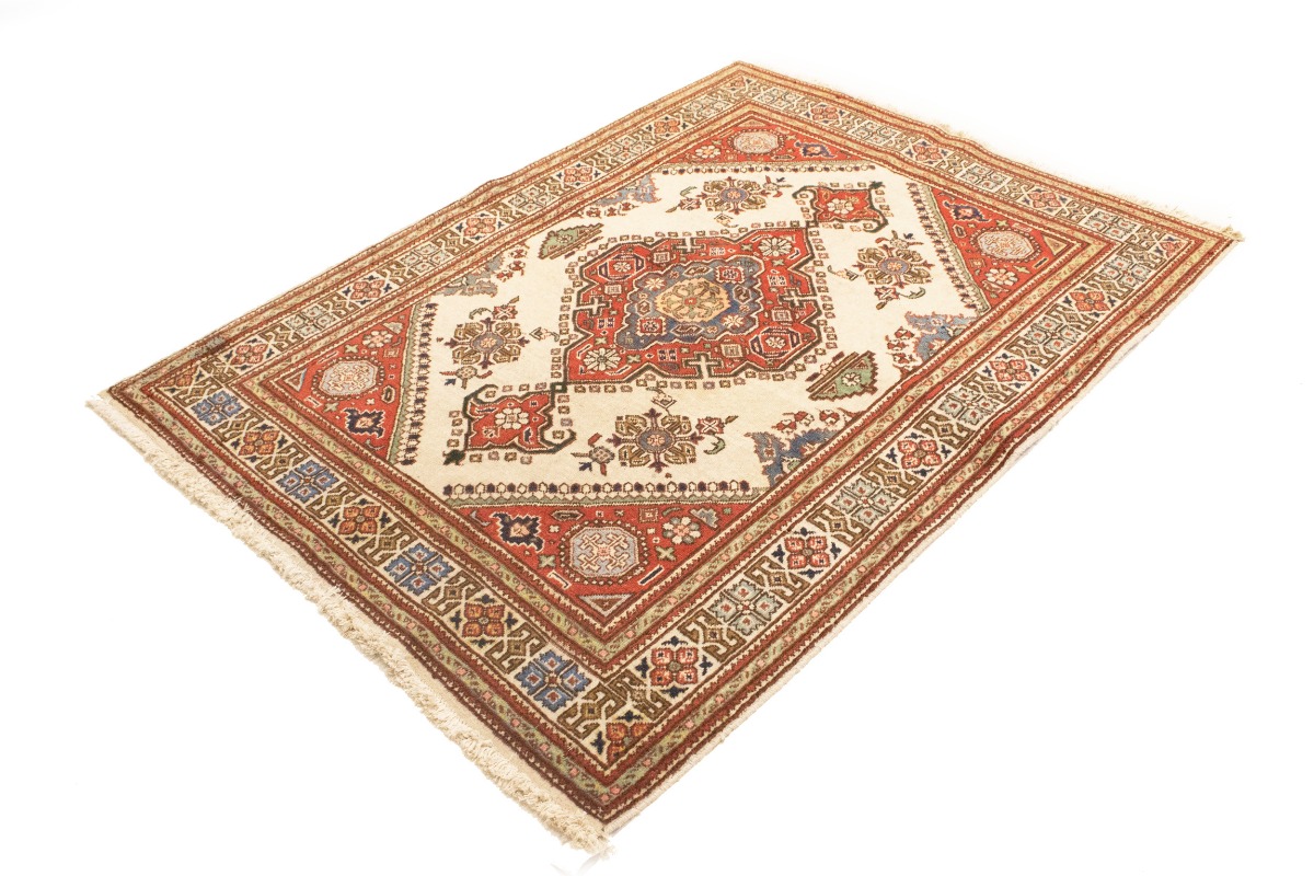 Handmade semi antique 4'8X6'3 cream Persian rug made with vegetable dyes (fine wool pile and cotton foundation), exceptional knot count, and alluring ancient designs. This Oriental rug never will go out of style and would be among your most valuable treasures.