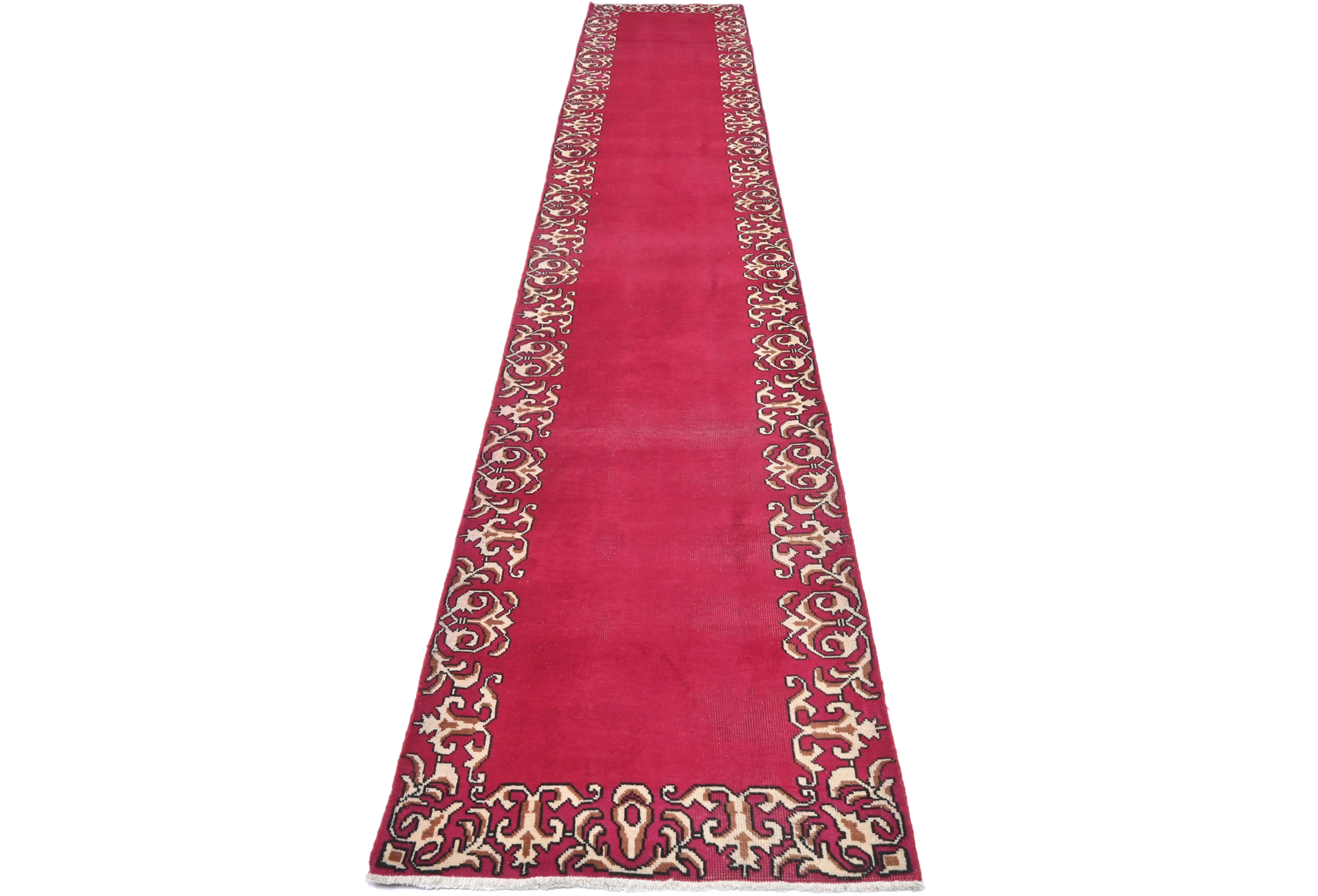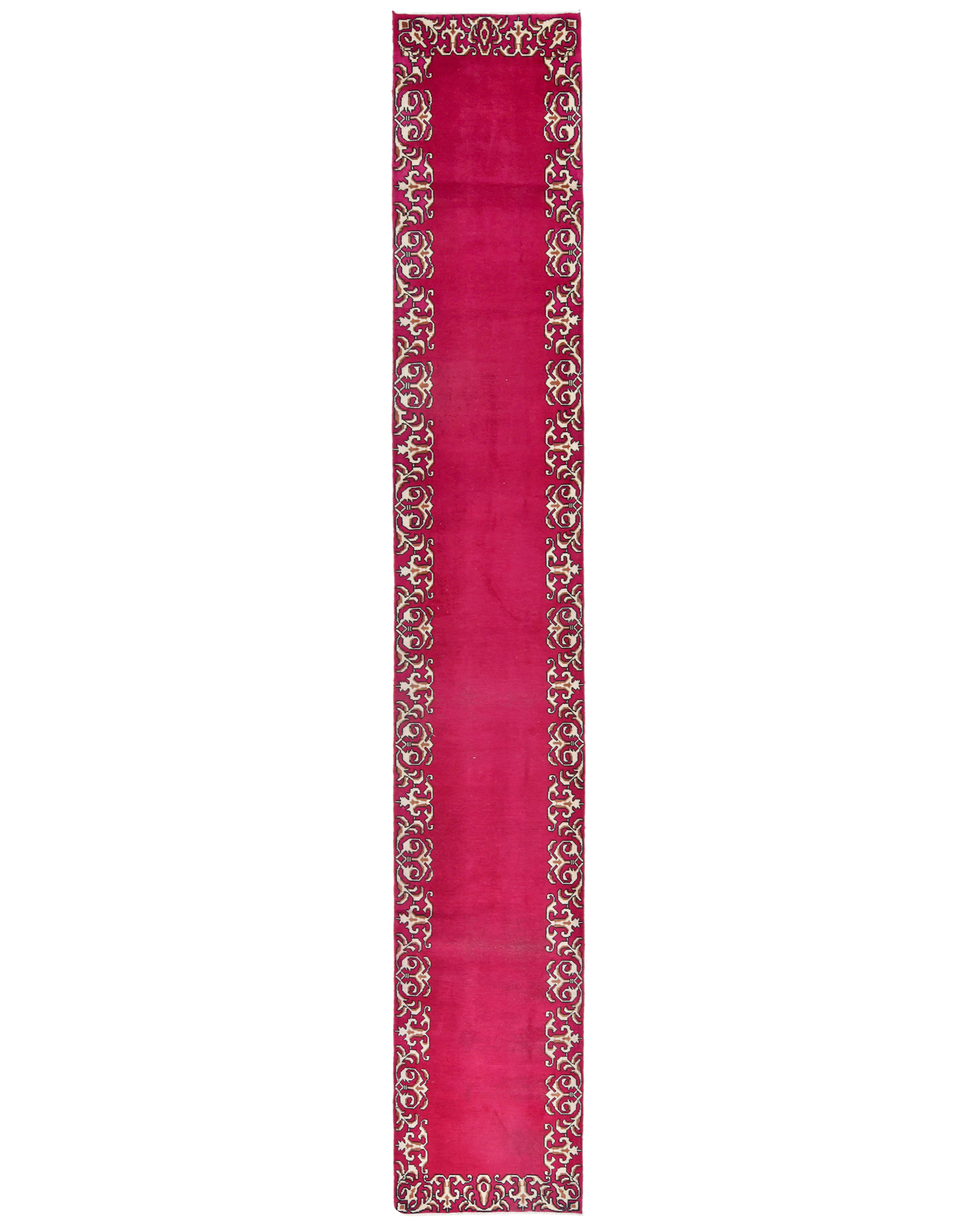 Semi Antique Fuchsia Rose Classic 2'5X15'5 Tabriz Persian Runner Rug