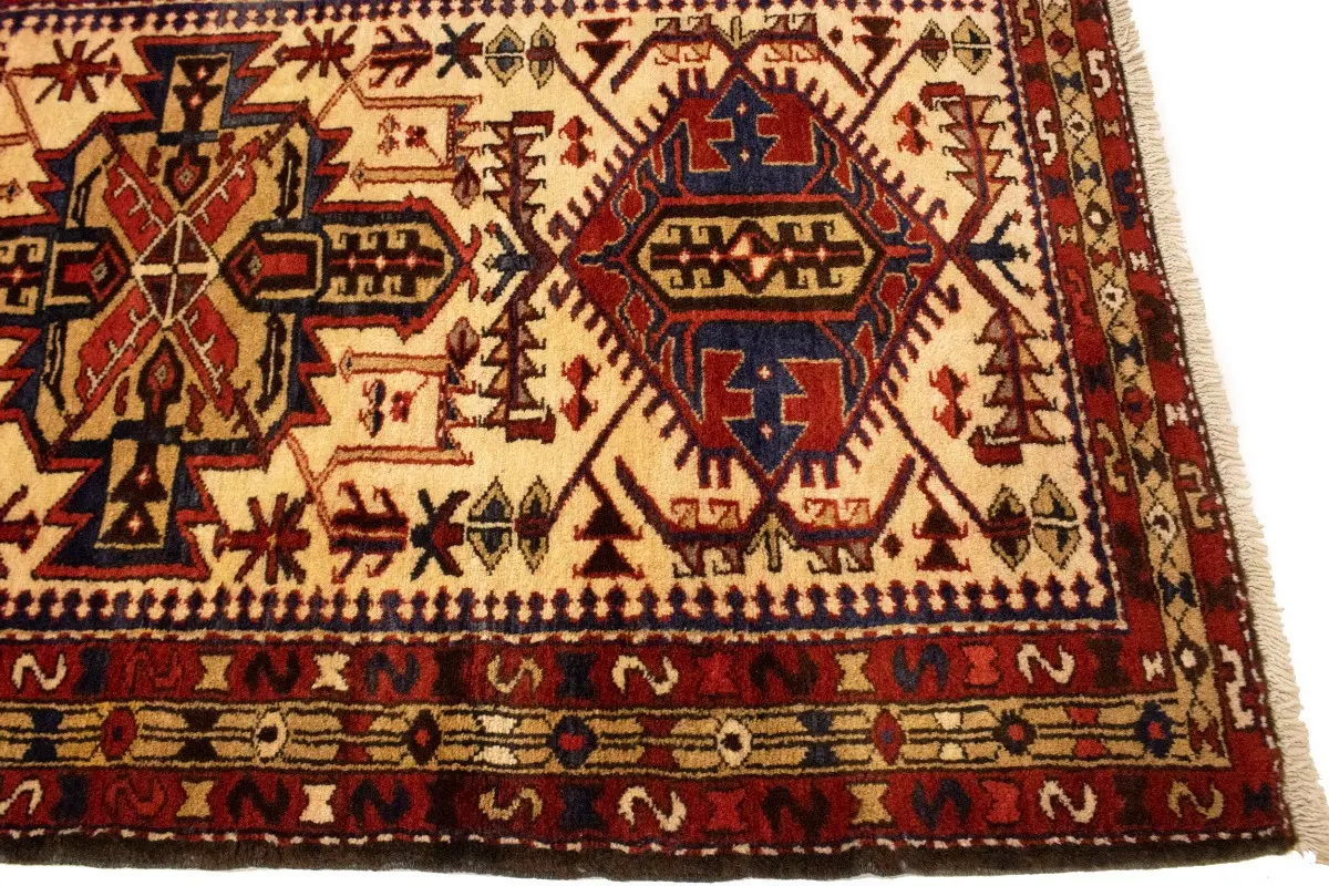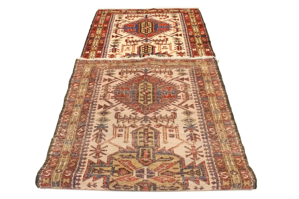 Semi Antique Geometric Cream 4X11 Karajeh Persian Runner Rug