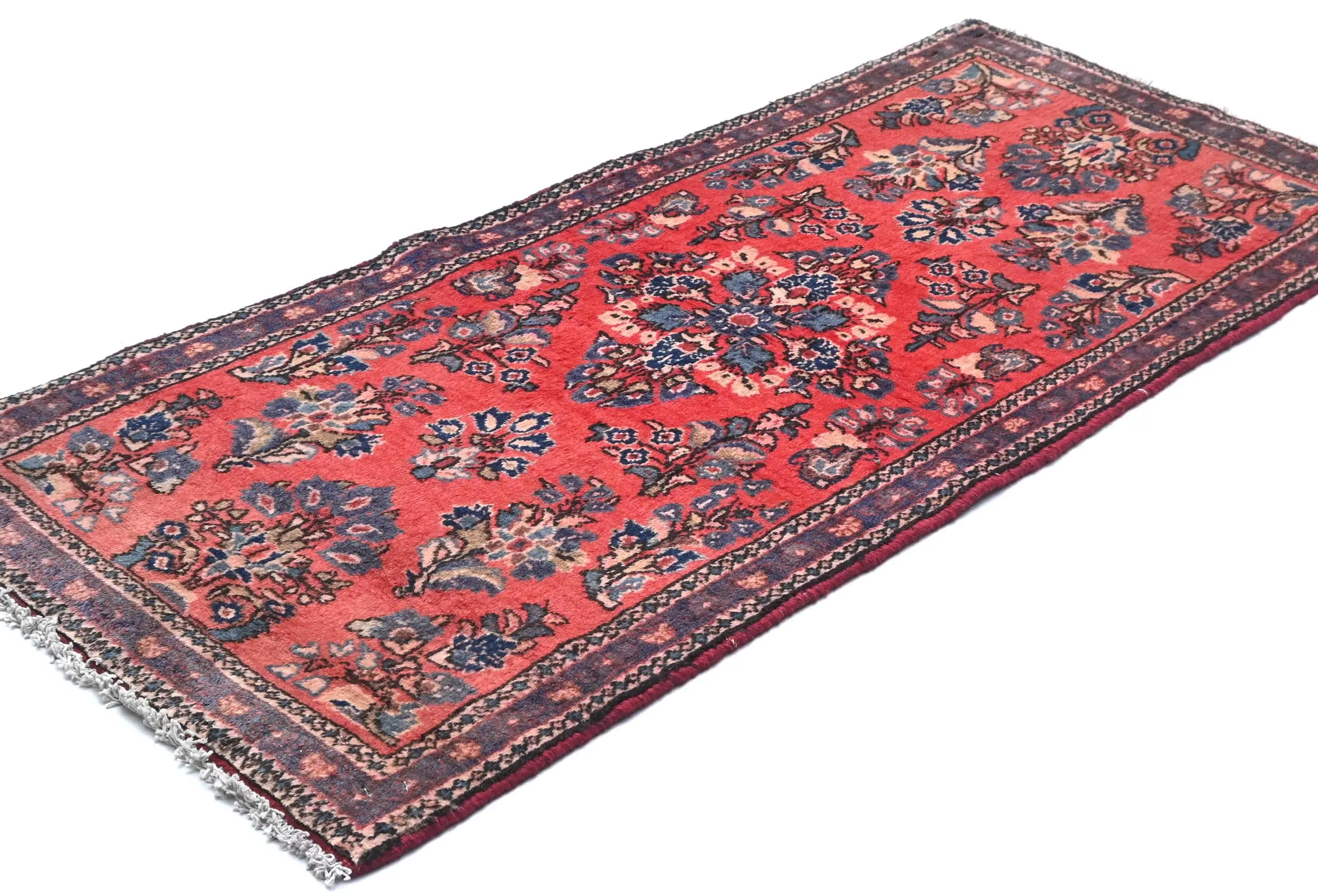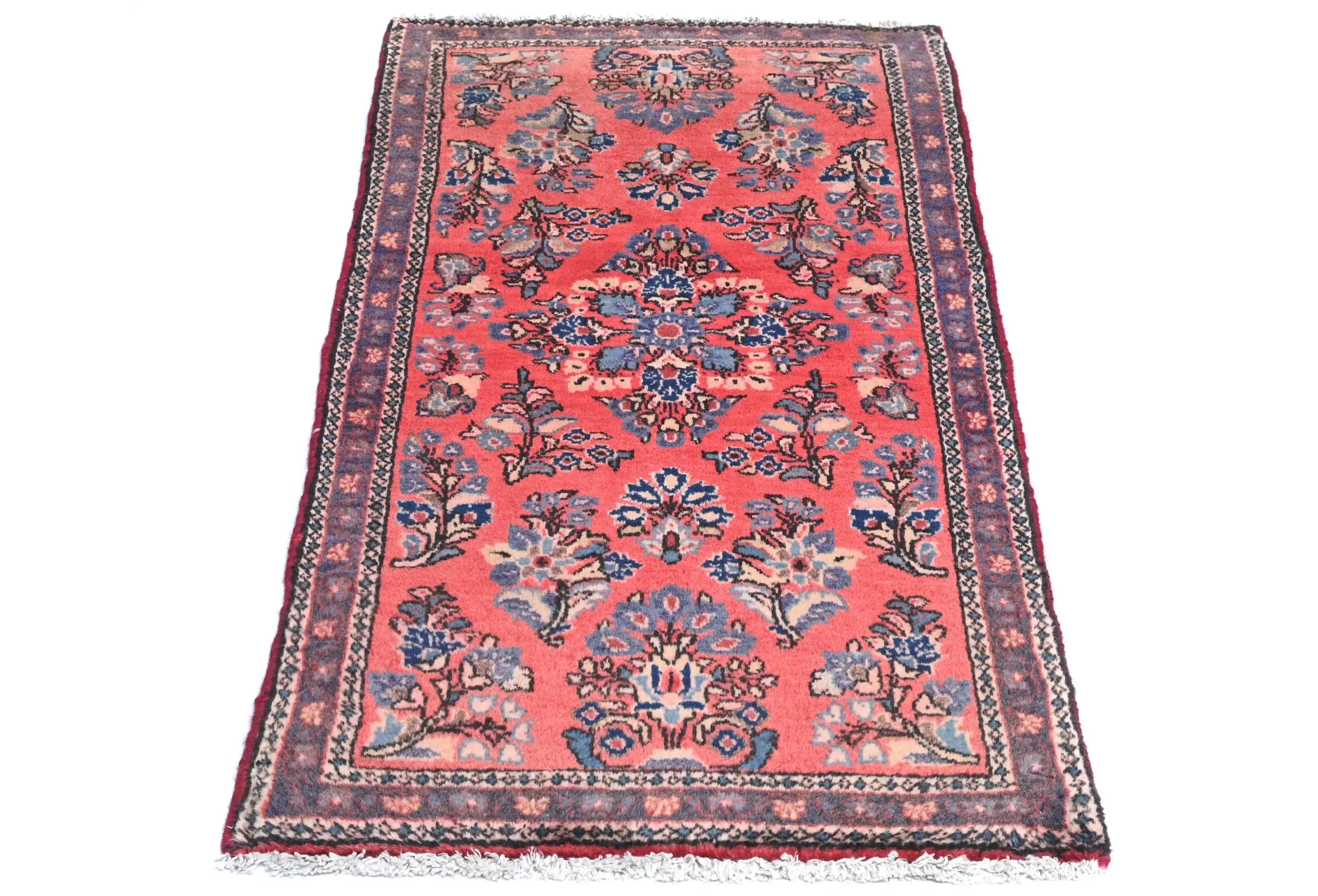Semi Antique Light Red Floral 2X4 Sarouk Persian Rug
