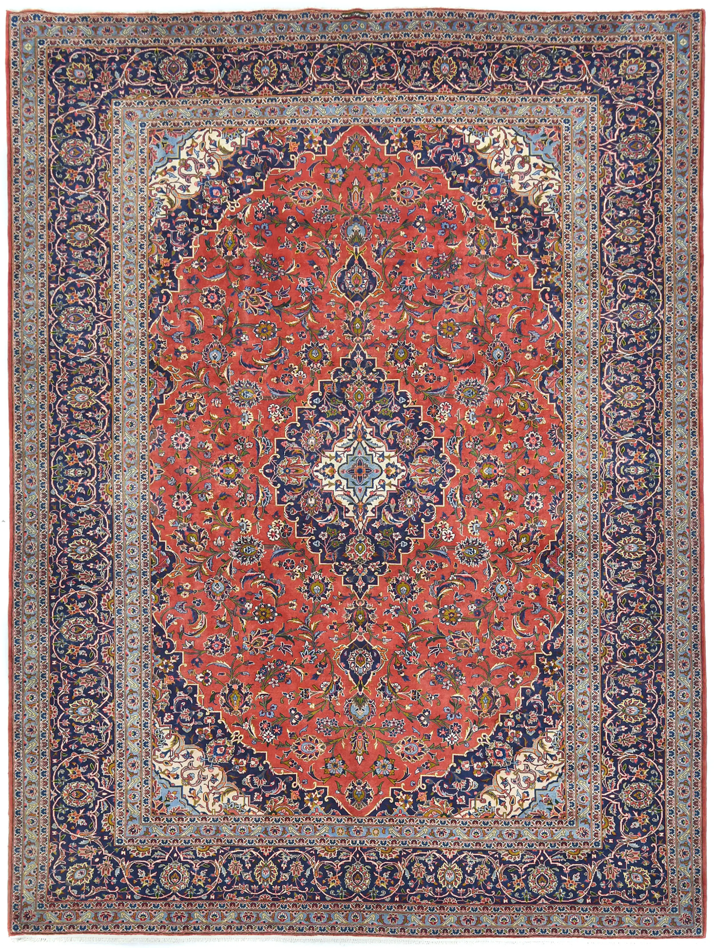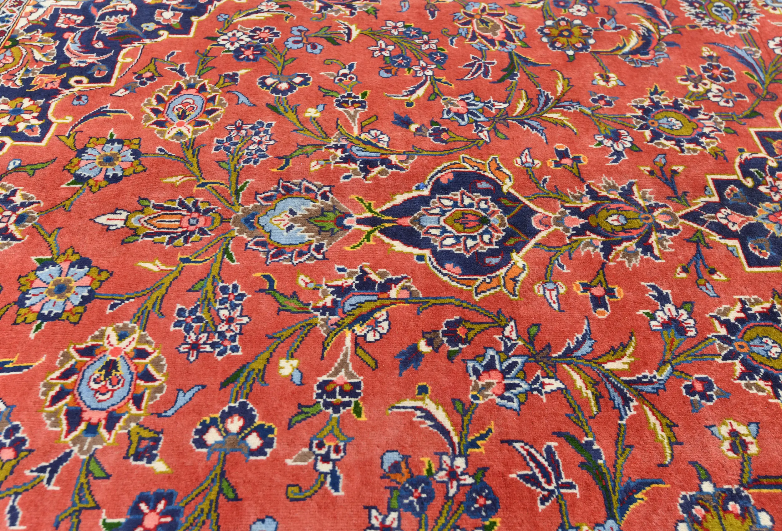 Semi Antique Light Red Traditional Floral 10X13 Kashan Persian Rug