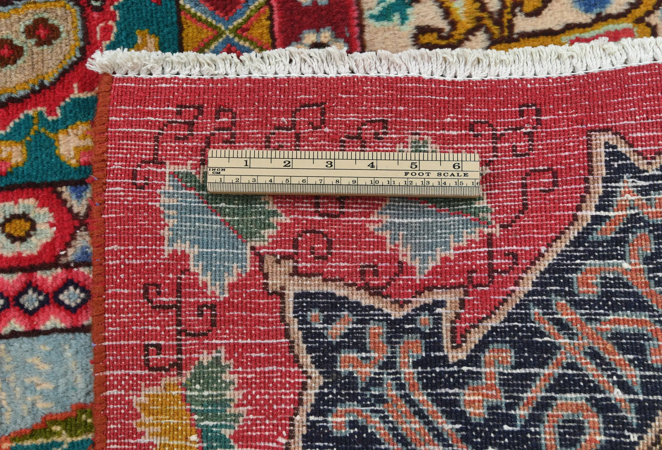 Handmade semi antique 10X13 multicolored Persian rug made with vegetable dyes (fine wool pile and cotton foundation), superior knot count, and appealing ancient designs. This Oriental rug never will go out of style and would be among your most valuable treasures.