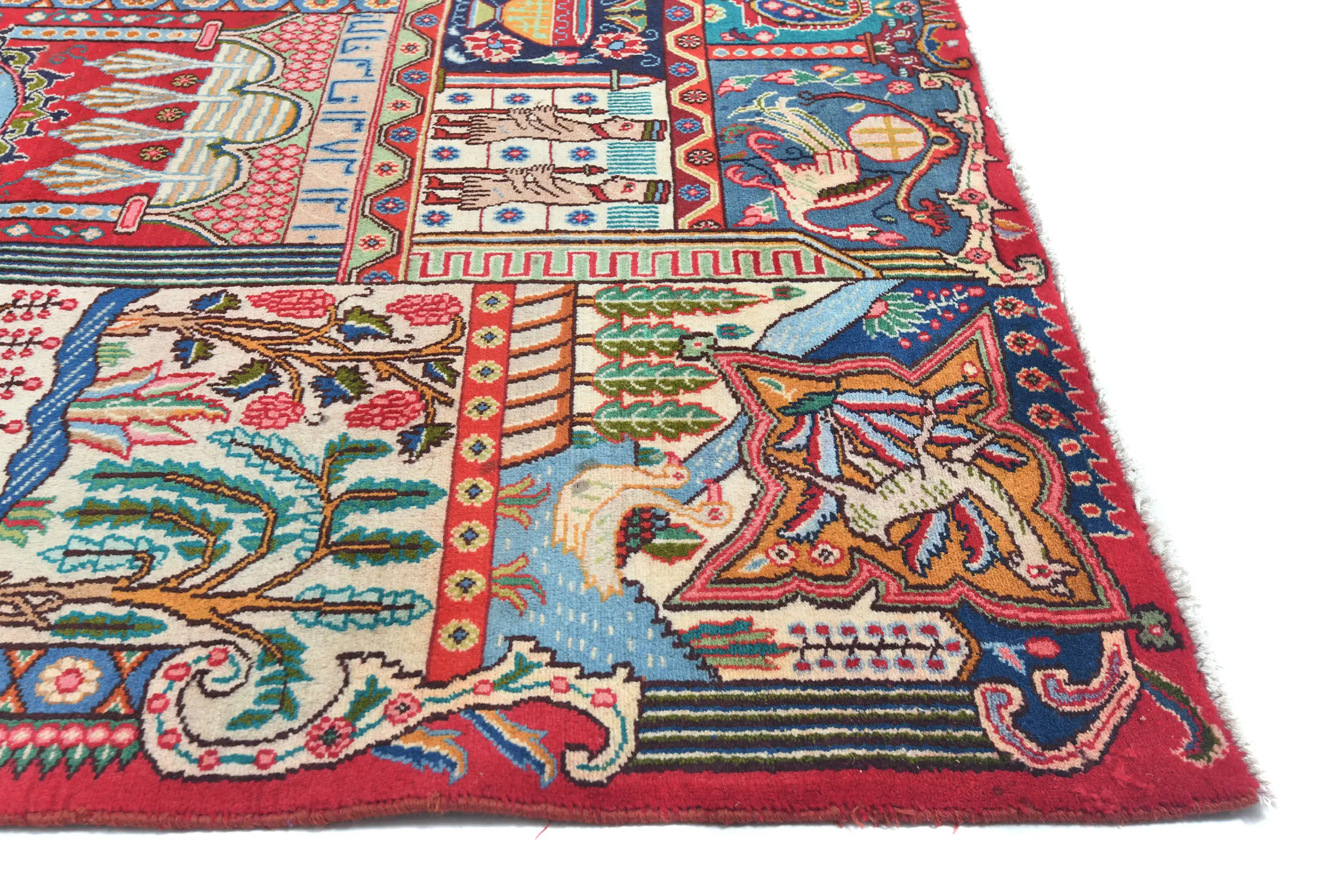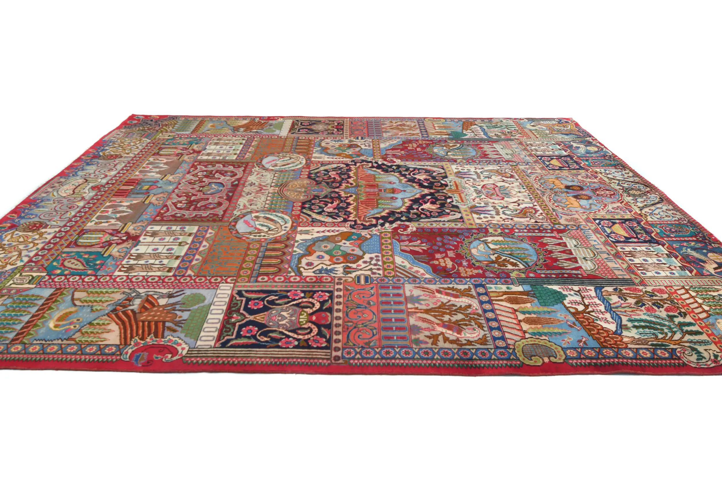 Semi Antique Multicolored Pictorial 9'5X12'6 Kashmar Persian Rug