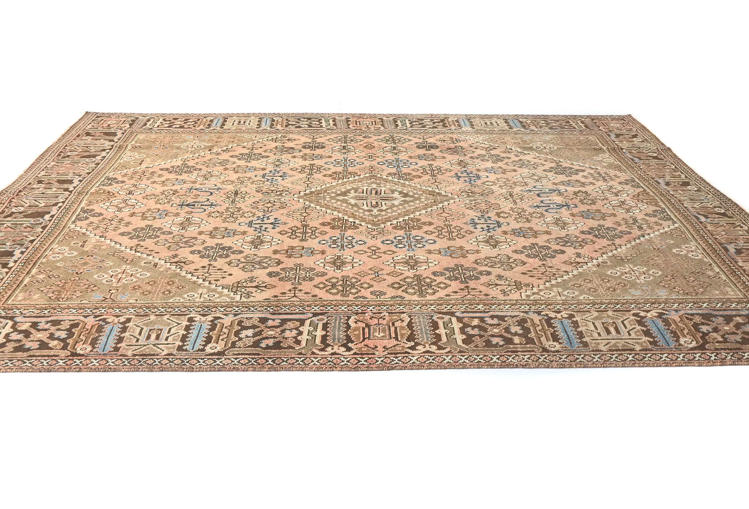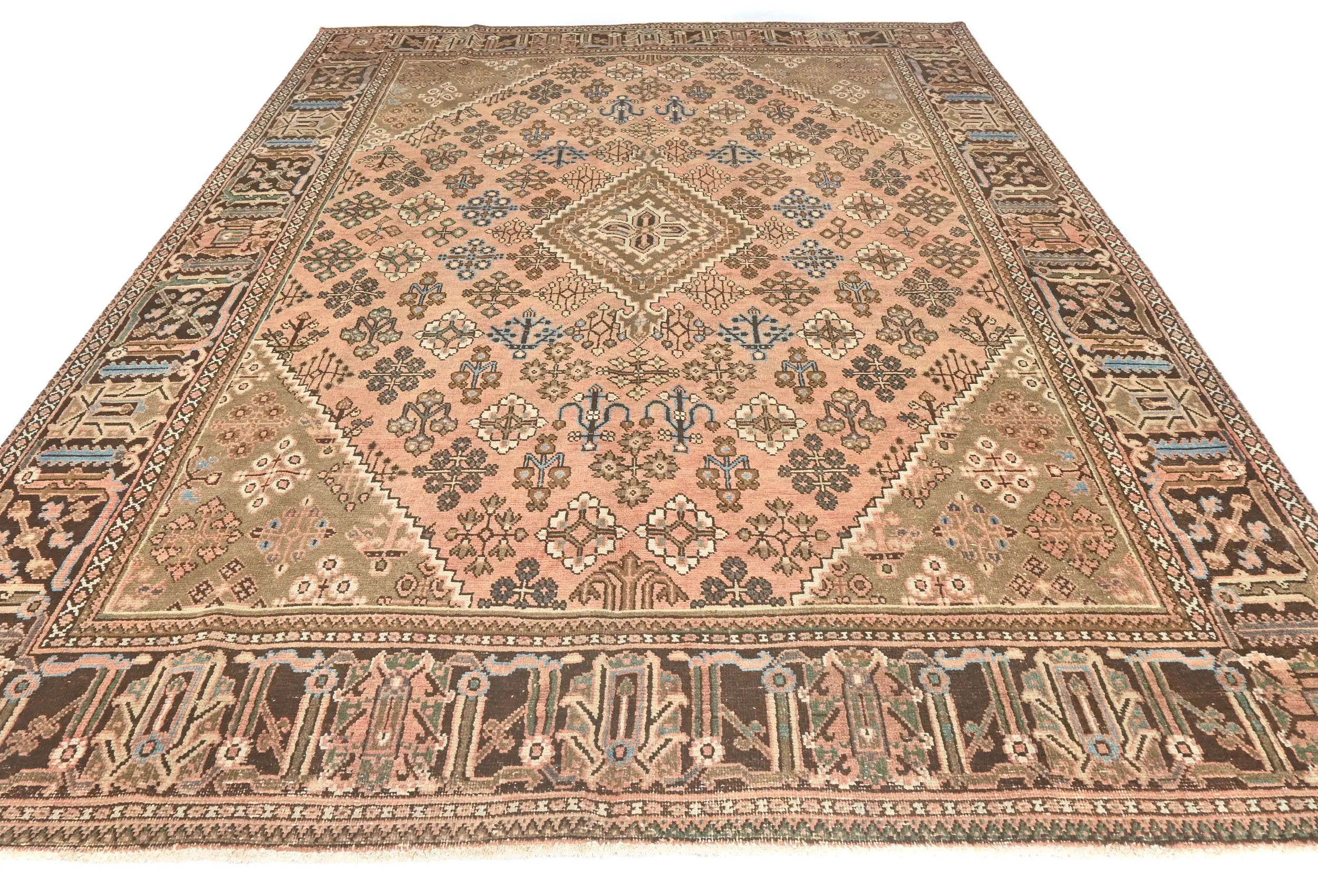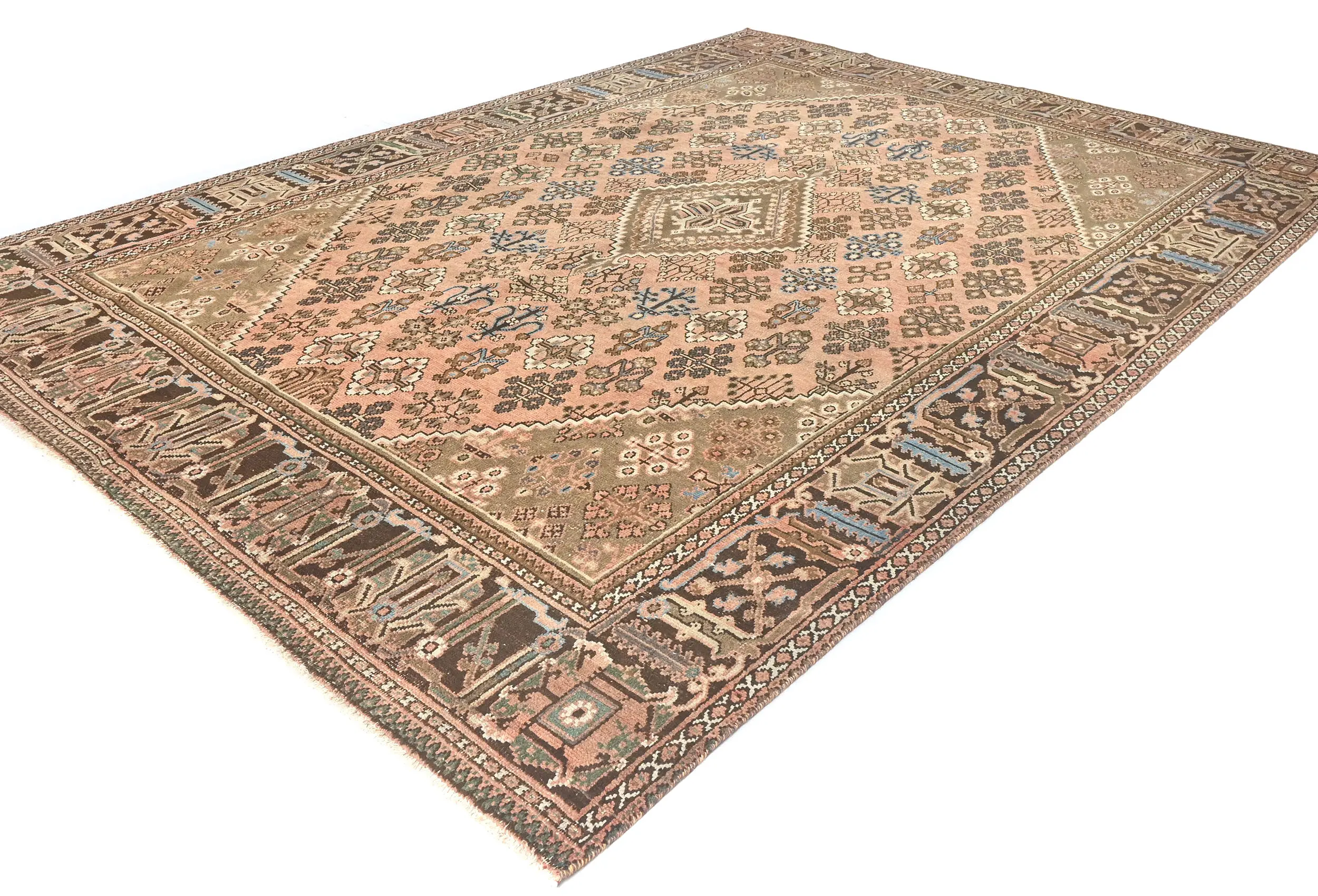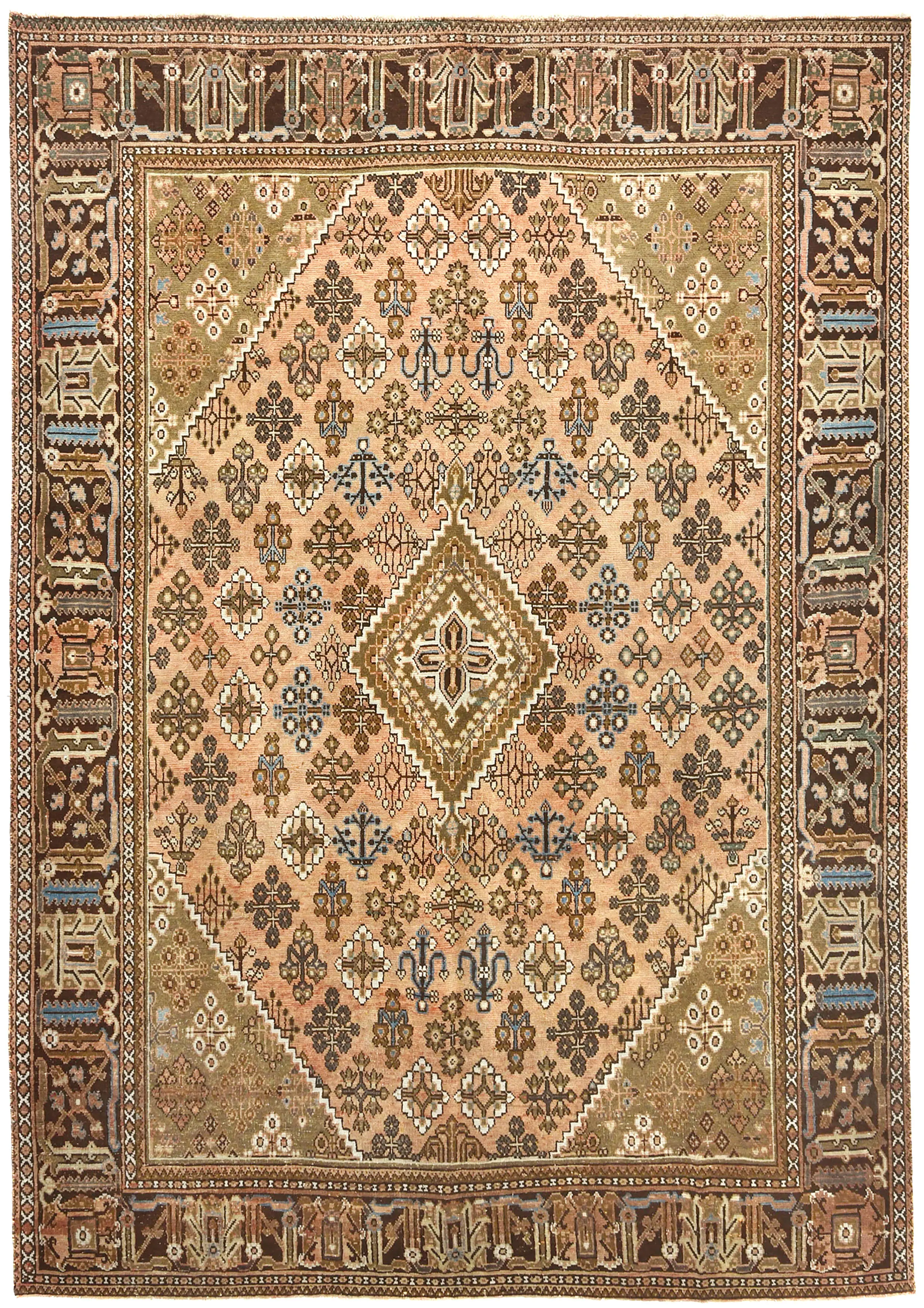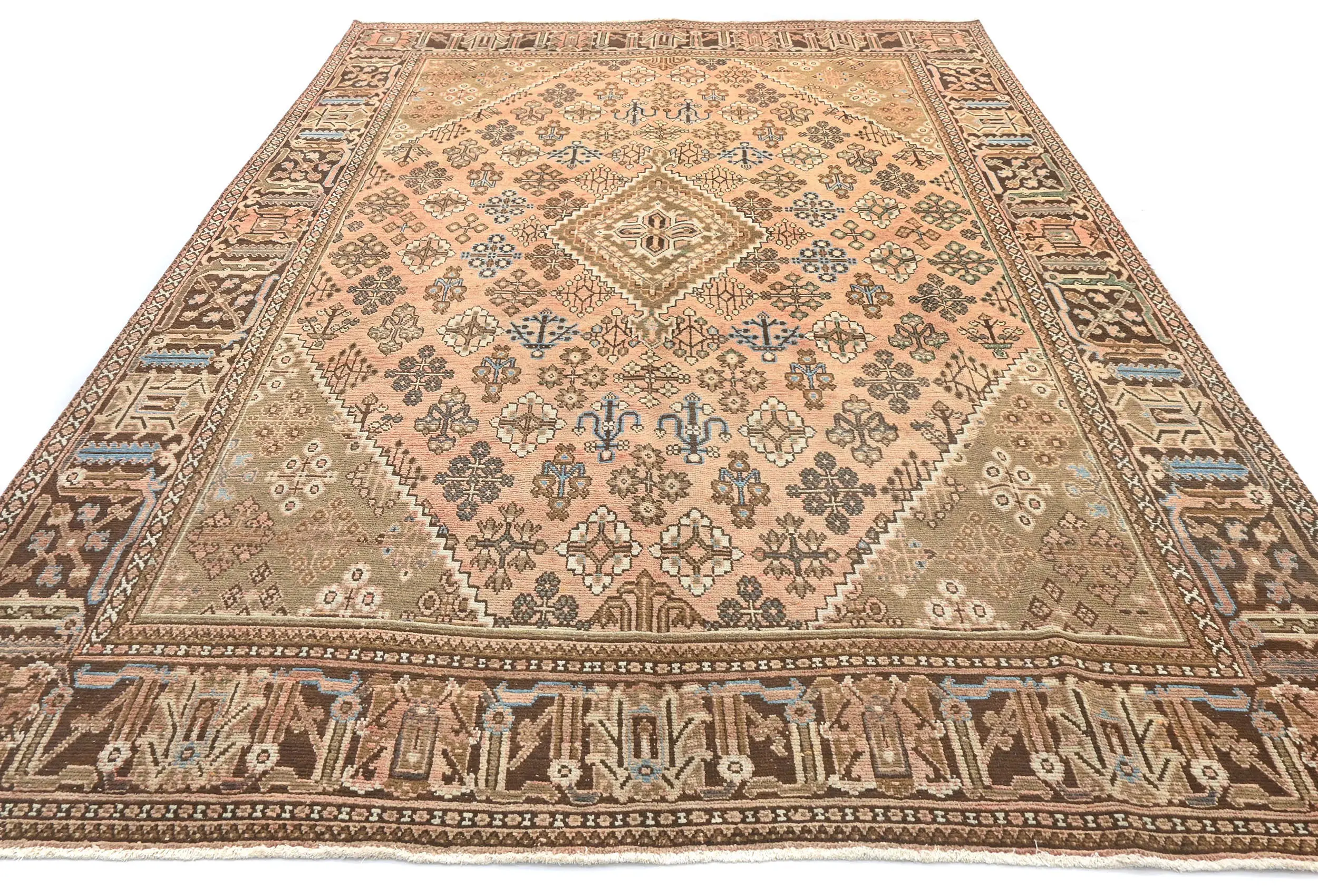 Handmade semi antique 8X11 Light Salmon Persian rug made with vegetable dyes (fine wool pile and cotton foundation), superior knot count, and alluring ancient designs. This Oriental rug never will go out of style and would be among your most valuable treasures.
