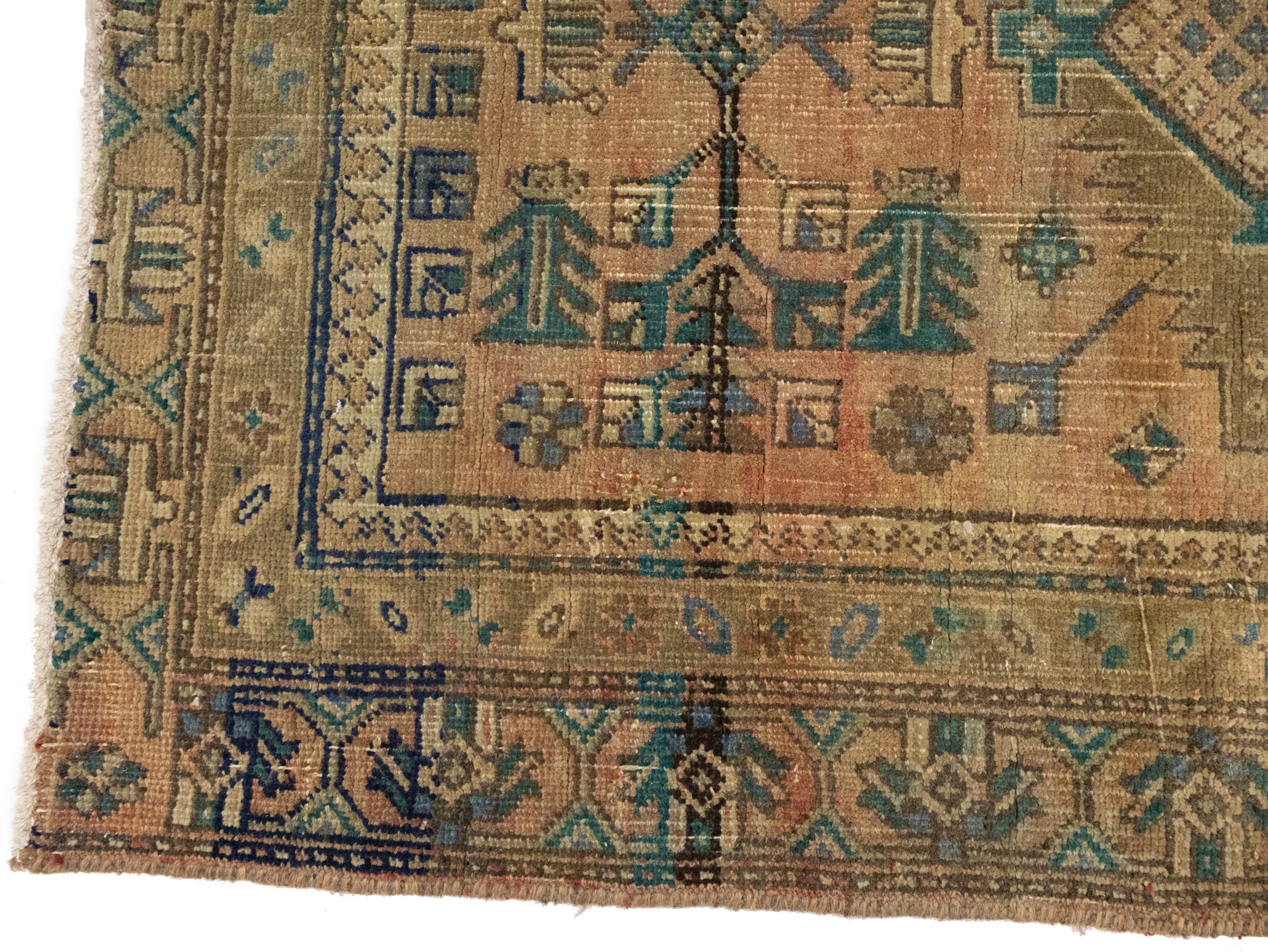 This original 3X14 muted colors vintage Persian runner was crafted by the hands of skilled weavers enthused by a variety of lovely artistic designs, to recreate the aged look of the unique piece with a richness of color and beautifully elaborated background field. What set this tribal Oriental area runner from the others are the material and dye used (wool pile and cotton foundation), knot count, ancient designs, fantastic grades, and its regional historical connection: it has deep roots, from the story of the people who produced it to the meaning of the symbols and colors displayed across its canvas that have been praised for centuries. This home décor carpet will be completely cozy and inviting that never will go out of style! Also, this Oriental runner would be among your most valuable treasures, it is a great investment that increase in value over time, and it will last for generations because was woven with high-quality, all-natural wool; it won’t rip, tear, or shed. Environmentally friendly, opulent yet affordable; this Persian rug will give you a thorough amount of character to help define your living space with sophistication and warmth that will capture the eyes and attention of your audience (homeowners, designers, decorators, family and friends). EB-7937