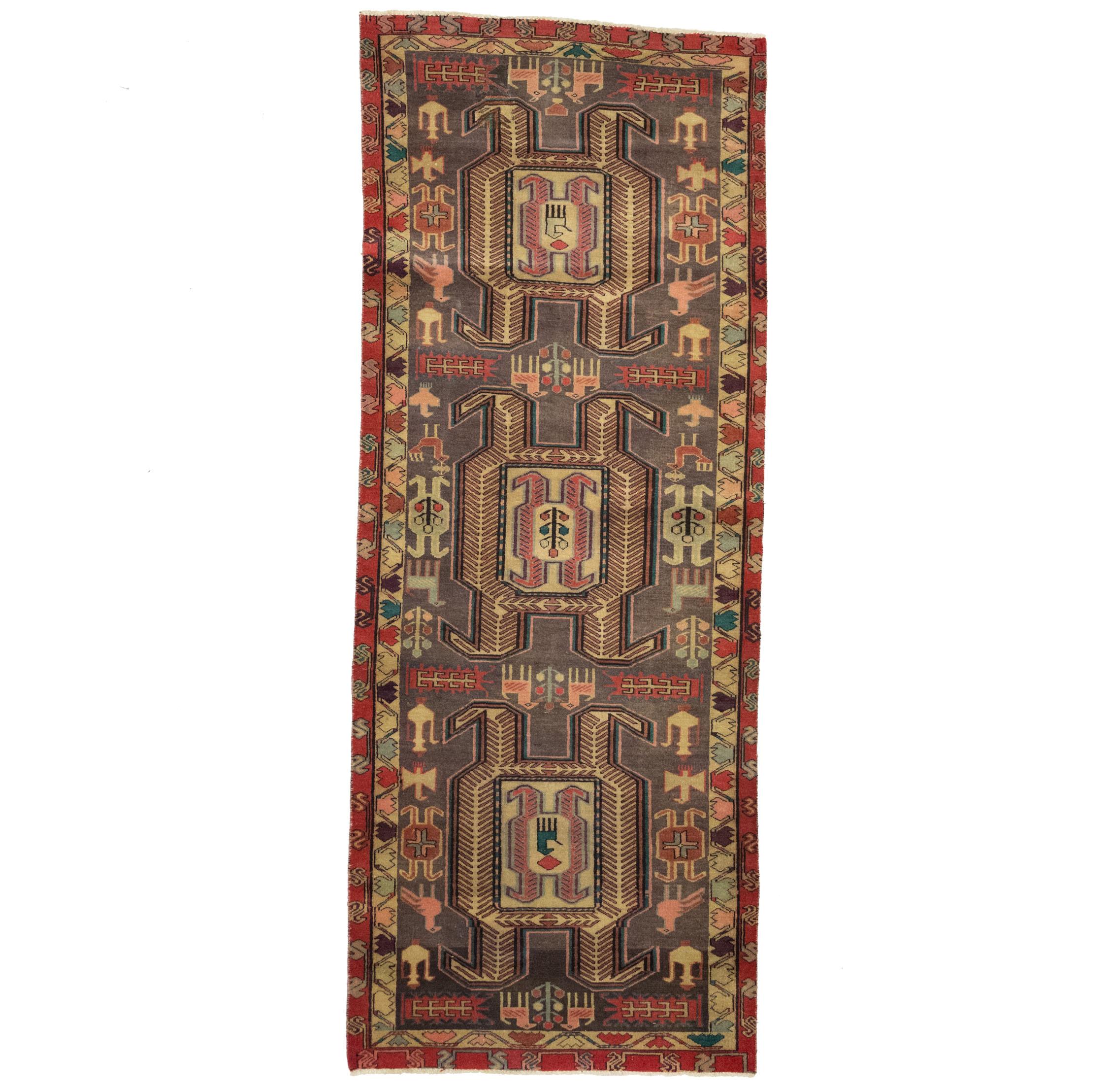 Semi Antique Muted Colors Tribal 4X10 Meshkin Persian Runner Rug