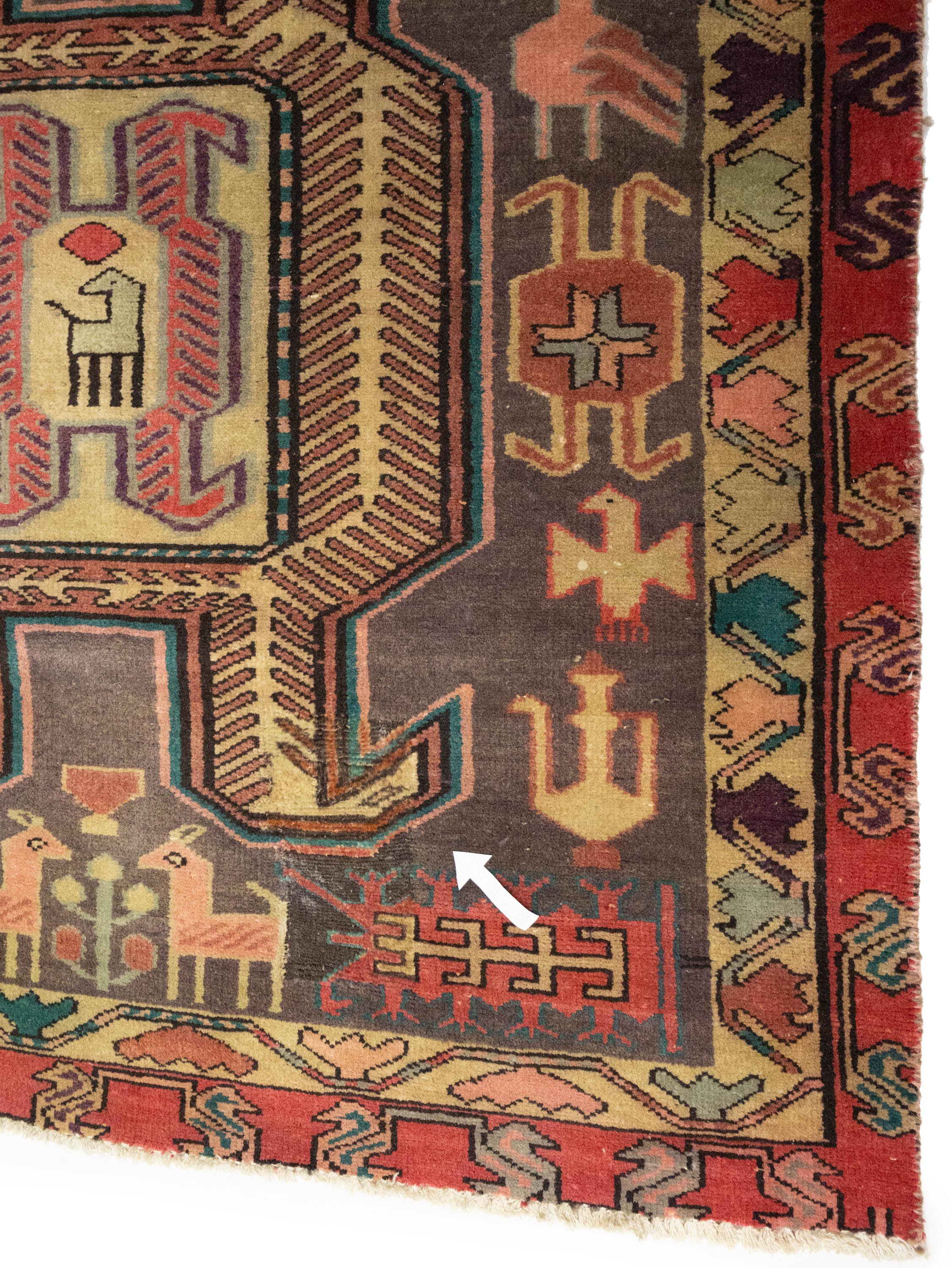 carefully assess each rug for authenticity and provide a detailed description of both age