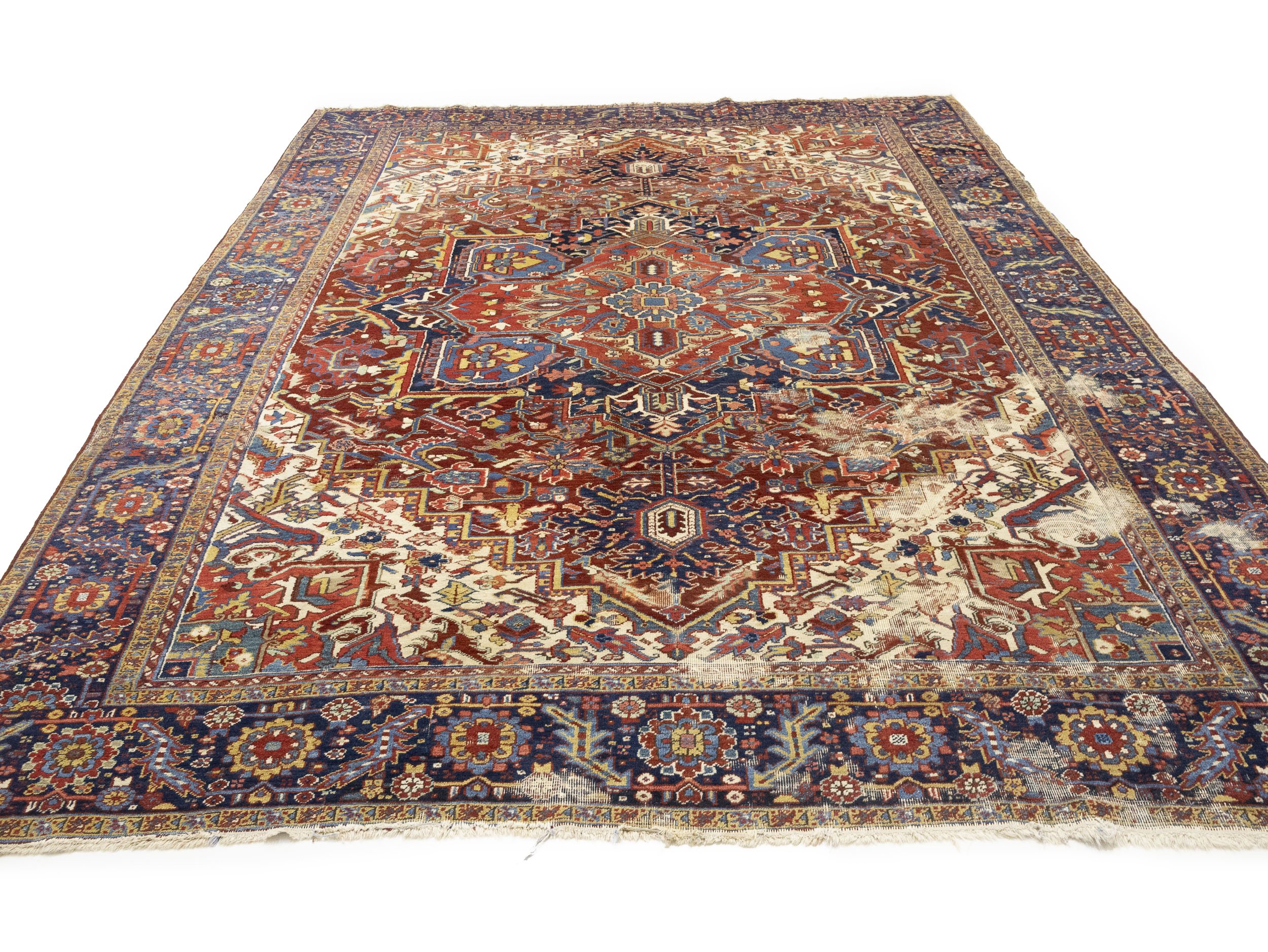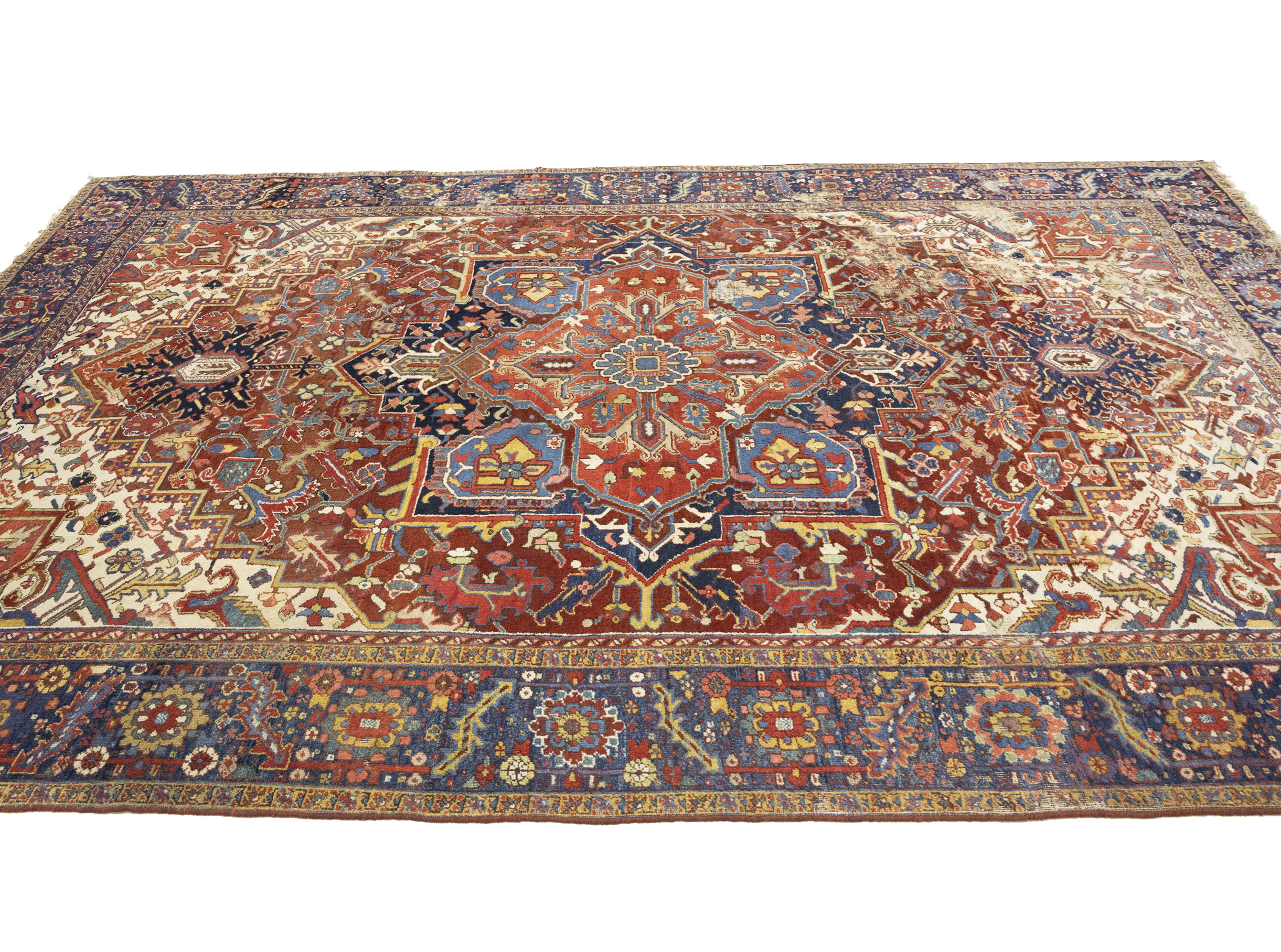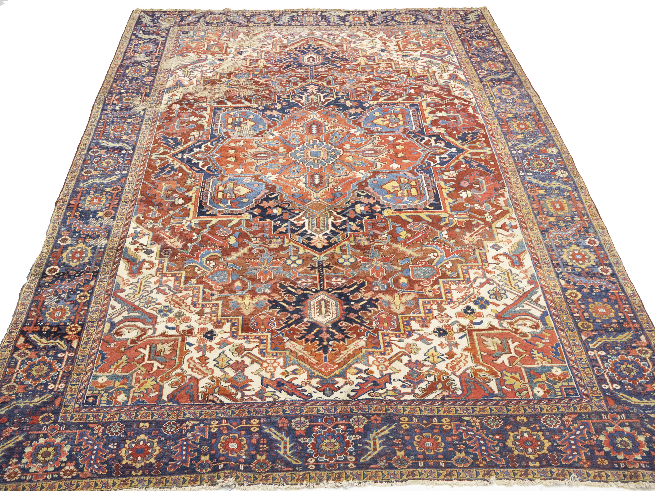 Red Semi Antique Floral 9X12 Heriz Persian Oriental Rug