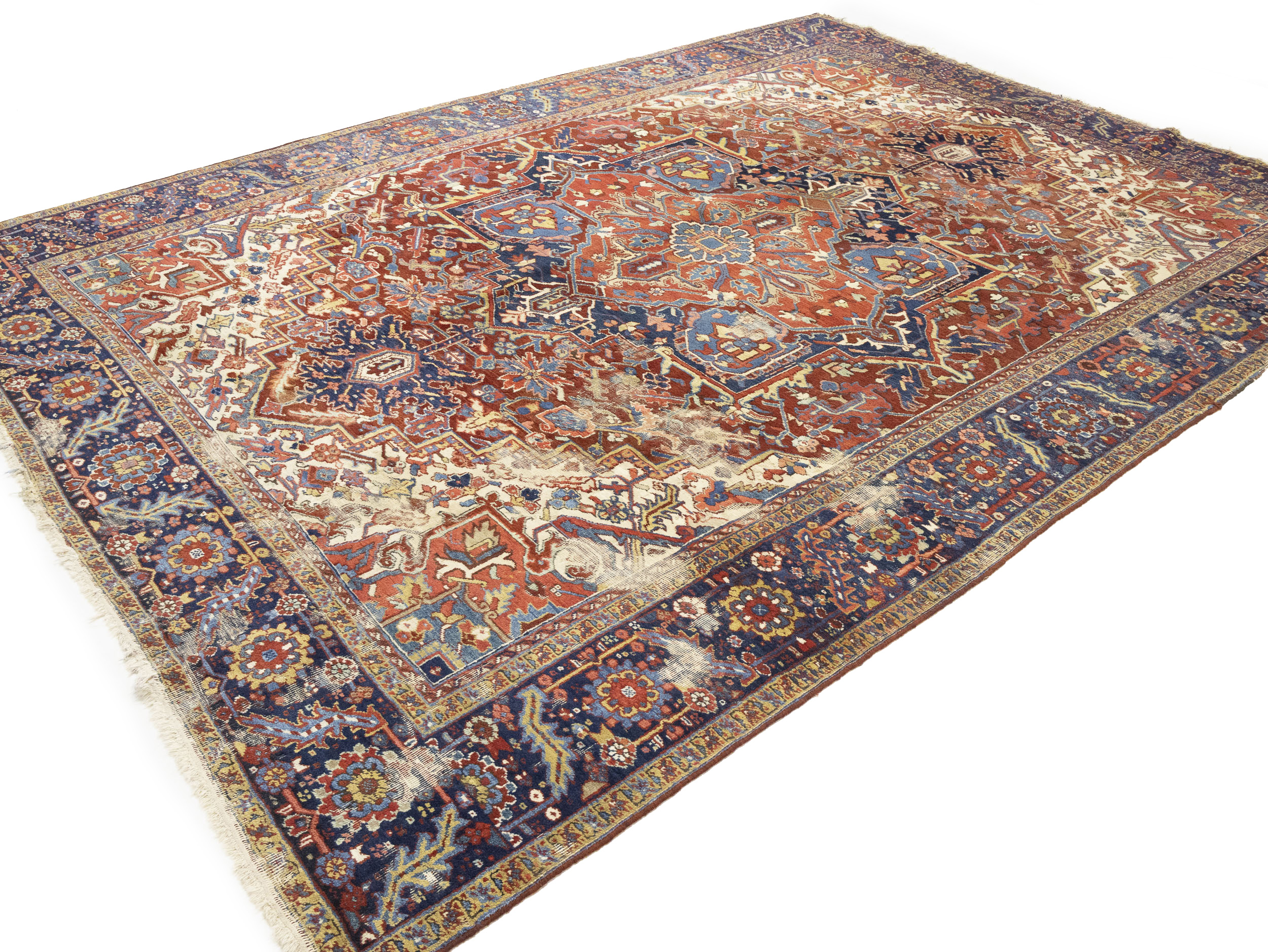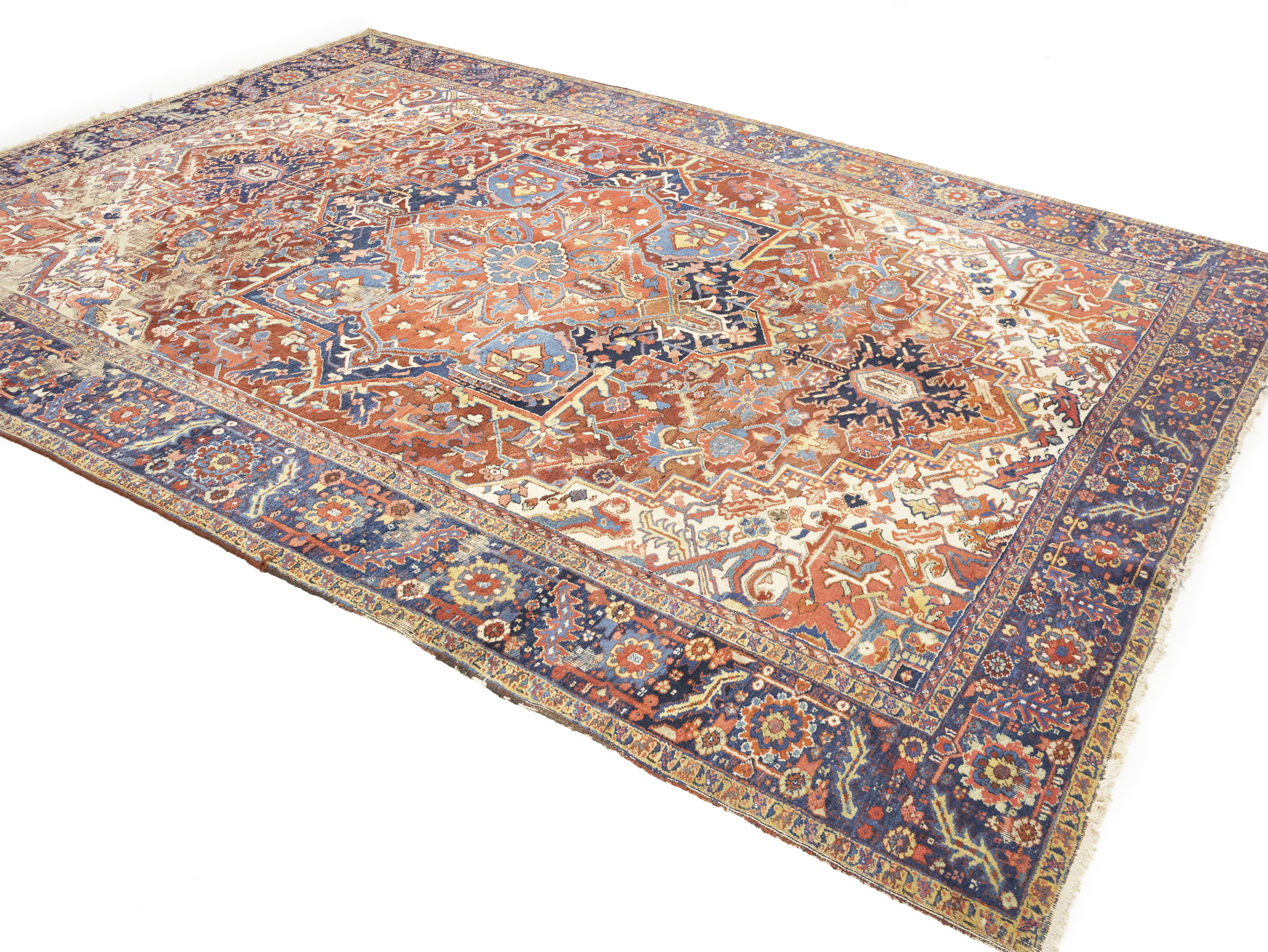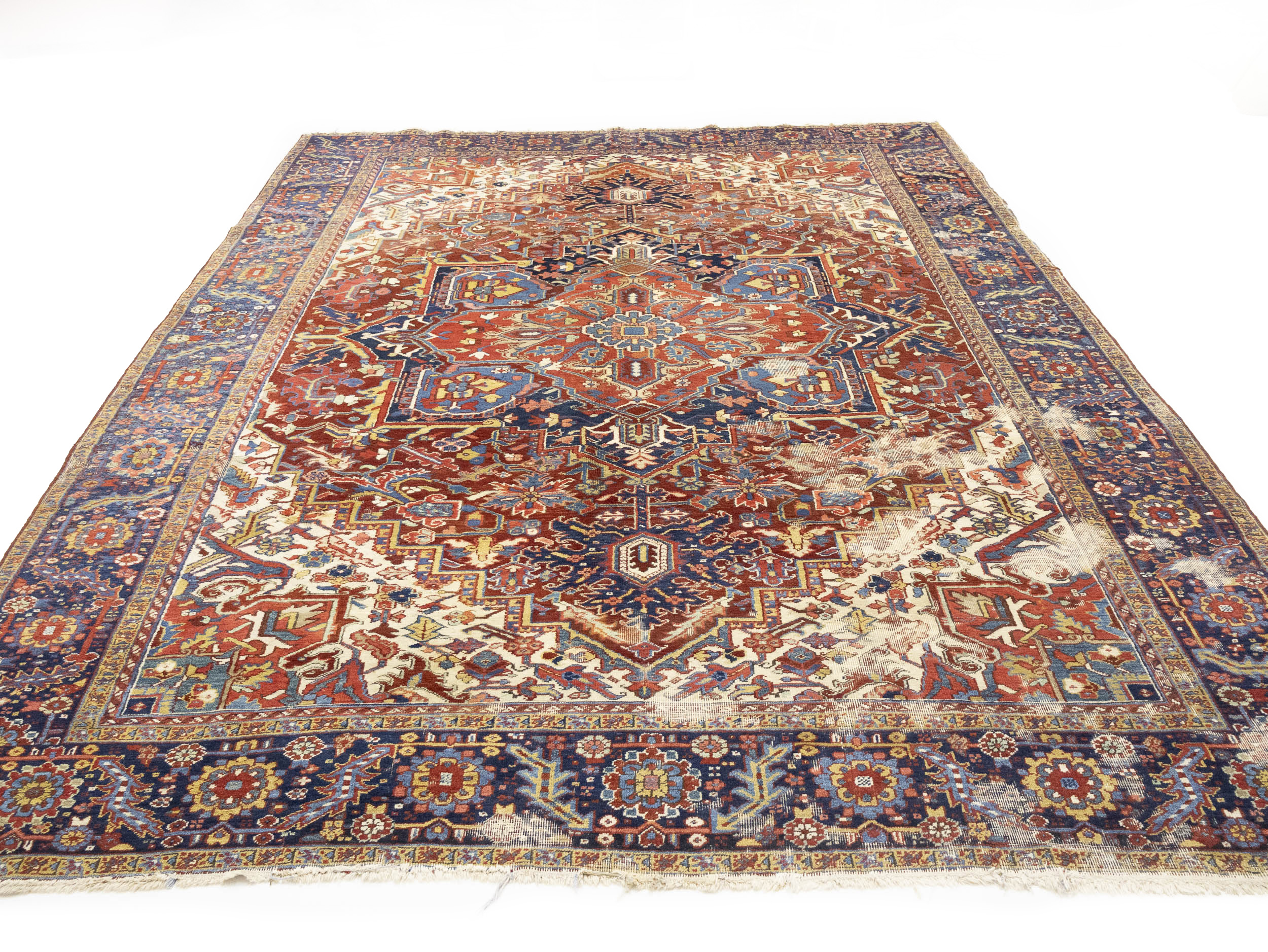 Red Semi Antique Floral 9X12 Heriz Persian Oriental Rug