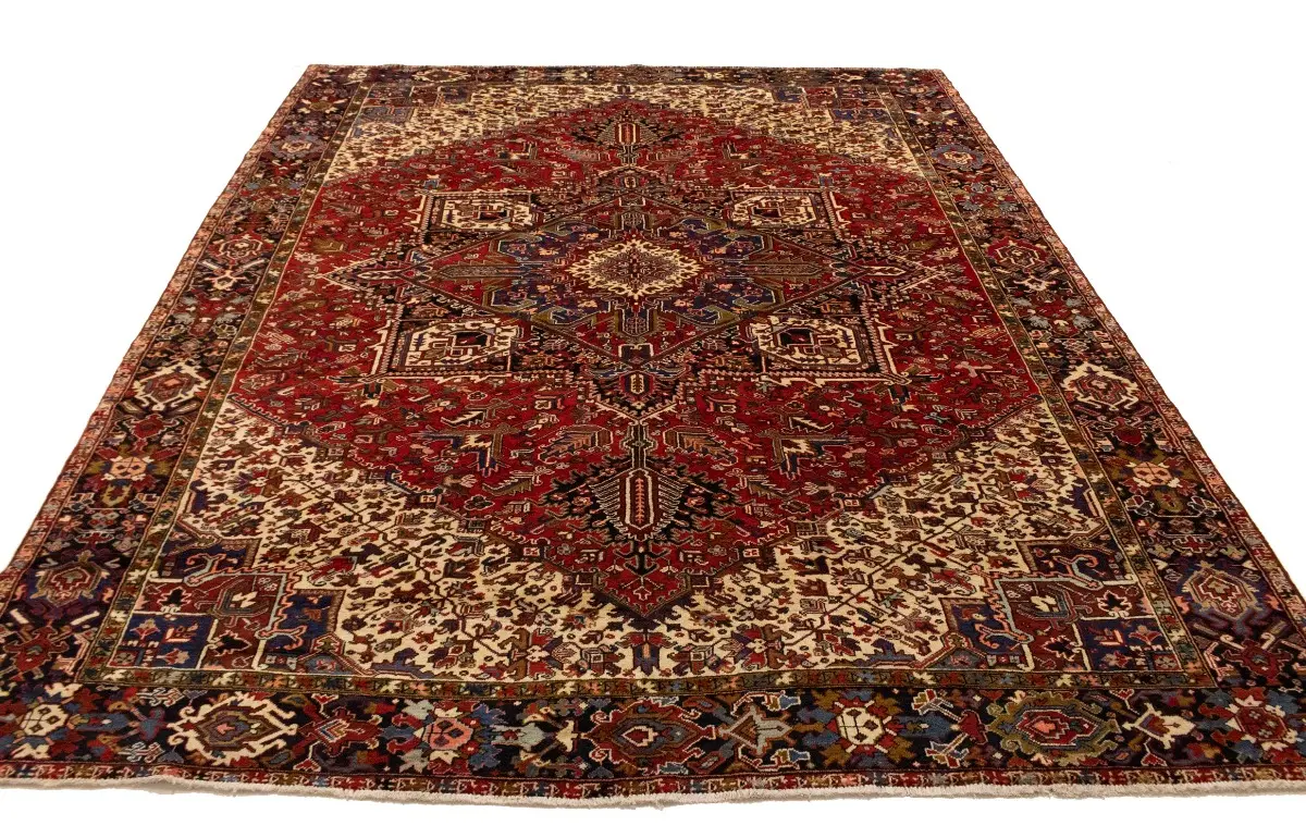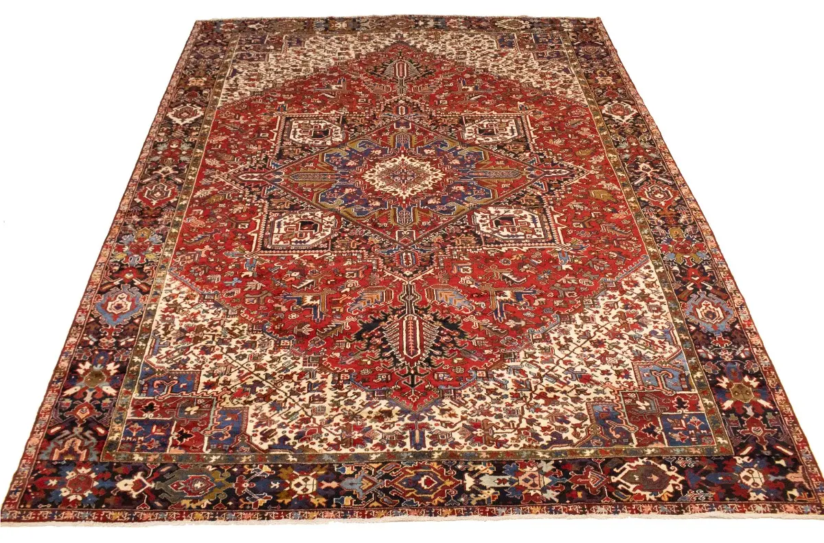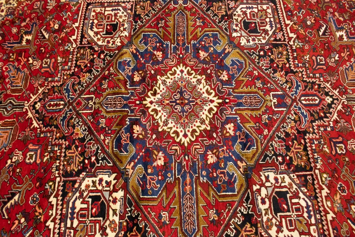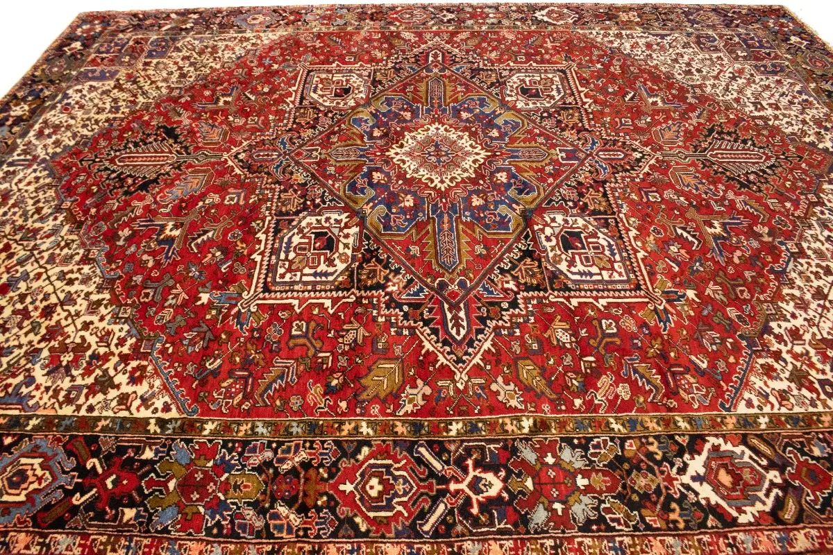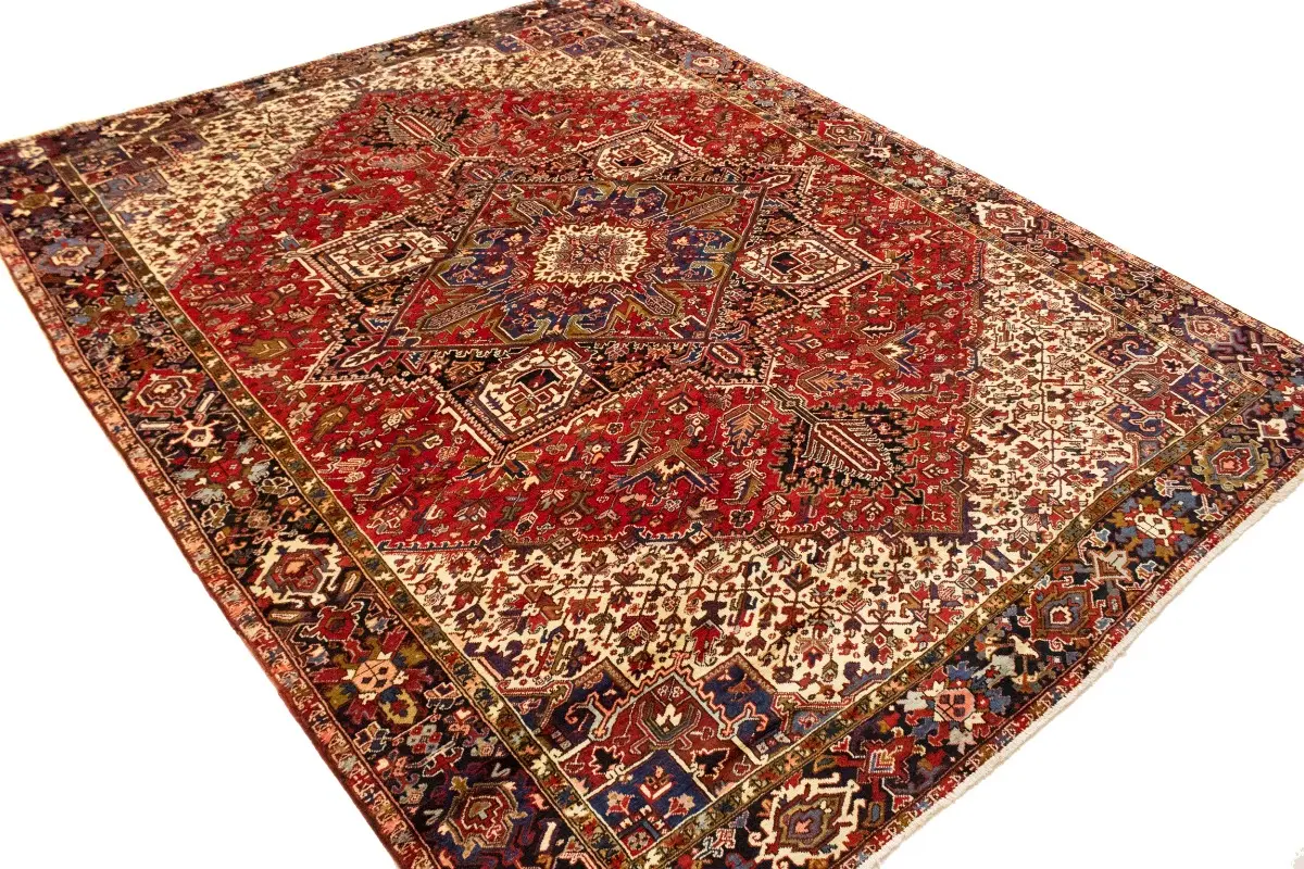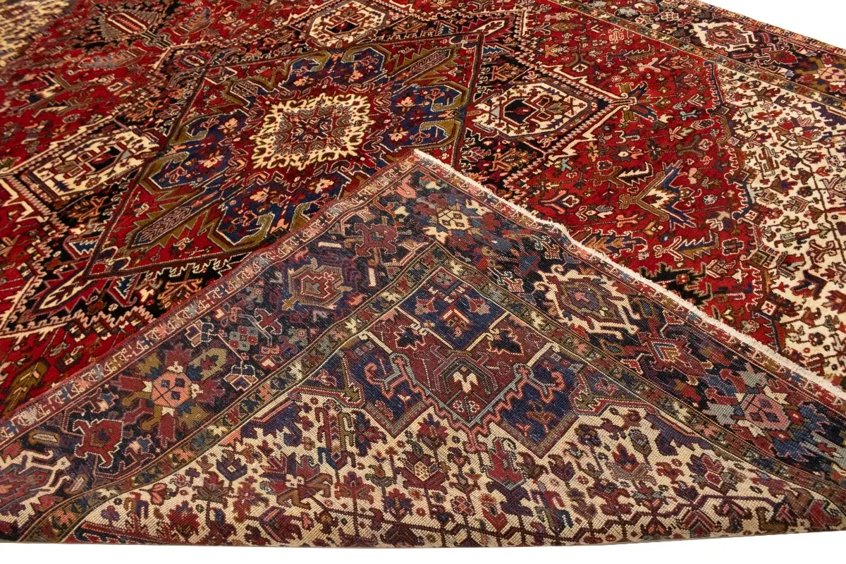 Semi Antique Red Geometric 10'7X13'6 Heriz Persian Rug