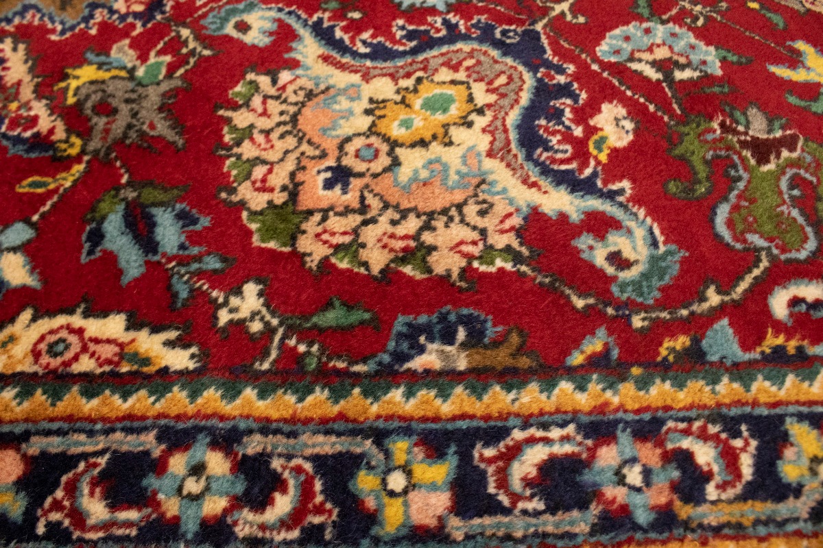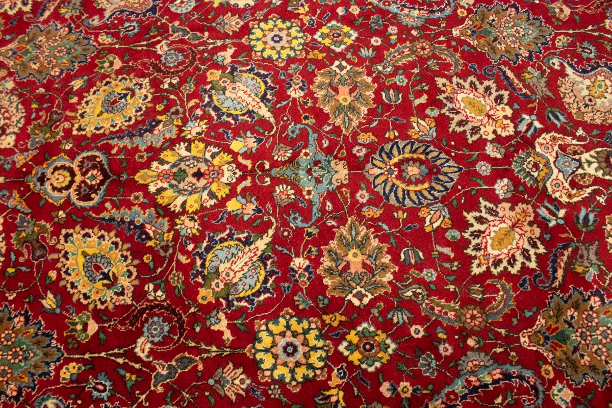 Hand Knotted semi antique 10X15 red Persian rug er made with vegetable dyes (fine wool pile and cotton foundation), superior knot count, and appealing ancient designs. This Oriental rug never will go out of style and would be among your most valuable treasures.