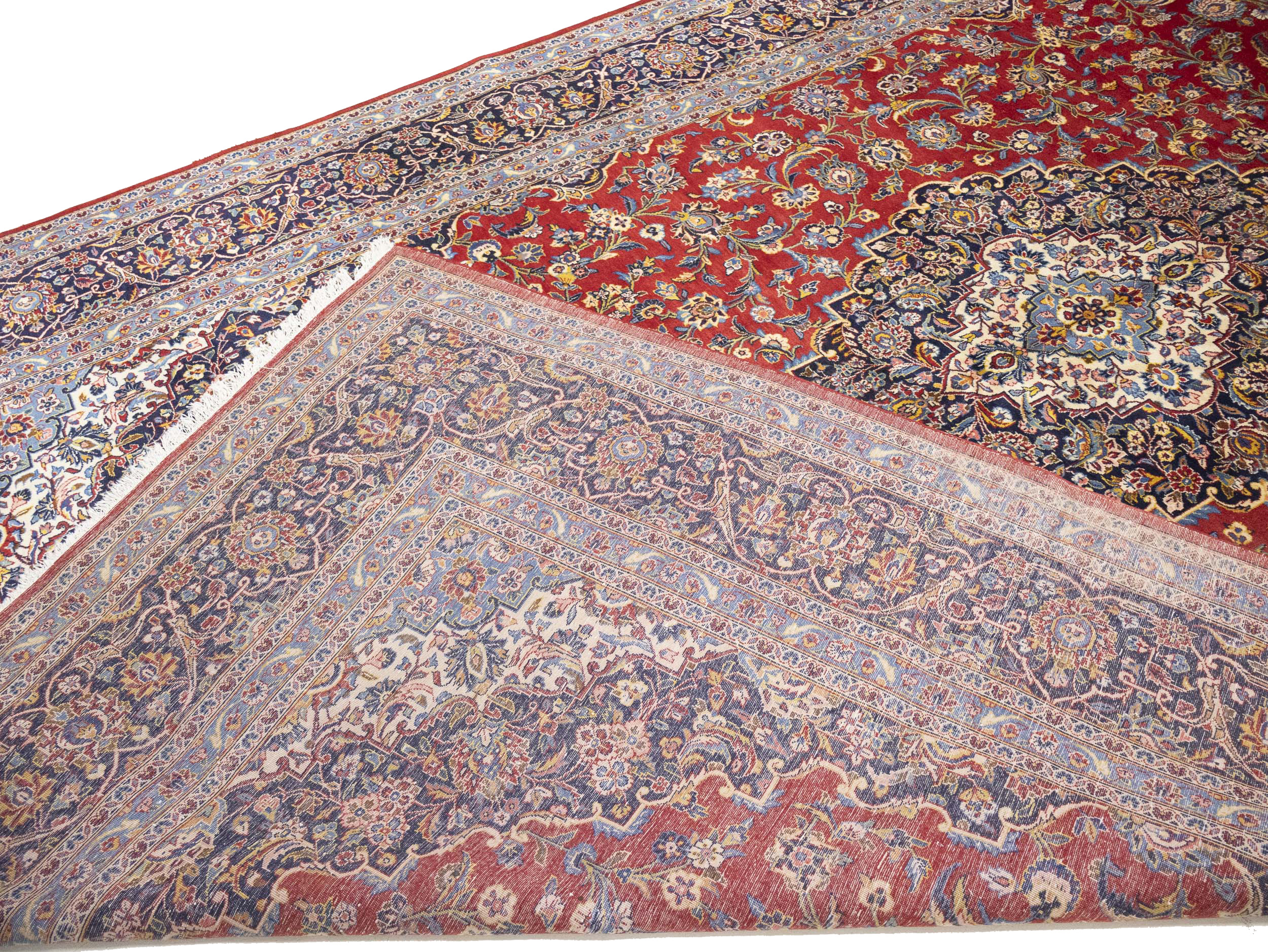 Red Semi Antique Traditional Red 10X16 Kashan Persian Rug