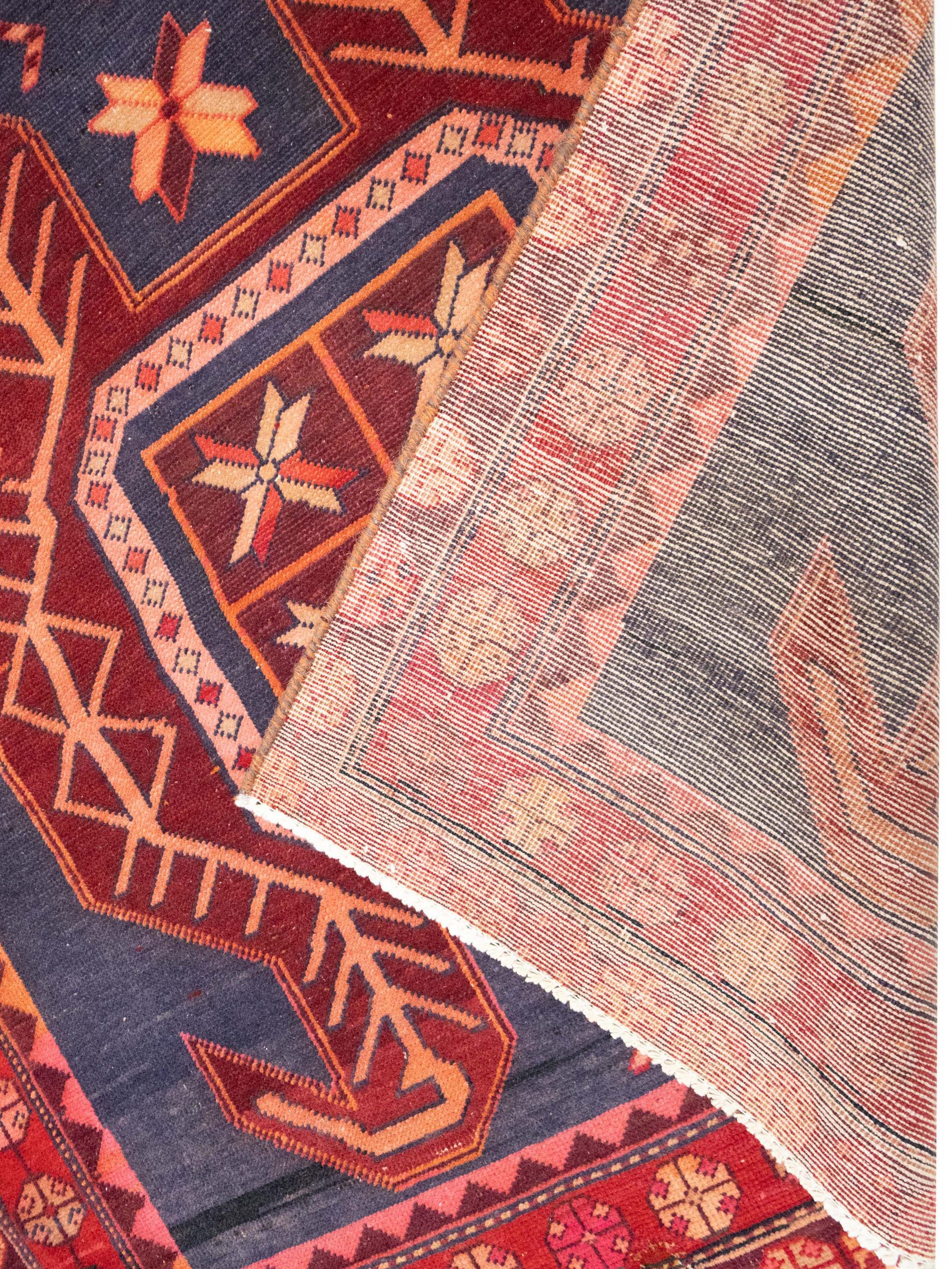 Semi Antique Red Tribal Geometric 4X10 Meshkin Persian Runner Rug