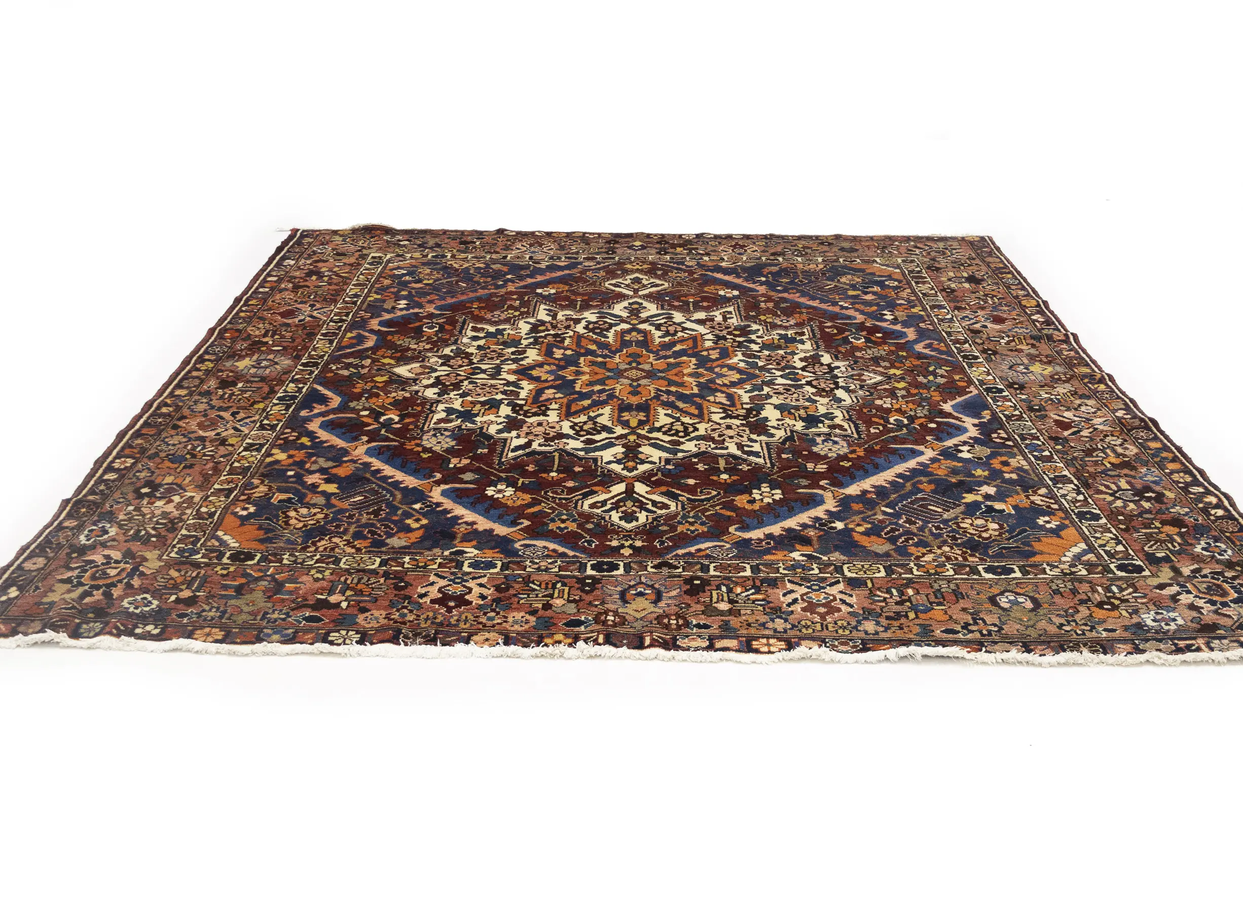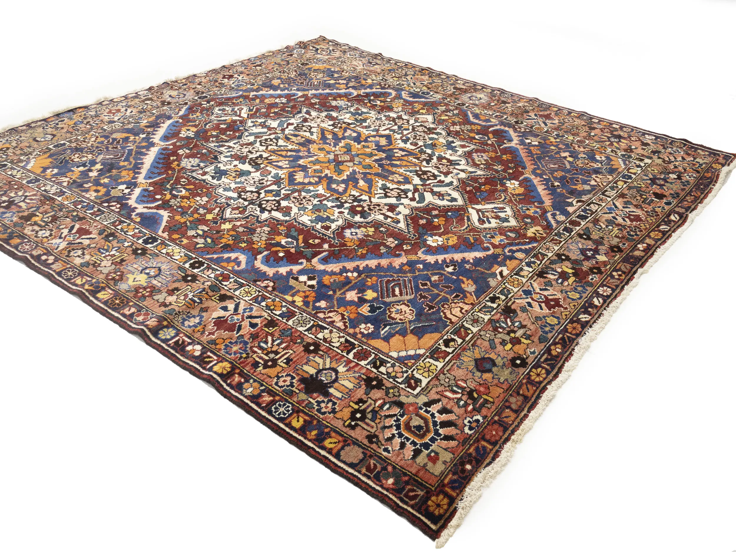 Semi Antique Rusty Brown Floral 10X10 Bakhtiari Persian Square Rug