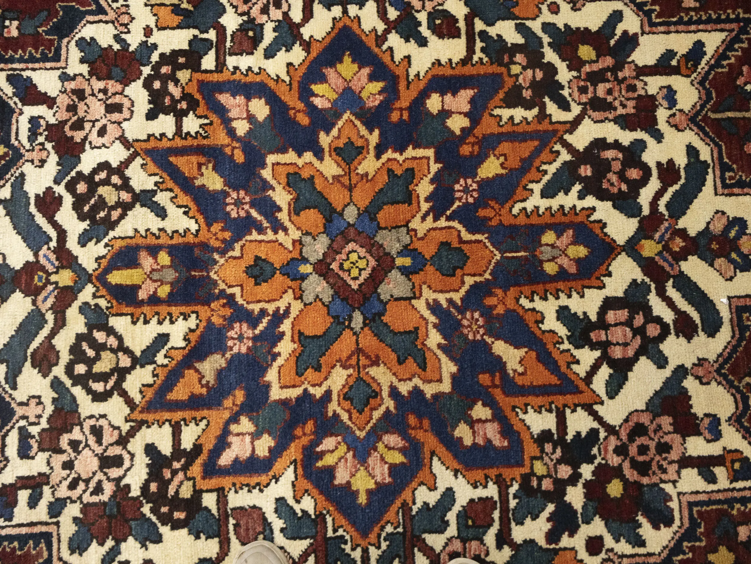 This original 10X10 rusty brown vintage Persian rug was made by the hands of gifted weavers inspired by a variety of spectacular artistic designs, to recreate the aged look of the original piece with a richness of color and ornately patterned floral background field. What set this Oriental area rug from the others are the material and dye used (wool pile and cotton foundation), knot count, ancient designs, fantastic grades, and its regional historical connection: it has deep roots, from the story of the people who produced it to the meaning of the symbols and colors displayed across its canvas that have been praised for centuries. This home decor carpet will be completely cozy and inviting that never will go out of style! Also, this Oriental rug would be among your most valuable treasures, it is a great investment that accrues value over time, and it will last for generations because was woven with high-quality, all-natural wool; it won’t rip, tear, or shed. Environmentally friendly, opulent yet affordable; this Persian rug will give you a thorough amount of character to help define your living space with elegance and warmth that will capture the eyes and attention of your audience (homeowners, designers, decorators, family and friends). EB-7155