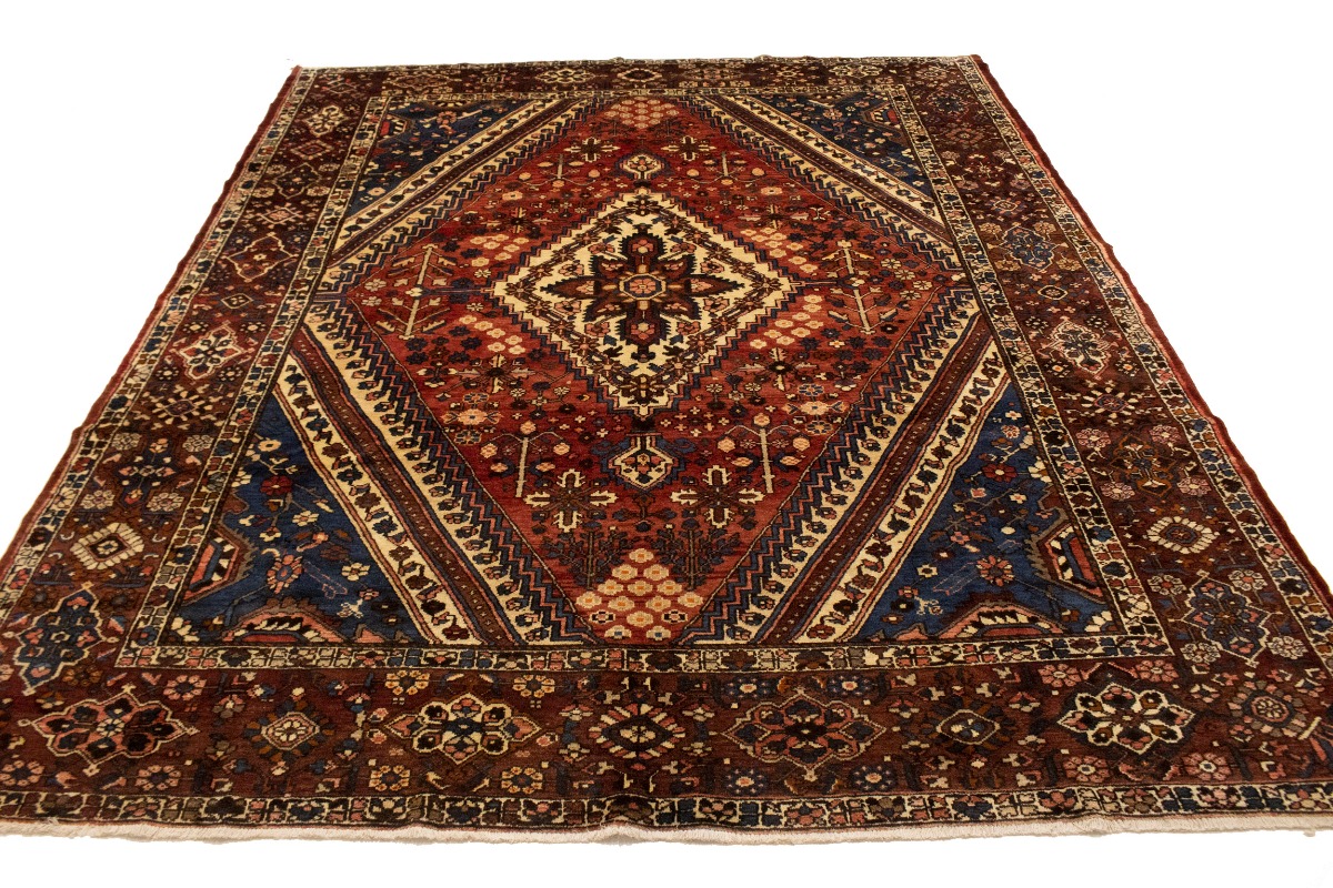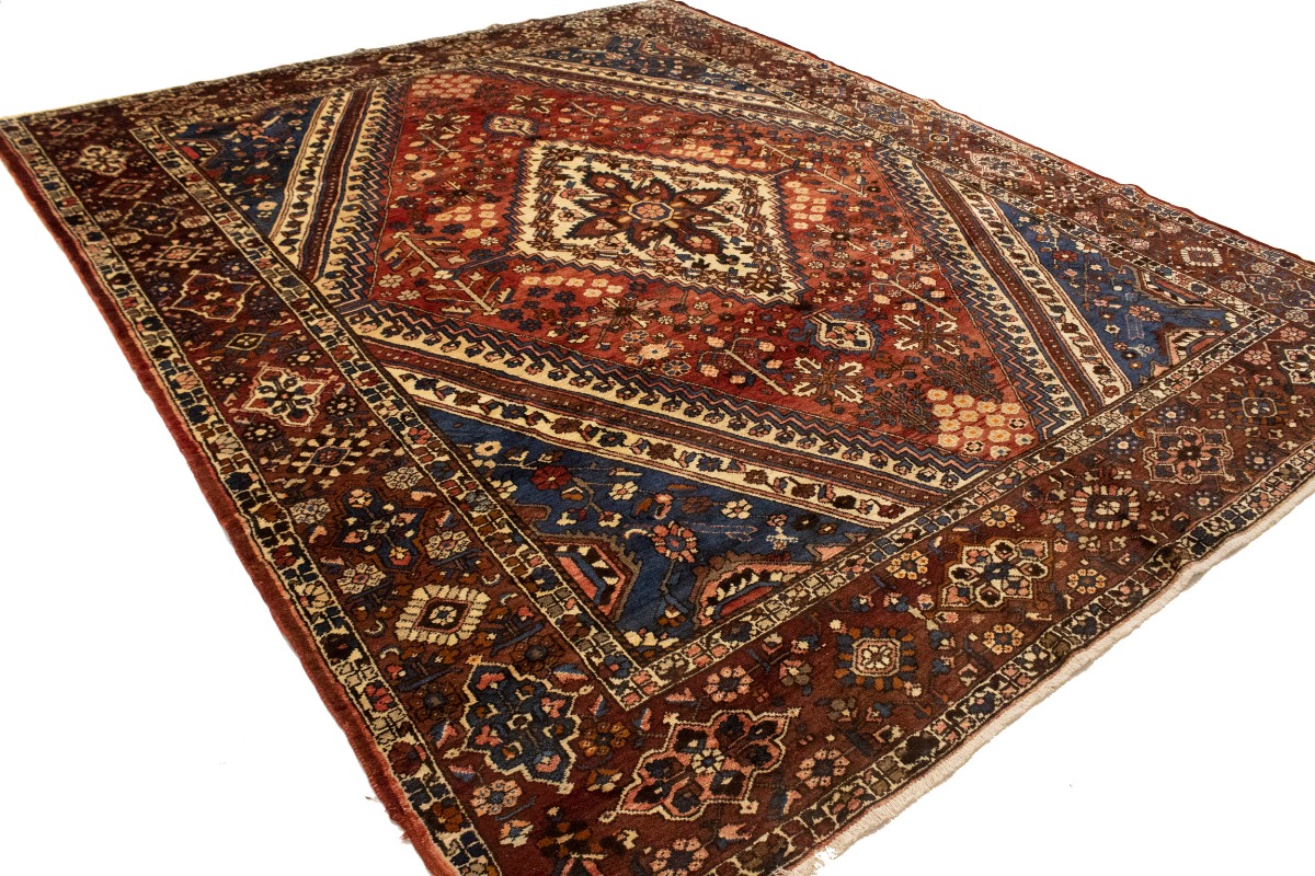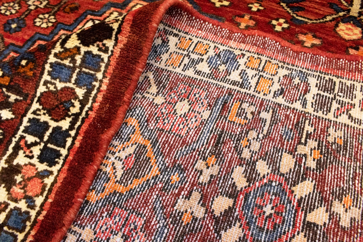This authentic 11X13 rusty red vintage Persian rug was finely knotted by the hands of weavers influenced by a variety of amazing artistic designs, to recreate the aged look of the exceptional piece with a richness of color and embellished background field. What set this tribal Oriental area rug from the others are the material and dye used (wool pile and cotton foundation), knot count, antique designs, fantastic grades, and its regional historical connection: it has deep roots, from the story of the people who produced it to the meaning of the symbols and colors displayed across its canvas that have been praised for centuries. This home décor carpet will be completely cozy and inviting that never will go out of style! Also, this Oriental rug would be among your most valuable treasures, it is a great investment that increase in value over time, and it will last a lifetime because was woven with high-quality, all-natural wool; it won’t rip, tear, or shed. Eco-friendly, opulent yet affordable; this Persian rug will give you an extra pop of character to help define your home environment with luxury and warmth that will capture the eyes and attention of your audience (homeowners, designers, decorators, family and friends). EB-5747
