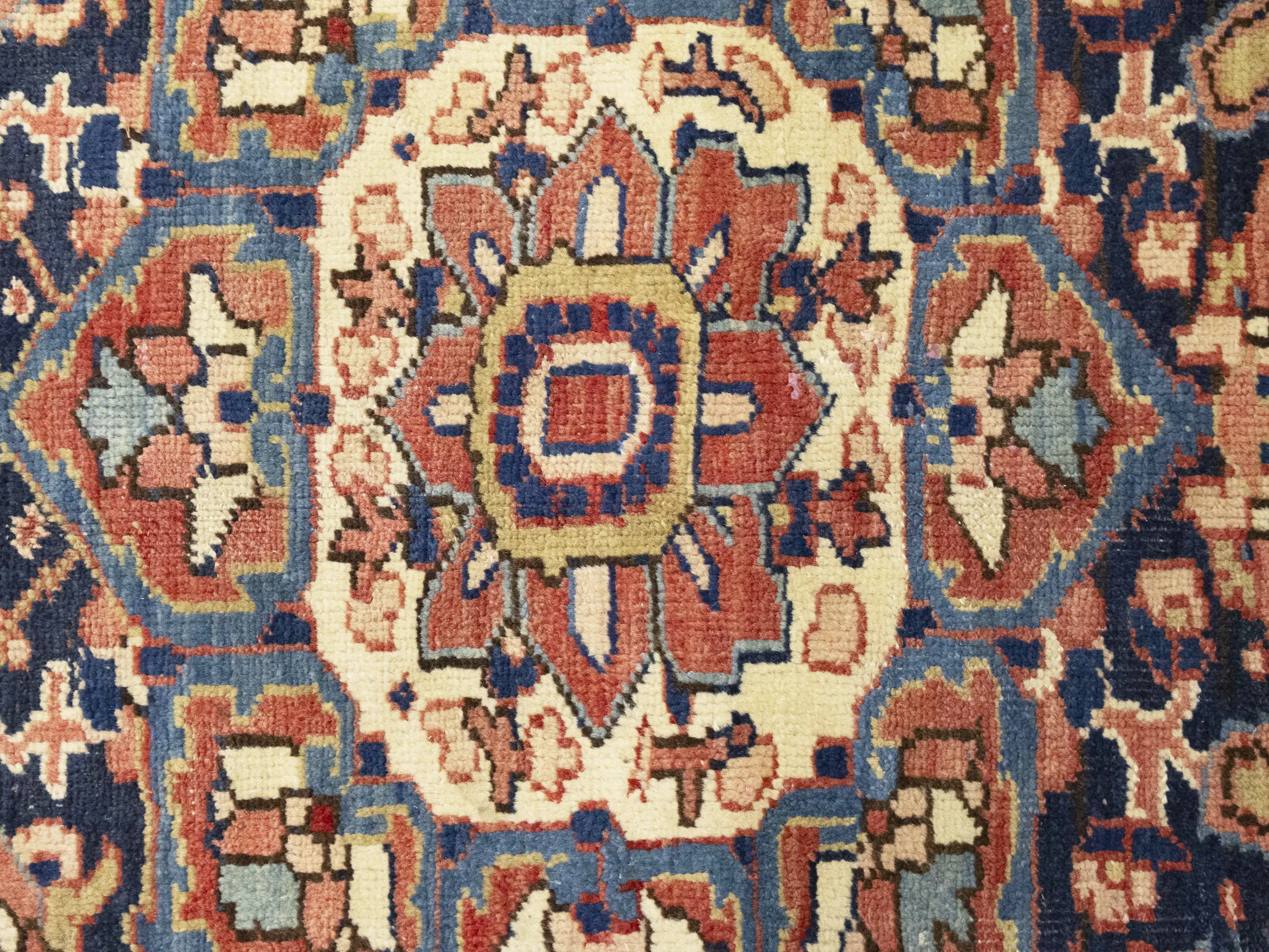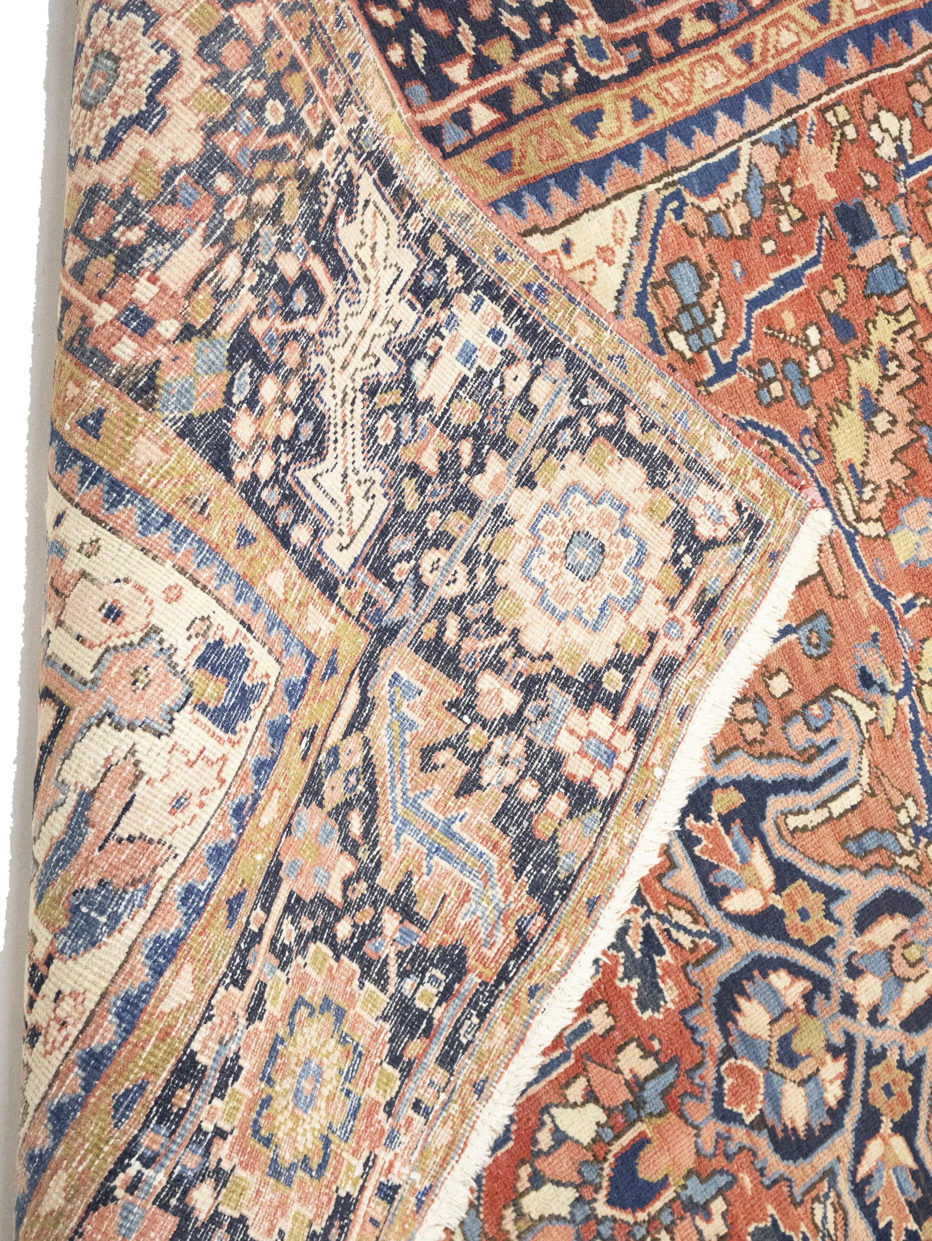 Handmade semi antique 8X12 rusty red Persian rug made with vegetable dyes (fine wool pile and cotton foundation), superior knot count, and appealing ancient designs. This Oriental rug never will go out of style and would be among your most valuable treasures.
