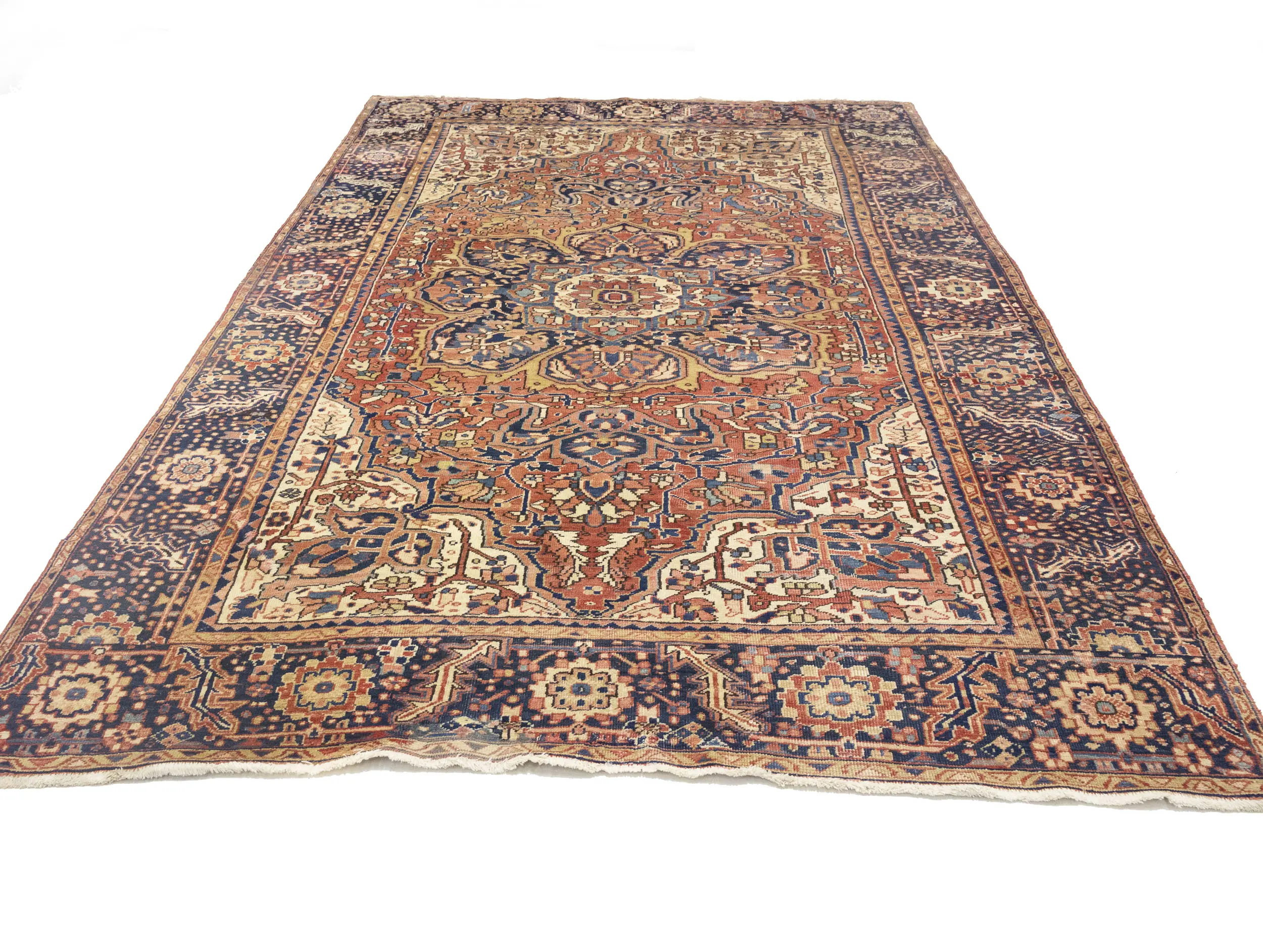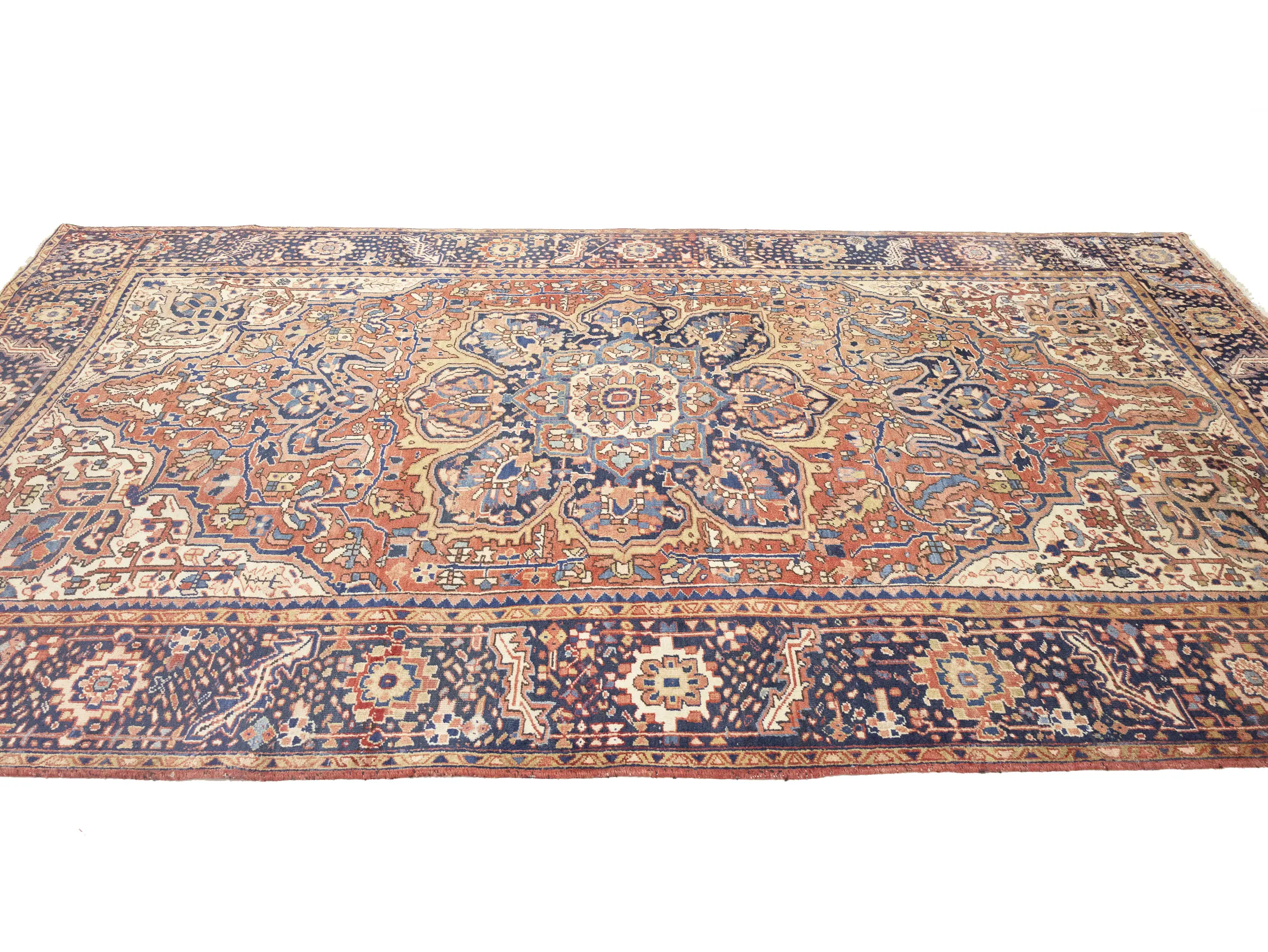 Semi Antique Rusty Red Geometric 8X12 Heriz Persian Rug