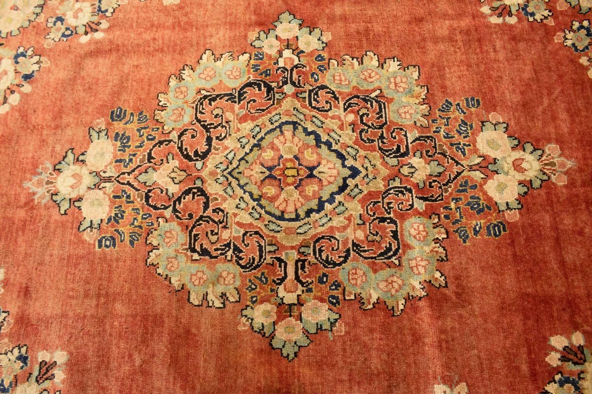 This genuine 10'4X13'6 red vintage Persian rug was made by the hands of gifted weavers inspired by a variety of spectacular artistic designs, to recreate the aged look of the original piece with a richness of color and ornately patterned floral background field. What set this traditional Oriental area rug from the others are the material and dye used (wool pile and cotton foundation), knot count, ancient designs, fantastic grades, and its regional historical connection: it has deep roots, from the story of the people who produced it to the meaning of the symbols and colors displayed across its canvas that have been praised for centuries. This classic home décor carpet will be completely cozy and inviting that never will go out of style! Also, this Oriental rug would be among your most valuable treasures, it is a great investment that accrues value over time, and it will last for generations because was woven with high-quality, all-natural wool; it won’t rip, tear, or shed. Environmentally friendly, opulent yet affordable; this Persian rug will give you a thorough amount of character to help define your living space with elegance and warmth that will capture the eyes and attention of your audience (homeowners, designers, decorators, family and friends). EB-5594