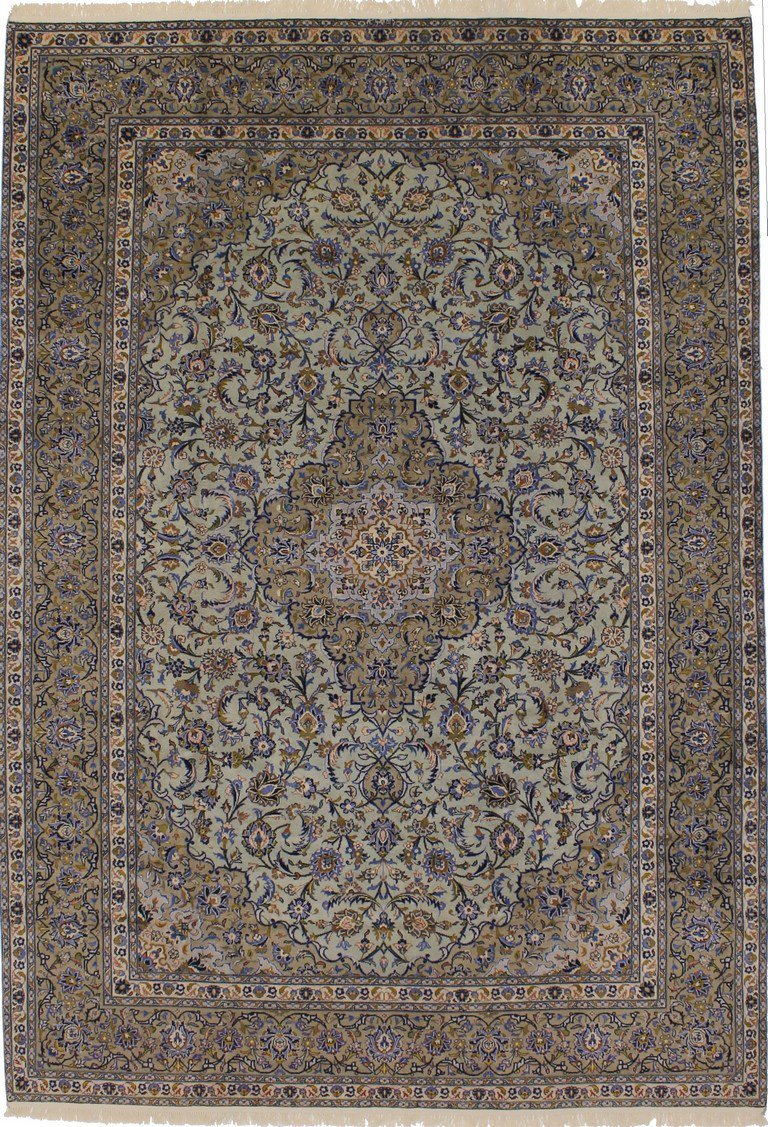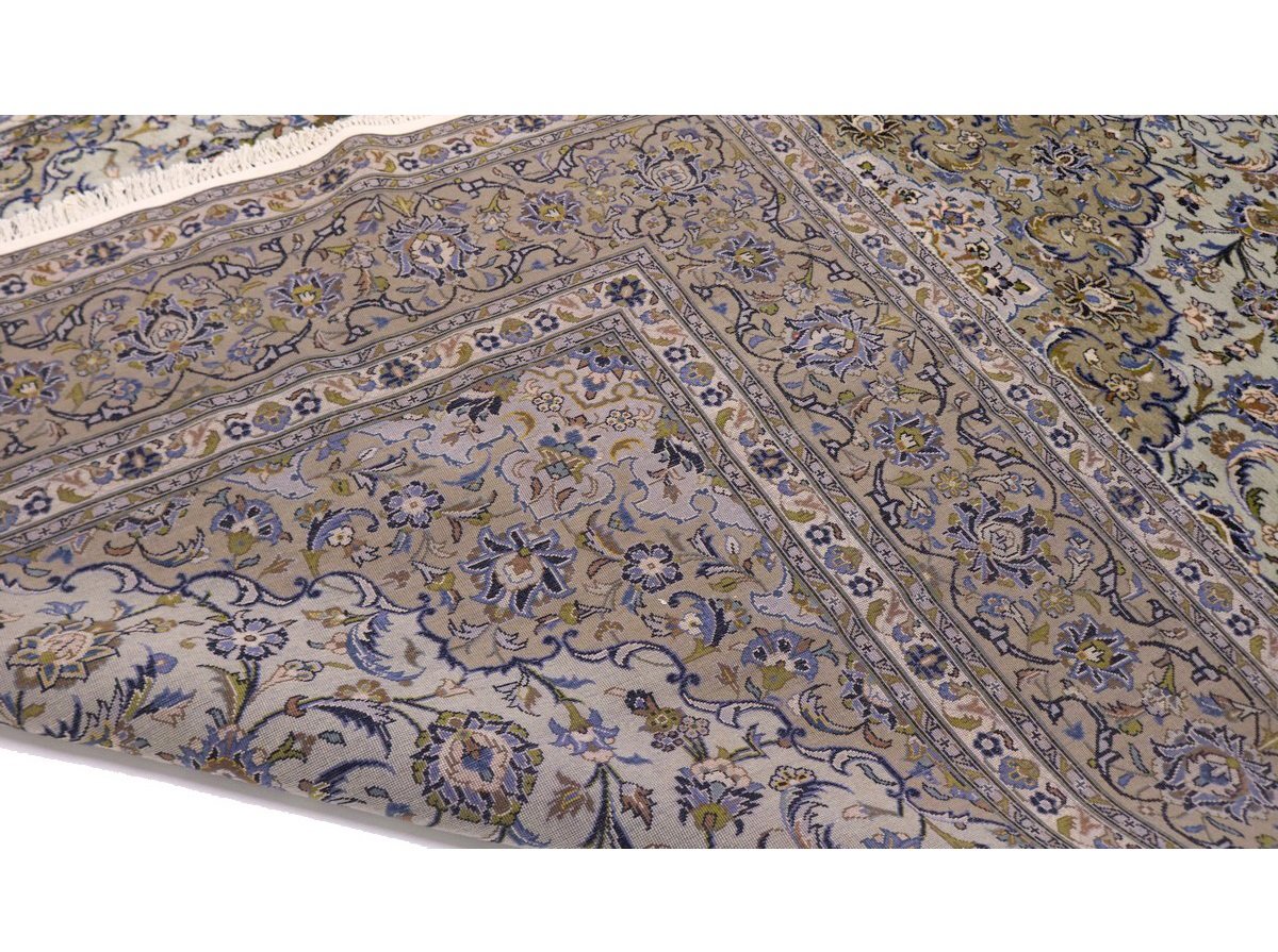 Semi Antique Sage Green Traditional 9X13 Kashan Persian Rug
