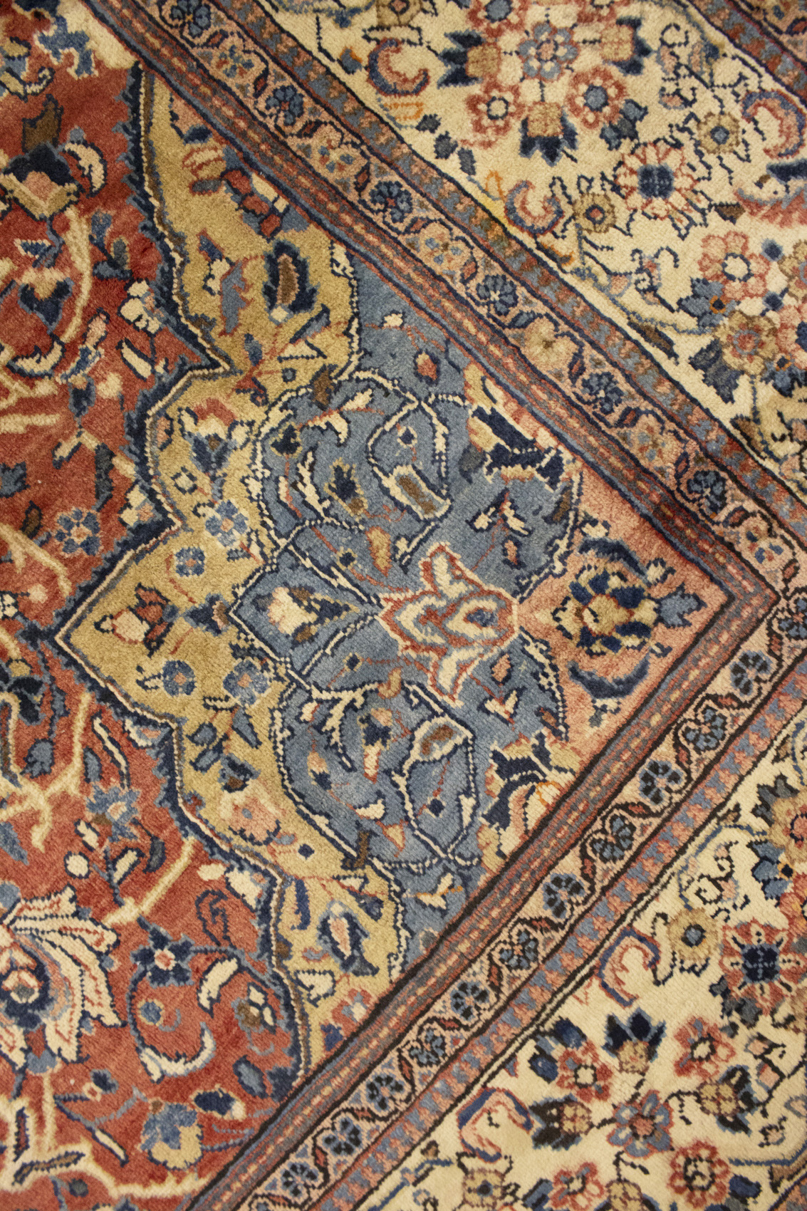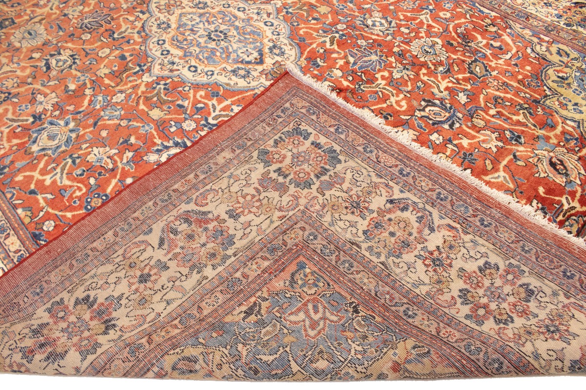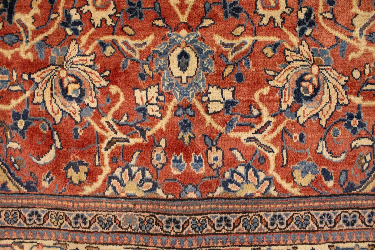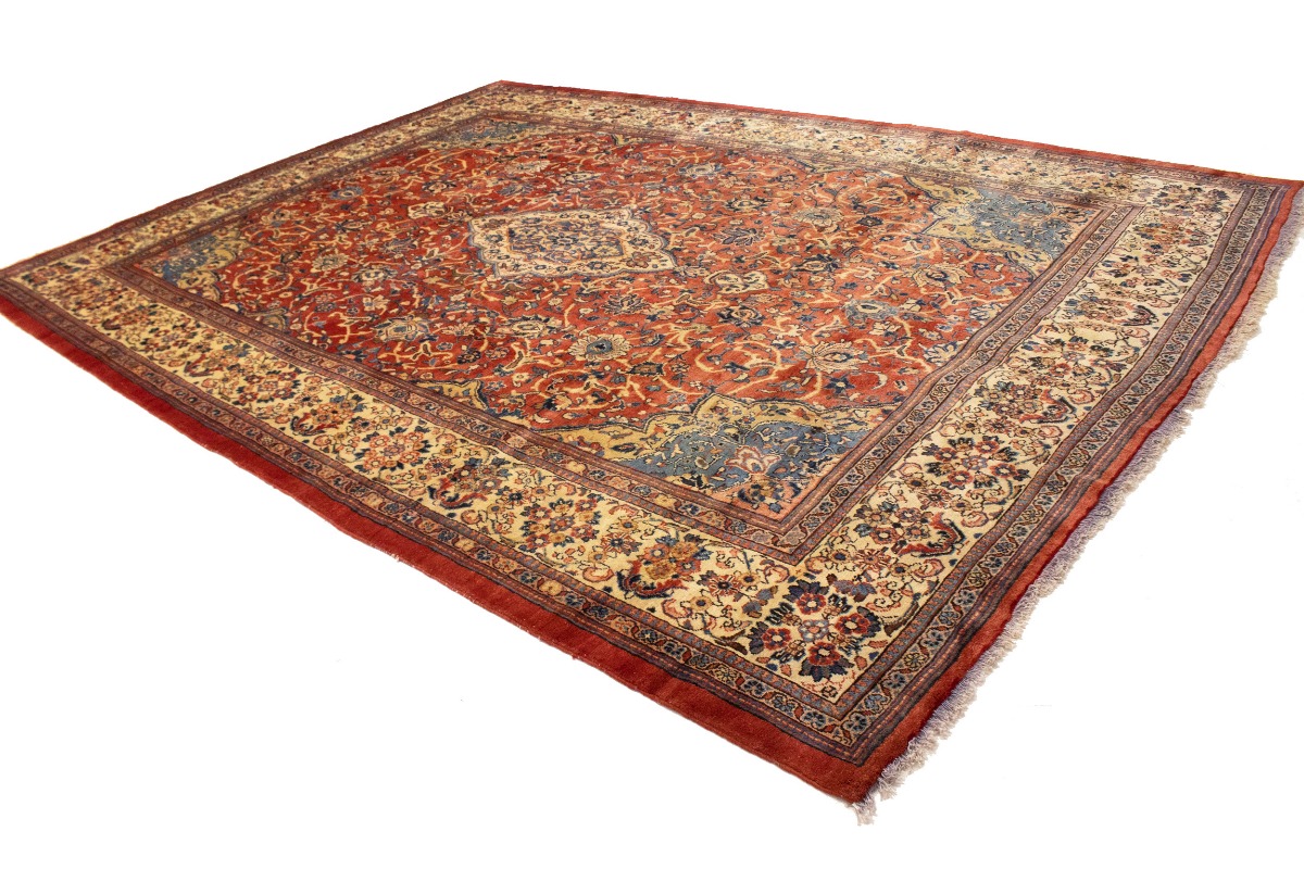 Handmade semi antique 10X14 red Persian rug made with vegetable dyes (fine wool pile and cotton foundation), superior knot count, and appealing ancient designs. This Oriental rug never will go out of style and would be among your most valuable treasures.