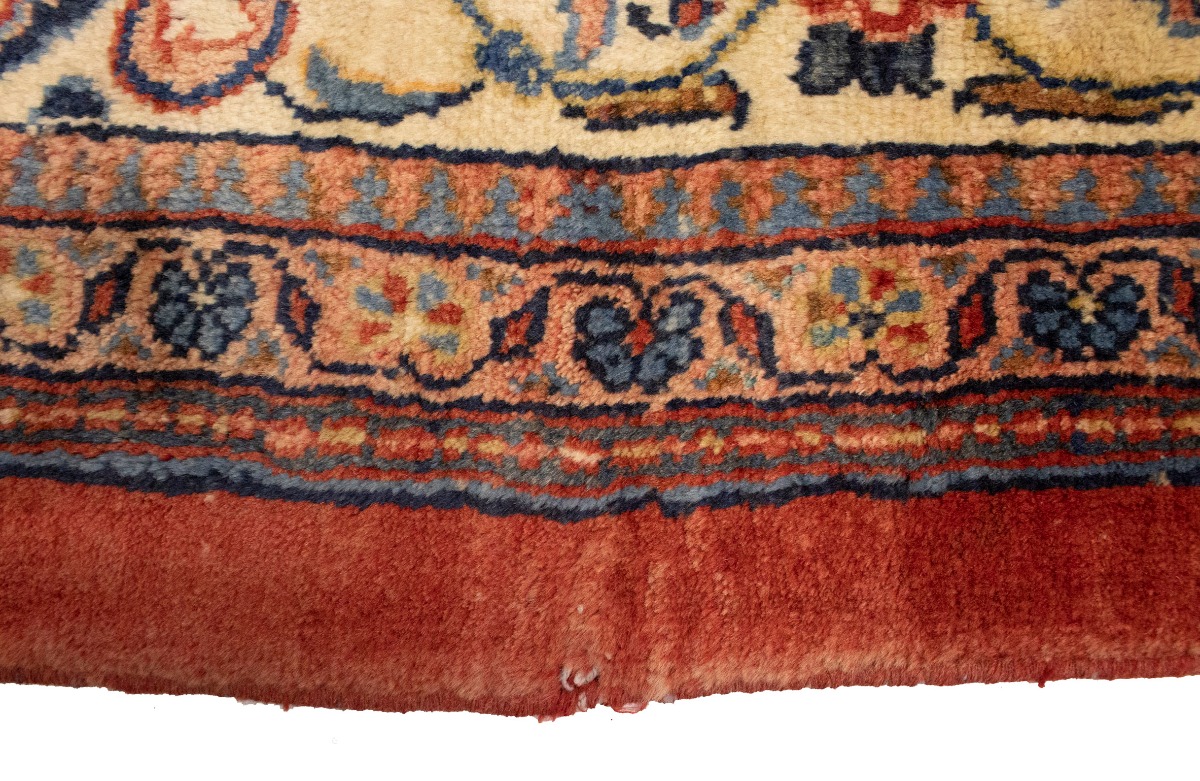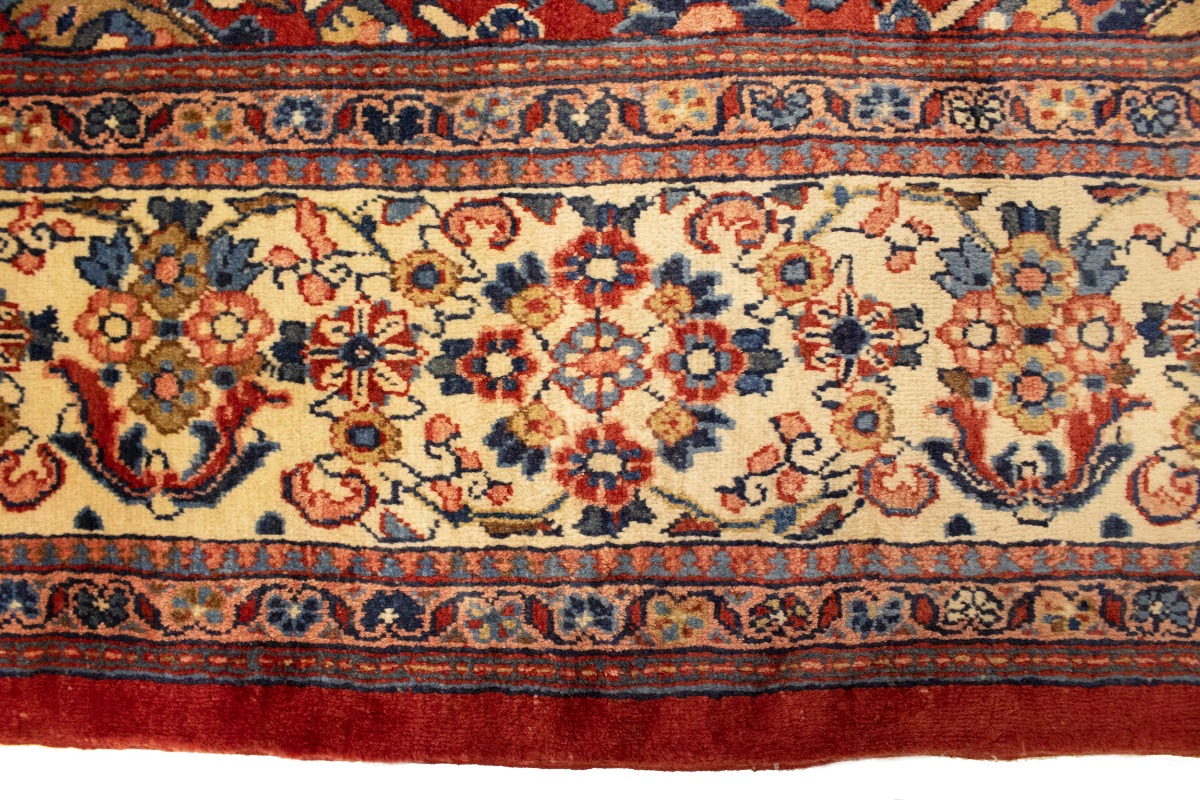 This original 10X14 red vintage Persian rug was crafted by the hands of skilled weavers enthused by a variety of lovely artistic designs, to recreate the aged look of the unique piece with a richness of color and beautifully elaborated floral background field. What set this traditional Oriental area rug from the others are the material and dye used (wool pile and cotton foundation), knot count, ancient designs, fantastic grades, and its regional historical connection: it has deep roots, from the story of the people who produced it to the meaning of the symbols and colors displayed across its canvas that have been praised for centuries. This classic home décor carpet will be completely cozy and inviting that never will go out of style! Also, this Oriental rug would be among your most valuable treasures, it is a great investment that increase in value over time, and it will last for generations because was woven with high-quality, all-natural wool; it won’t rip, tear, or shed. Environmentally friendly, opulent yet affordable; this Persian rug will give you a thorough amount of character to help define your living space with sophistication and warmth that will capture the eyes and attention of your audience (homeowners, designers, decorators, family and friends). EB-5599