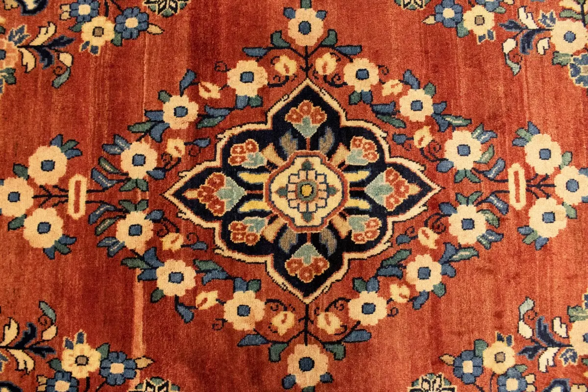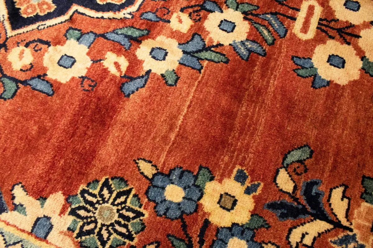 This original 4X7'6 red vintage Persian rug was crafted by the hands of skilled weavers enthused by a variety of lovely artistic designs, to recreate the aged look of the unique piece with a richness of color and beautifully elaborated floral background field. What set this traditional Oriental area rug from the others are the material and dye used (wool pile and cotton foundation), knot count, ancient designs, fantastic grades, and its regional historical connection: it has deep roots, from the story of the people who produced it to the meaning of the symbols and colors displayed across its canvas that have been praised for centuries. This classic home décor carpet will be completely cozy and inviting that never will go out of style! Also, this Oriental rug would be among your most valuable treasures, it is a great investment that increase in value over time, and it will last for generations because was woven with high-quality, all-natural wool; it won’t rip, tear, or shed. Environmentally friendly, opulent yet affordable; this Persian rug will give you a thorough amount of character to help define your living space with sophistication and warmth that will capture the eyes and attention of your audience (homeowners, designers, decorators, family and friends). EB-5690