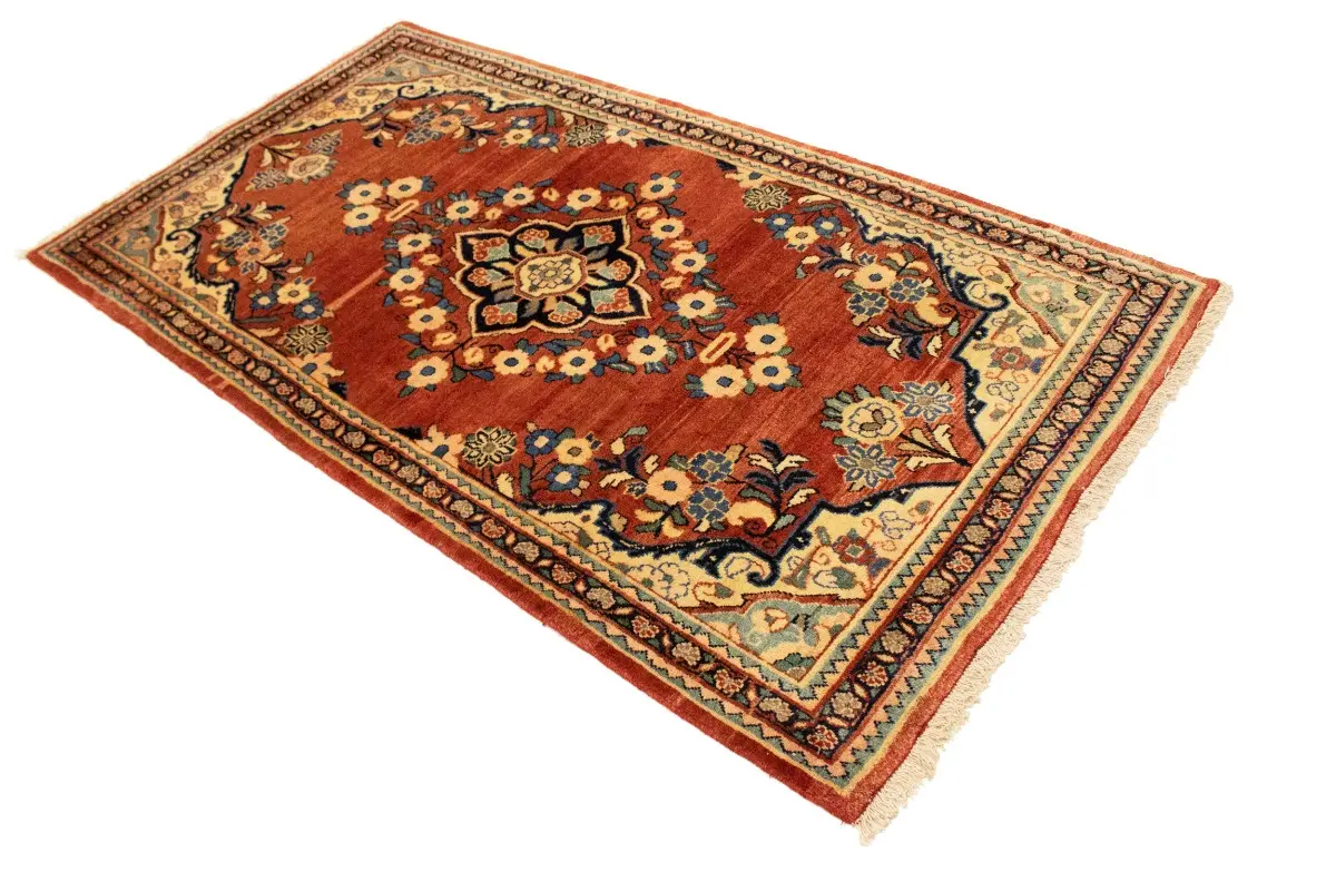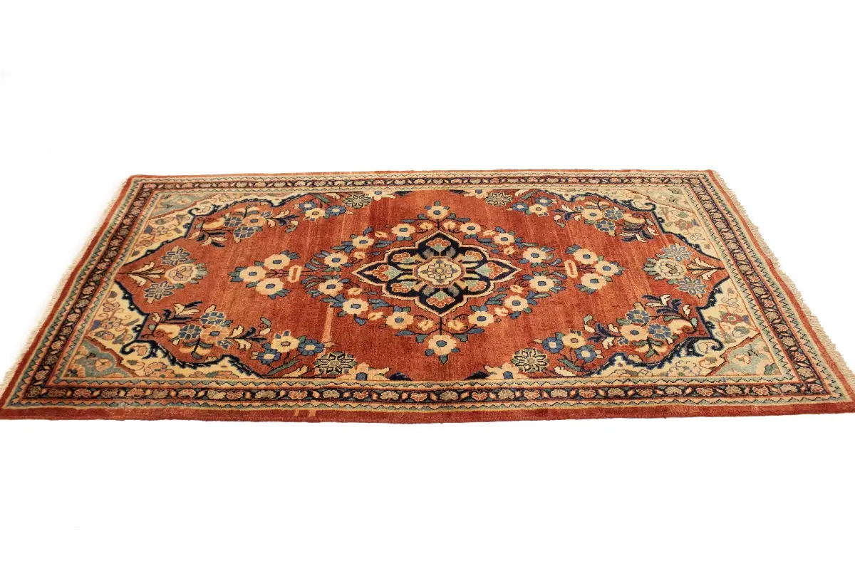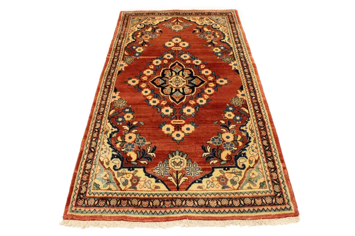 Hand Knotted semi antique 4X7'6 red Persian rug made with vegetable dyes (fine wool pile and cotton foundation), superior knot count, and appealing ancient designs. This Oriental rug never will go out of style and would be among your most valuable treasures.