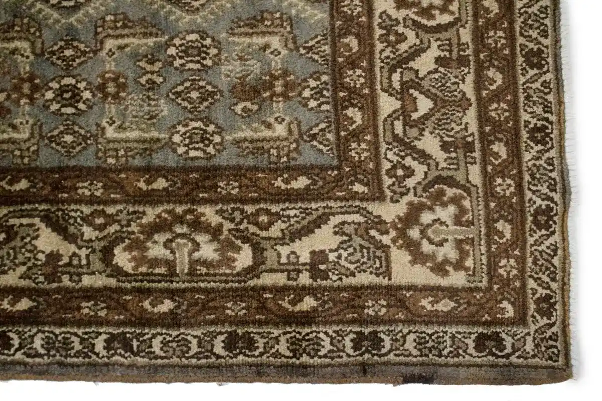 This authentic 4X15 Gray vintage Persian palace runner was finely knotted by the hands of weavers influenced by a variety of amazing artistic designs, to recreate the aged look of the exceptional piece with a richness of color and embellished background field. What set this tribal Oriental area palace runner from the others are the material and dye used (wool pile and cotton foundation), knot count, antique designs, fantastic grades, and its regional historical connection: it has deep roots, from the story of the people who produced it to the meaning of the symbols and colors displayed across its canvas that have been praised for centuries. This home décor carpet will be completely cozy and inviting that never will go out of style! Also, this Oriental palace runner would be among your most valuable treasures, it is a great investment that increase in value over time, and it will last a lifetime because was woven with high-quality, all- natural wool; it won’t rip, tear, or shed. Eco-friendly, opulent yet affordable; this Persian rug will give you an extra pop of character to help define your home environment with luxury and warmth that will capture the eyes and attention of your audience (homeowners, designers, decorators, family and friends). EB-1045