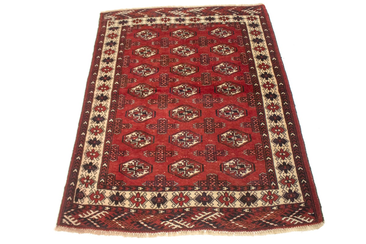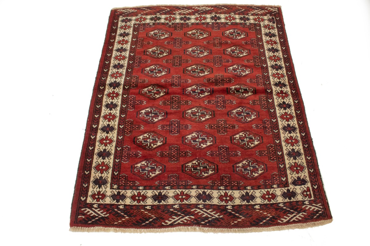 Semi Antique Tribal Red 4X5 Turkoman Persian Rug