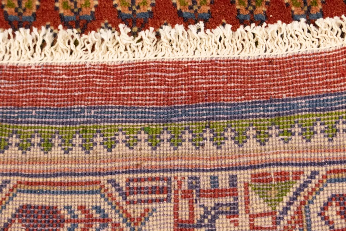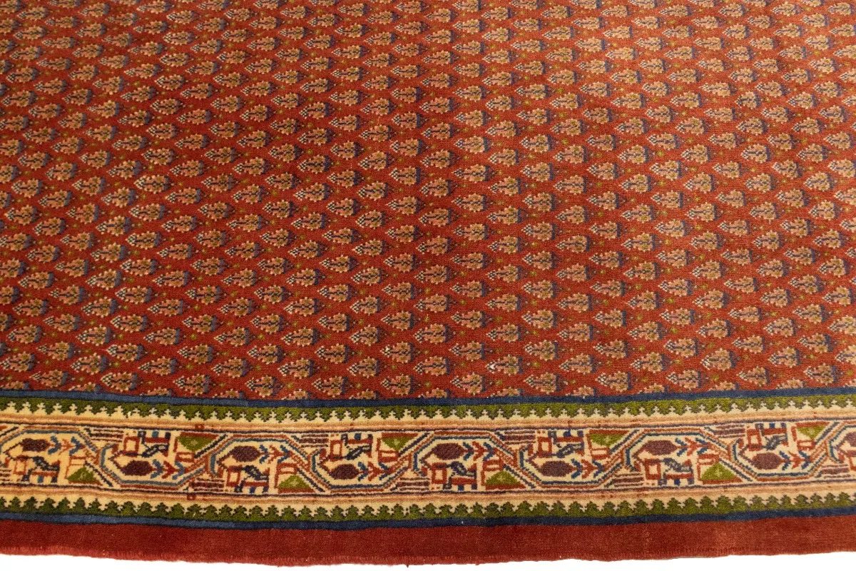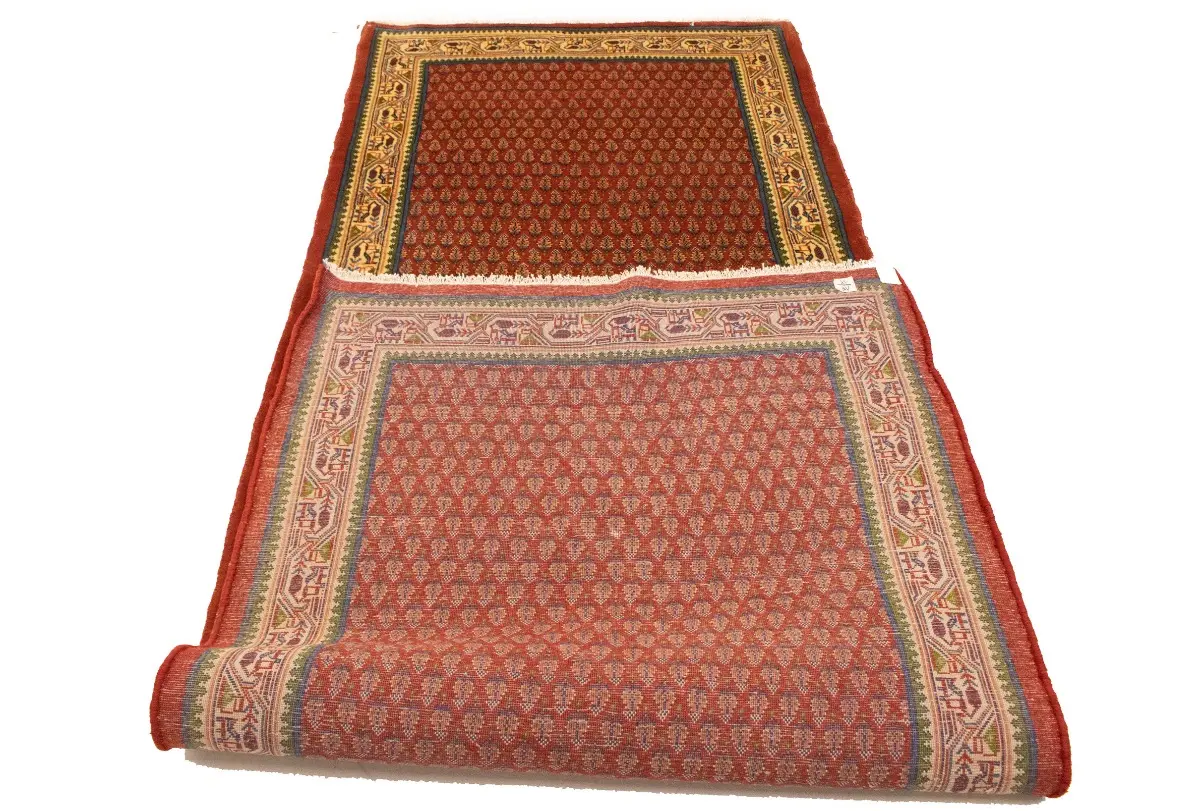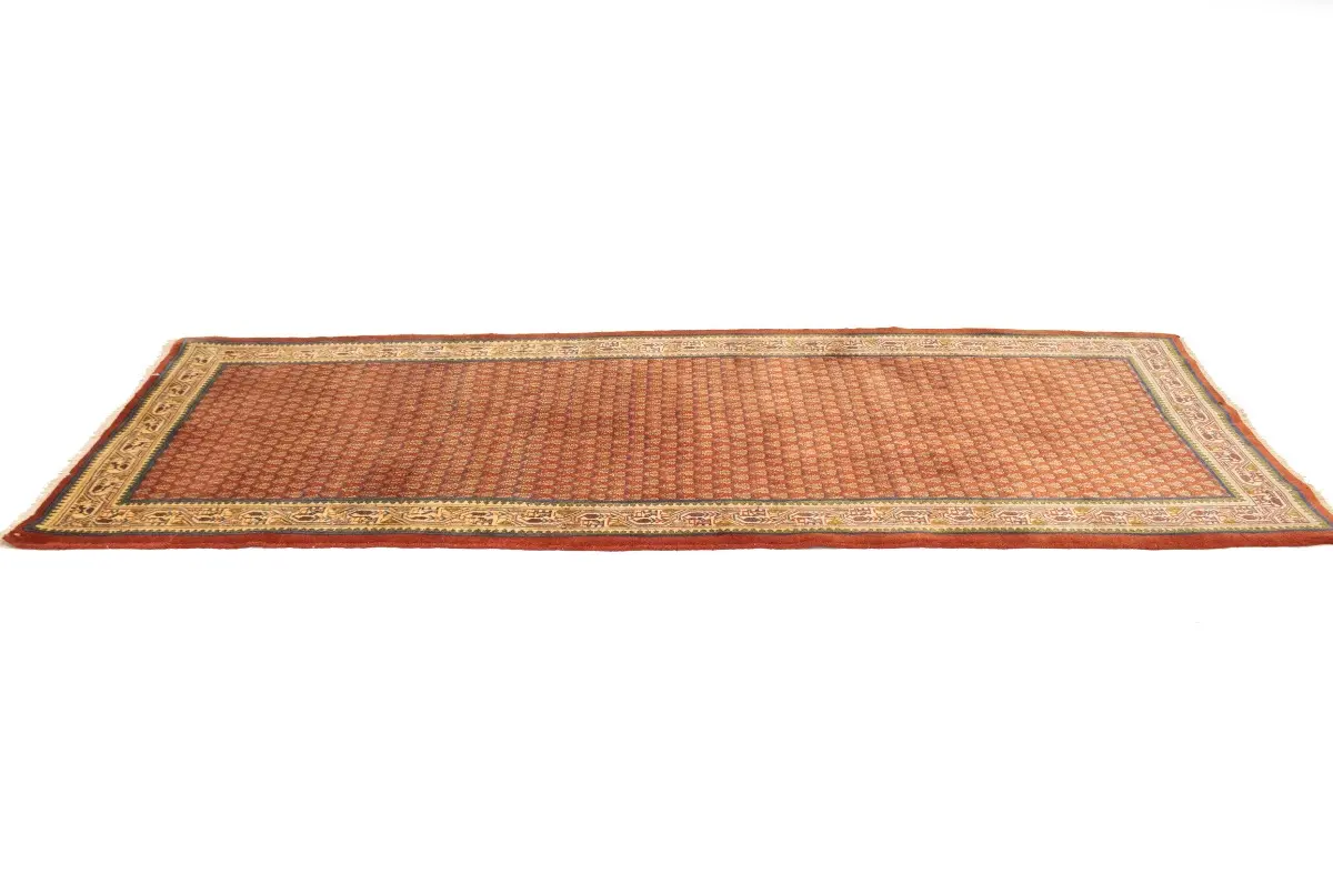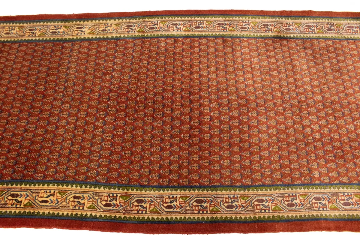 Hand Knotted semi antique 3'7X9'8 red Persian runner made with vegetable dyes (fine wool pile and cotton foundation), exceptional knot count, and alluring ancient designs. This Oriental runner never will go out of style and would be among your most valuable treasures.