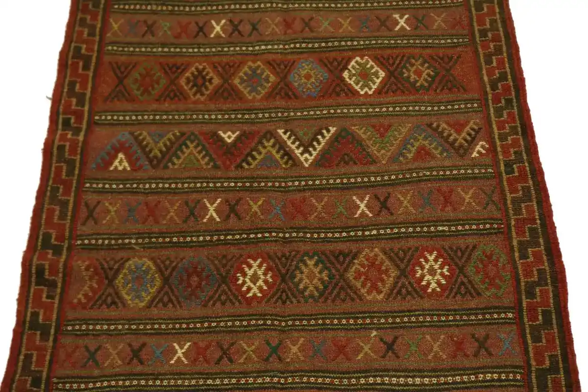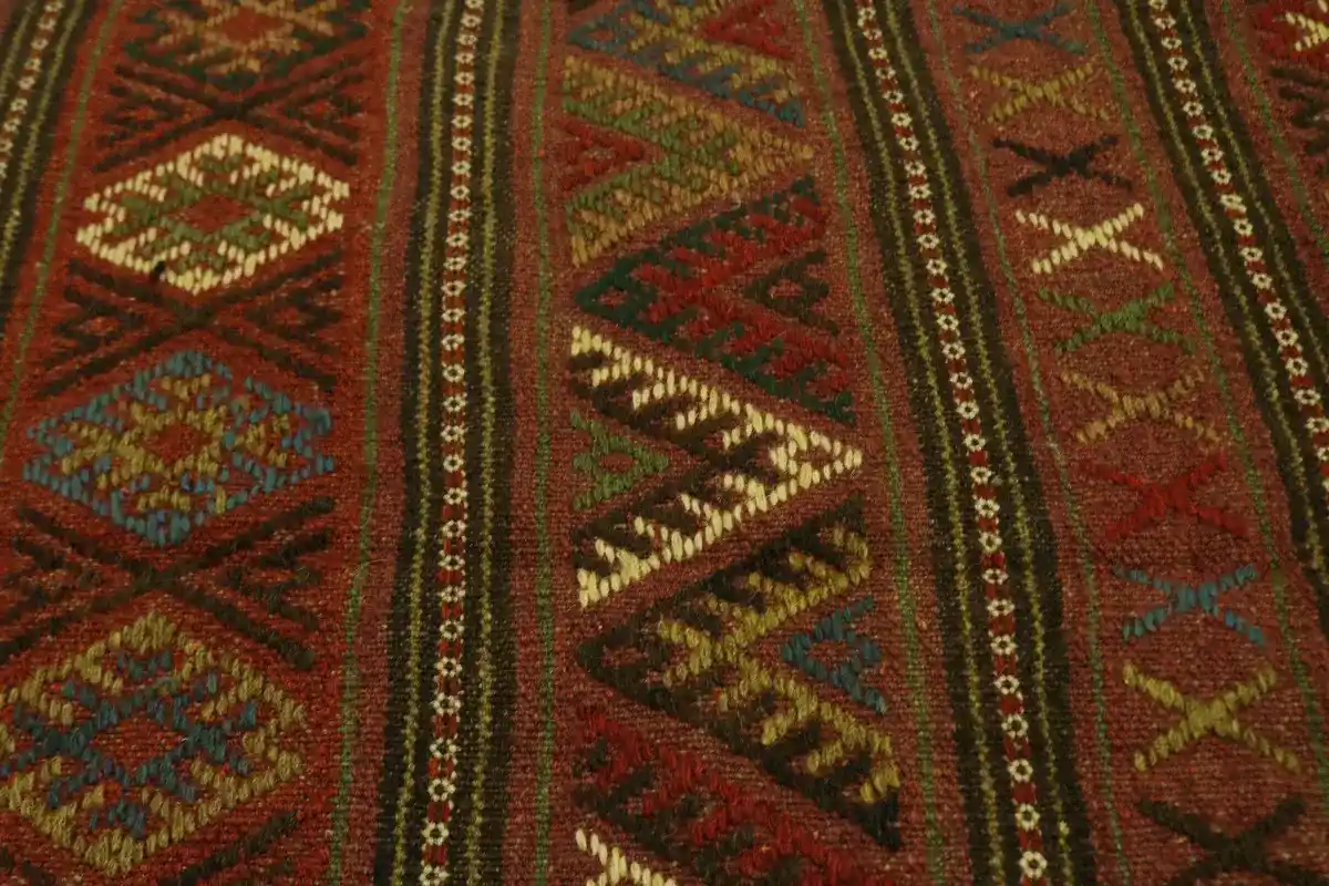 This original 4X7 multicolored Persian rug was crafted by the hands of skilled weavers enthused by a variety of lovely artistic designs, to recreate the aged look of the unique piece with a richness of color and beautifully elaborated background field. What set this tribal Oriental area rug from the others are the material and dye used (wool pile and cotton foundation), knot count, ancient designs, fantastic grades, and its regional historical connection: it has deep roots, from the story of the people who produced it to the meaning of the symbols and colors displayed across its canvas that have been praised for centuries. This home décor carpet will be completely cozy and inviting that never will go out of style! Also, this Oriental rug would be among your most valuable treasures, it is a great investment that increase in value over time, and it will last for generations because was woven with high-quality, all-natural wool; it won’t rip, tear, or shed. Environmentally friendly, opulent yet affordable; this Persian rug will give you a thorough amount of character to help define your living space with sophistication and warmth that will capture the eyes and attention of your audience (homeowners, designers, decorators, family and friends). EB-1154