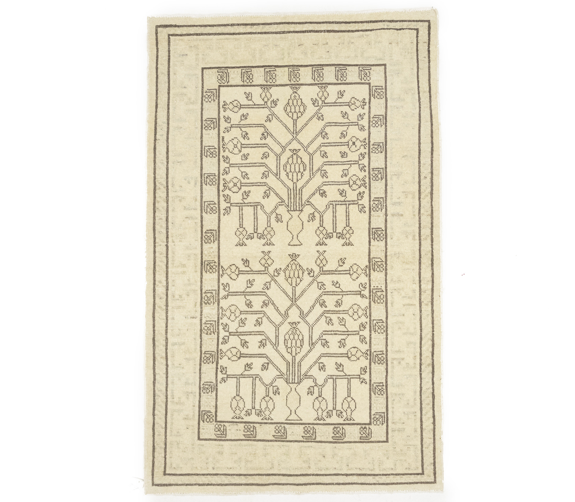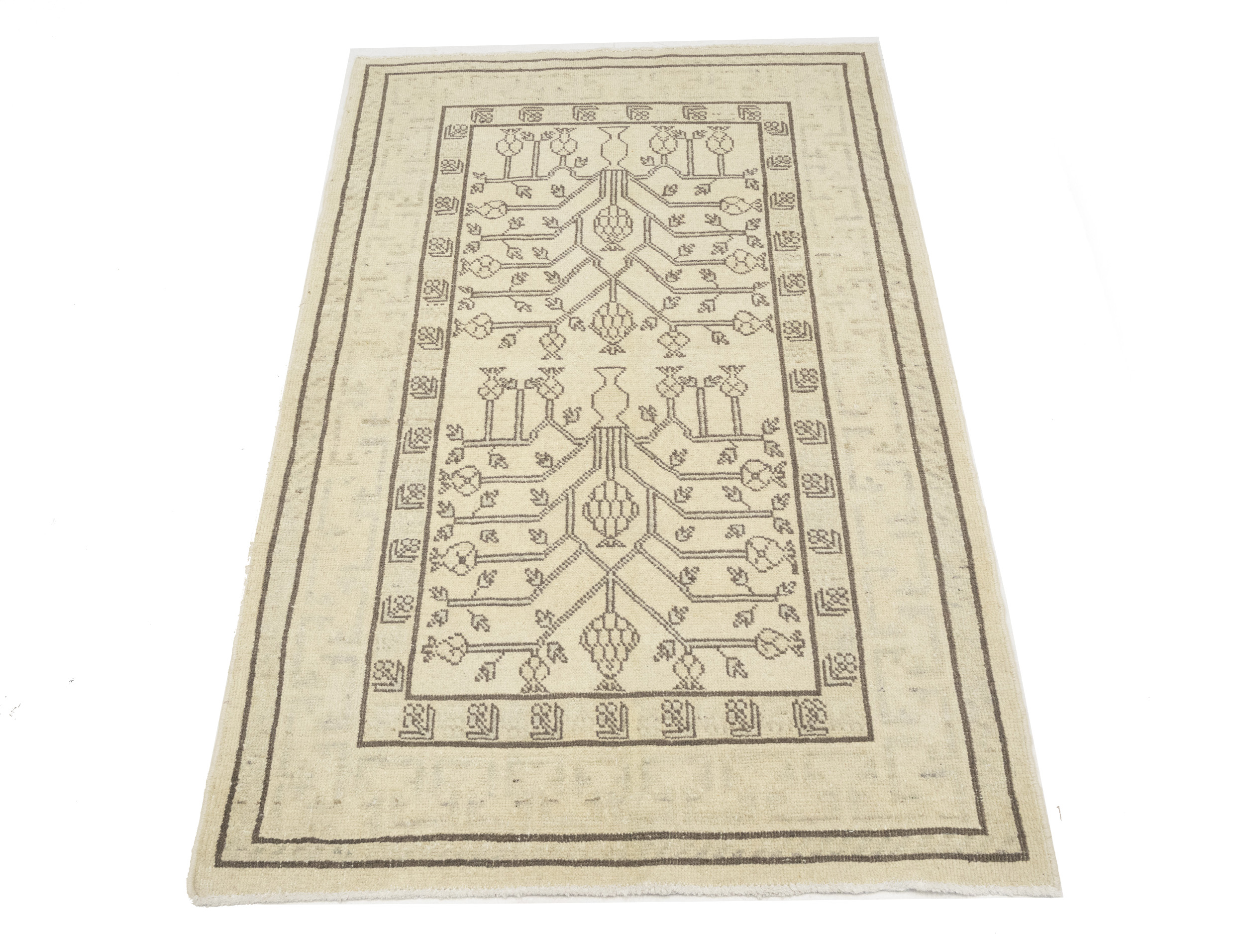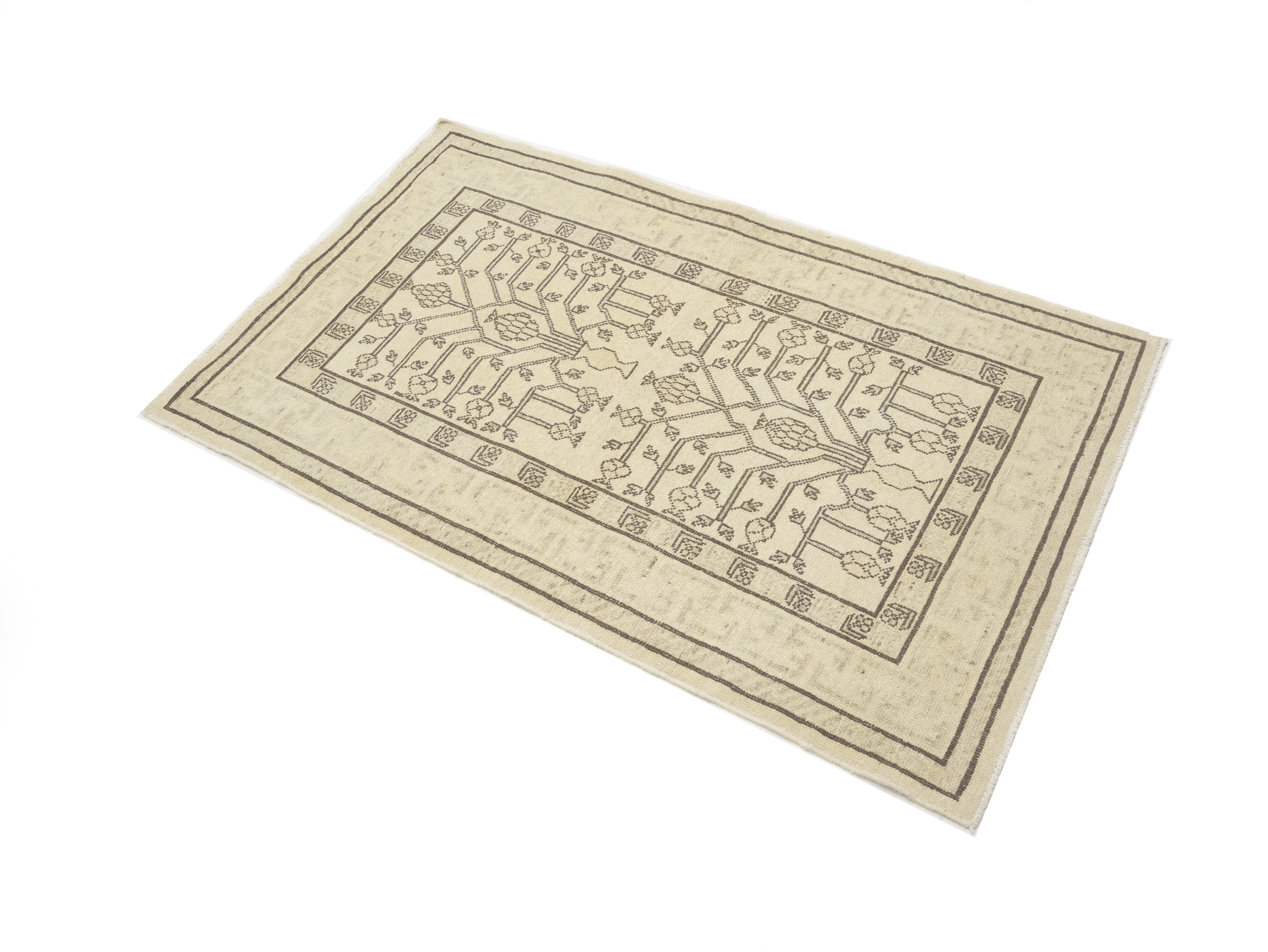Handmade vintage 3X5 Beige rug made with natural dyes (fine wool pile and cotton foundation), superior knot count, and appealing ancient designs. This Oriental rug never will go out of style and would be among your most valuable treasures.