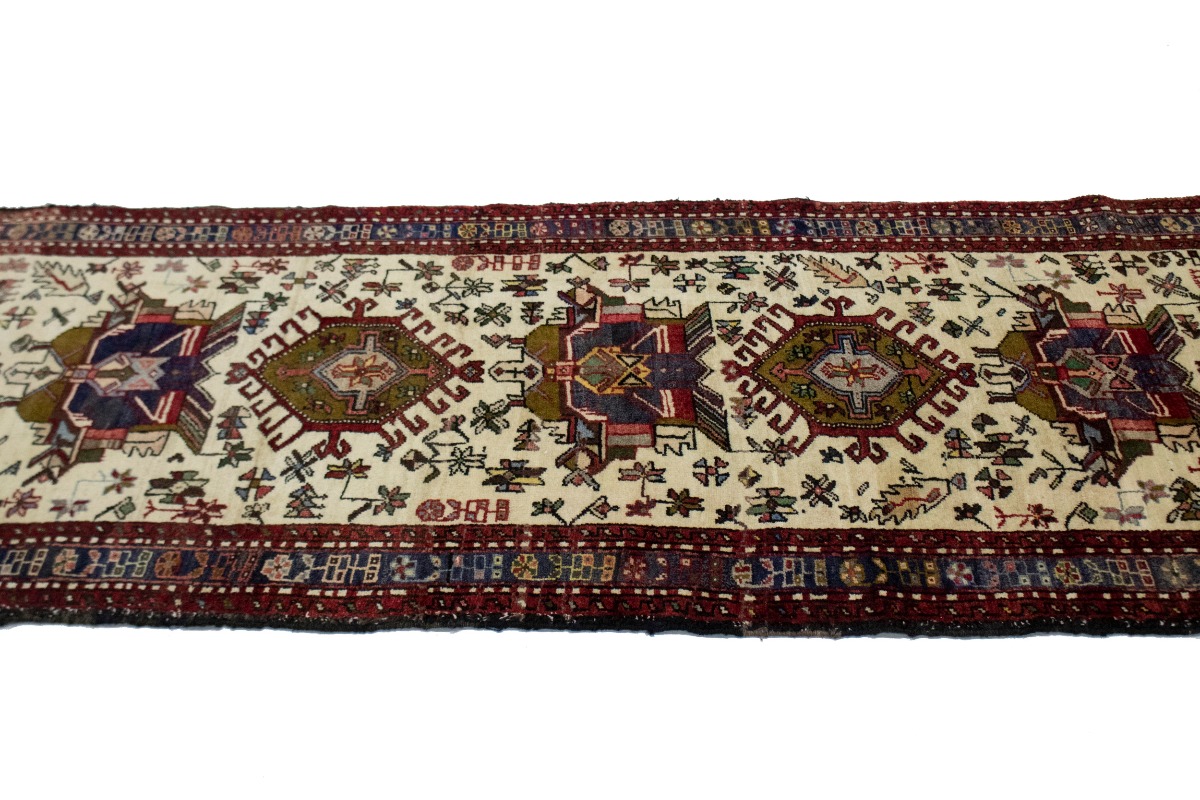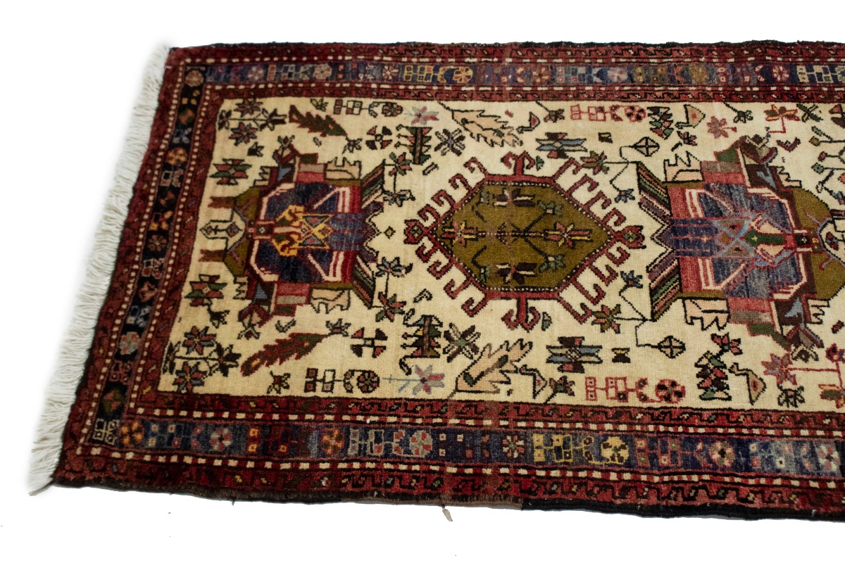 This original 3X13 cream/beige vintage Persian runner was crafted by the hands of skilled weavers enthused by a variety of lovely artistic designs, to recreate the aged look of the unique piece with a richness of color and beautifully elaborated background field. What set this geometric Oriental area runner from the others are the material and dye used (wool pile and cotton foundation), knot count, ancient designs, fantastic grades, and its regional historical connection: it has deep roots, from the story of the people who produced it to the meaning of the symbols and colors displayed across its canvas that have been praised for centuries. This home décor carpet will be completely cozy and inviting that never will go out of style! Also, this Oriental runner would be among your most valuable treasures, it is a great investment that increase in value over time, and it will last for generations because was woven with high-quality, all-natural wool; it won’t rip, tear, or shed. Environmentally friendly, opulent yet affordable; this Persian rug will give you a thorough amount of character to help define your living space with sophistication and warmth that will capture the eyes and attention of your audience (homeowners, designers, decorators, family and friends). EB-3917