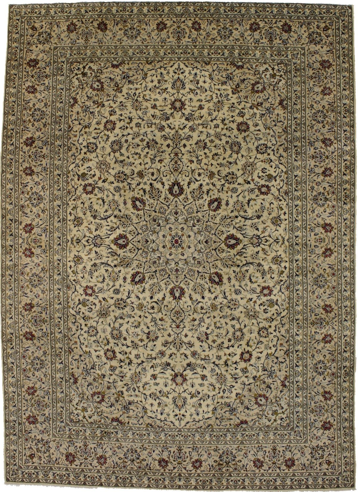Vintage Beige Traditional 9'7'X13'5" Kashan Persian Rug