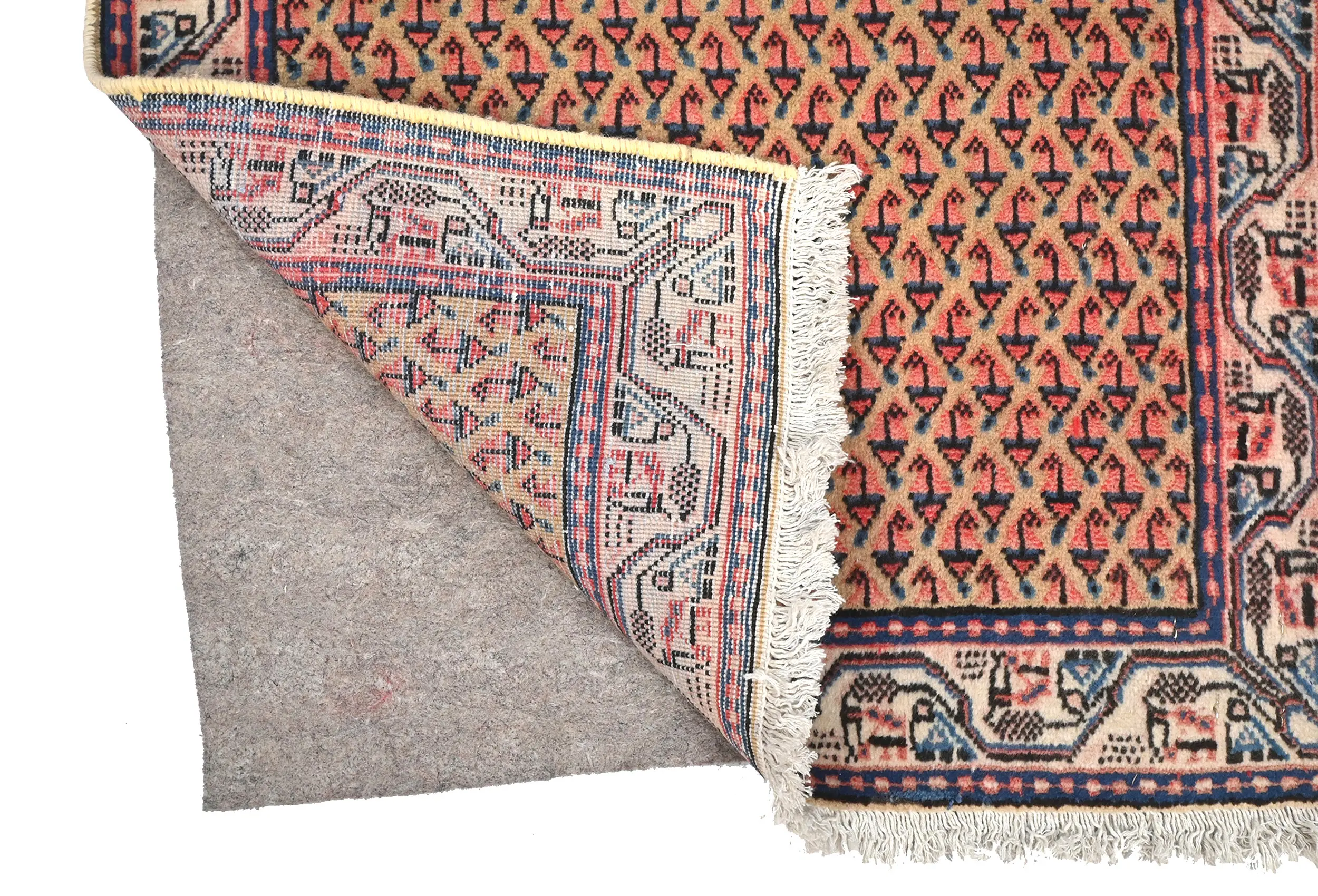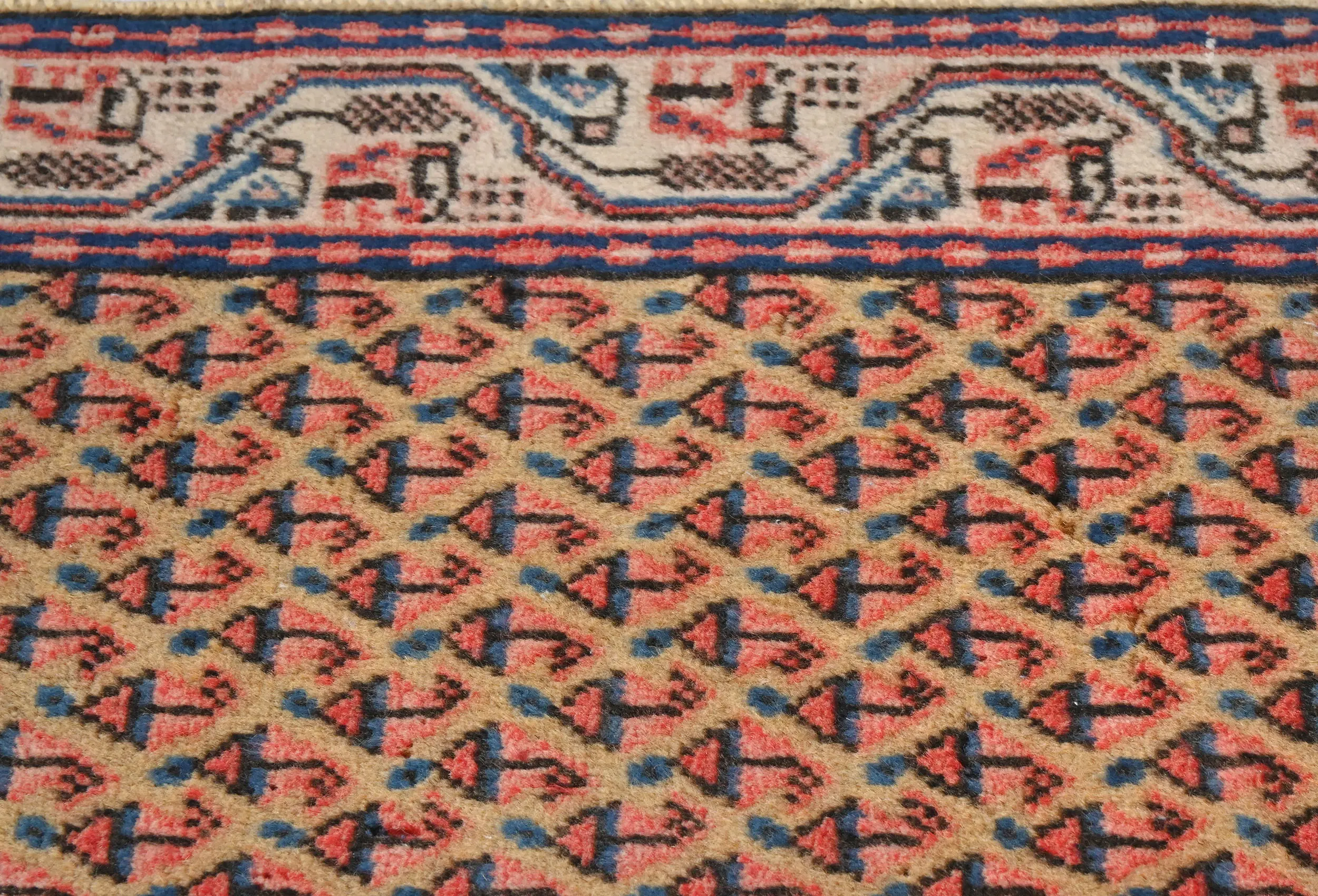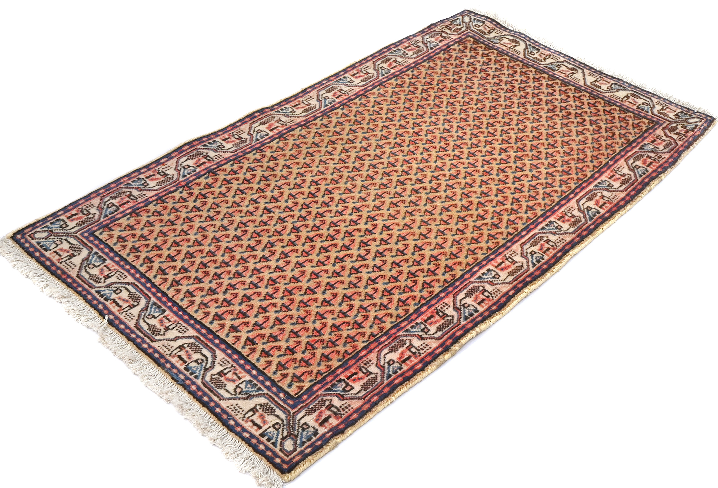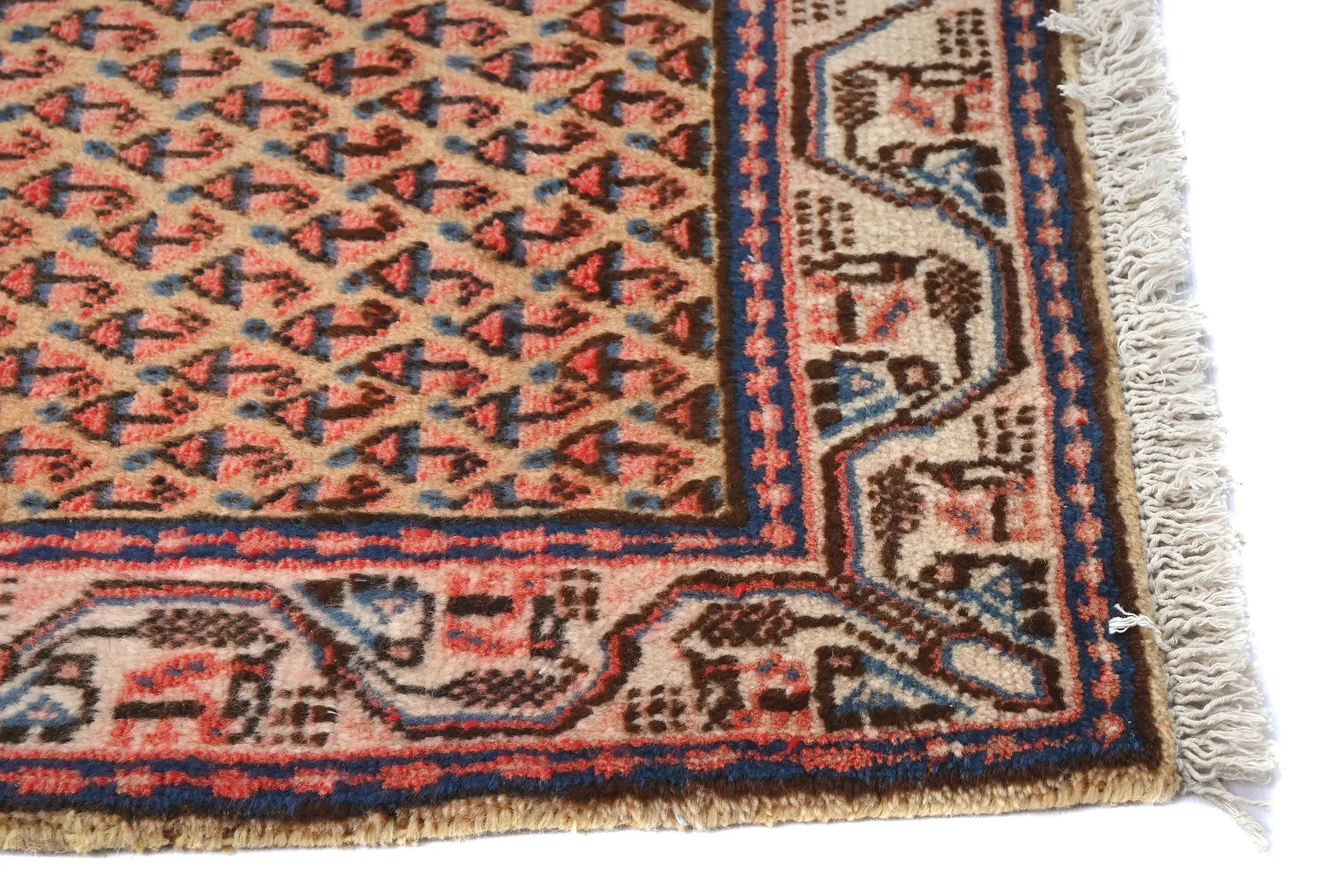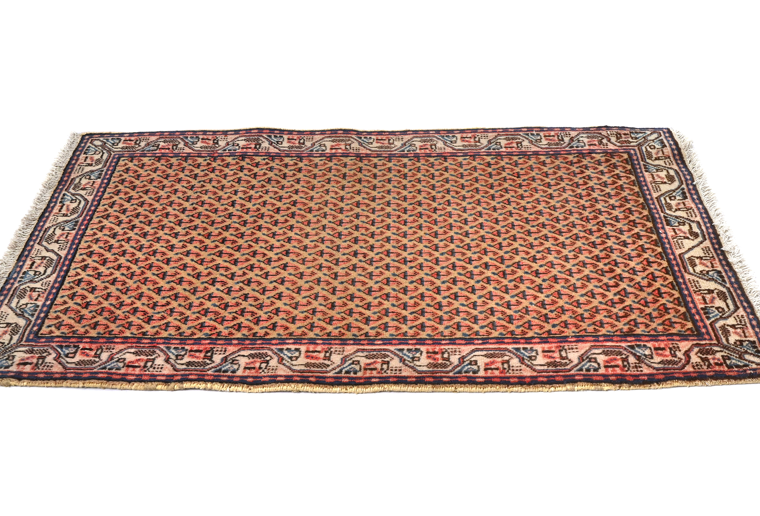 Handmade vintage 2X4 beige Persian rug made with vegetable dyes (fine wool pile and cotton foundation), superior knot count, and alluring ancient designs. This Oriental rug never will go out of style and would be among your most valuable treasures.