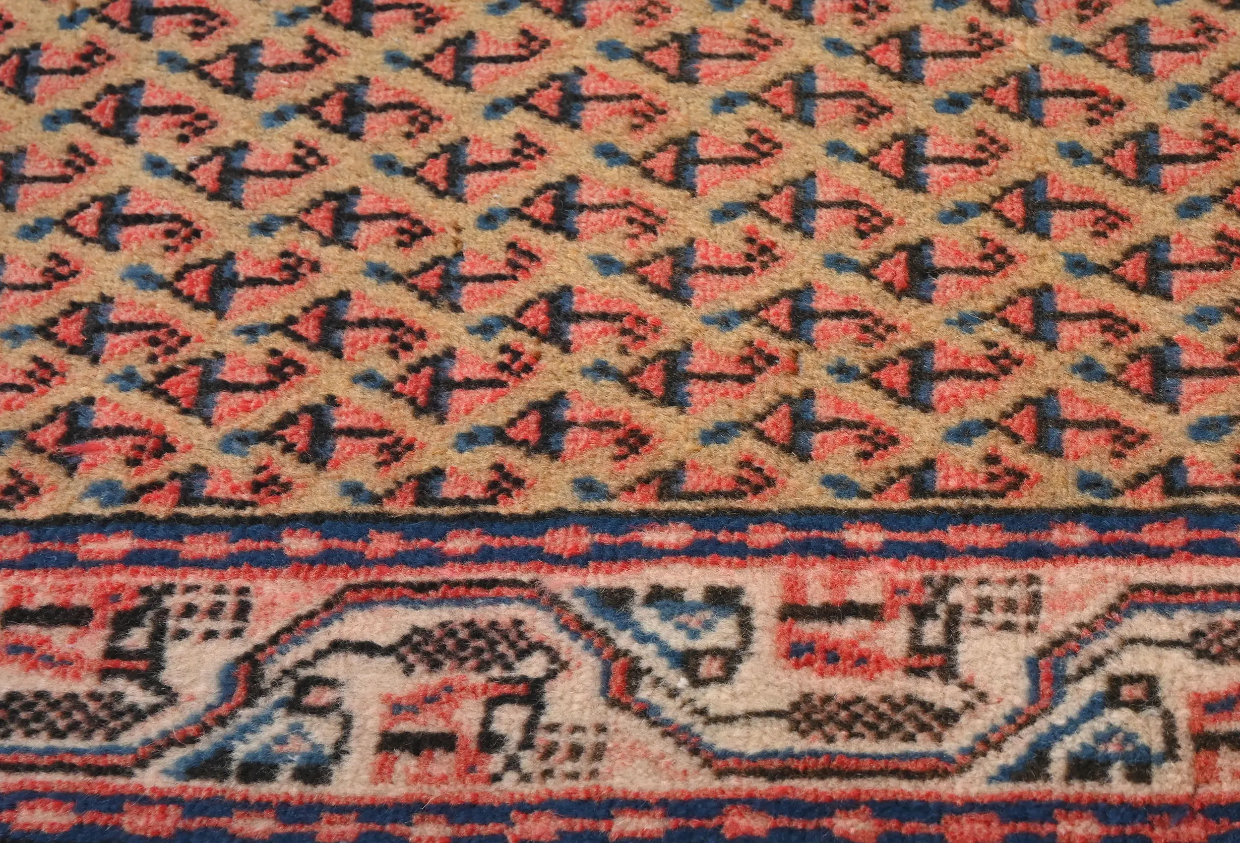 This authentic 2X4 beige vintage Persian rug was finely knotted by the hands of weavers influenced by a variety of amazing artistic designs, to recreate the aged look of the exceptional piece with a richness of color and embellished floral background field. What set this traditional Oriental area rug from the others are the material and dye used (wool pile and cotton foundation), knot count, antique designs, fantastic grades, and its regional historical connection: it has deep roots, from the story of the people who produced it to the meaning of the symbols and colors displayed across its canvas that have been praised for centuries. This classic home décor carpet will be completely cozy and inviting that never will go out of style! Also, this Oriental rug would be among your most valuable treasures, it is a great investment that increase in value over time, and it will last a lifetime because was woven with high-quality, all-natural wool; it won’t rip, tear, or shed. Eco-friendly, opulent yet affordable; this Persian rug will give you an extra pop of character to help define your home environment with luxury and warmth that will capture the eyes and attention of your audience (homeowners, designers, decorators, family and friends). EB-6805