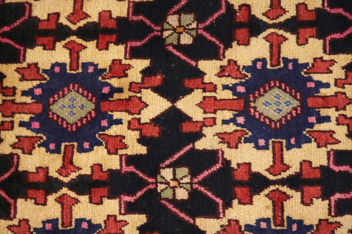 Handmade Vintage Persian rug/runner made with natural dyes (fine wool pile and cotton foundation), superior knot count, and appealing ancient designs. This Oriental rug/runner never will go out of style and would be among your most valuable treasures.