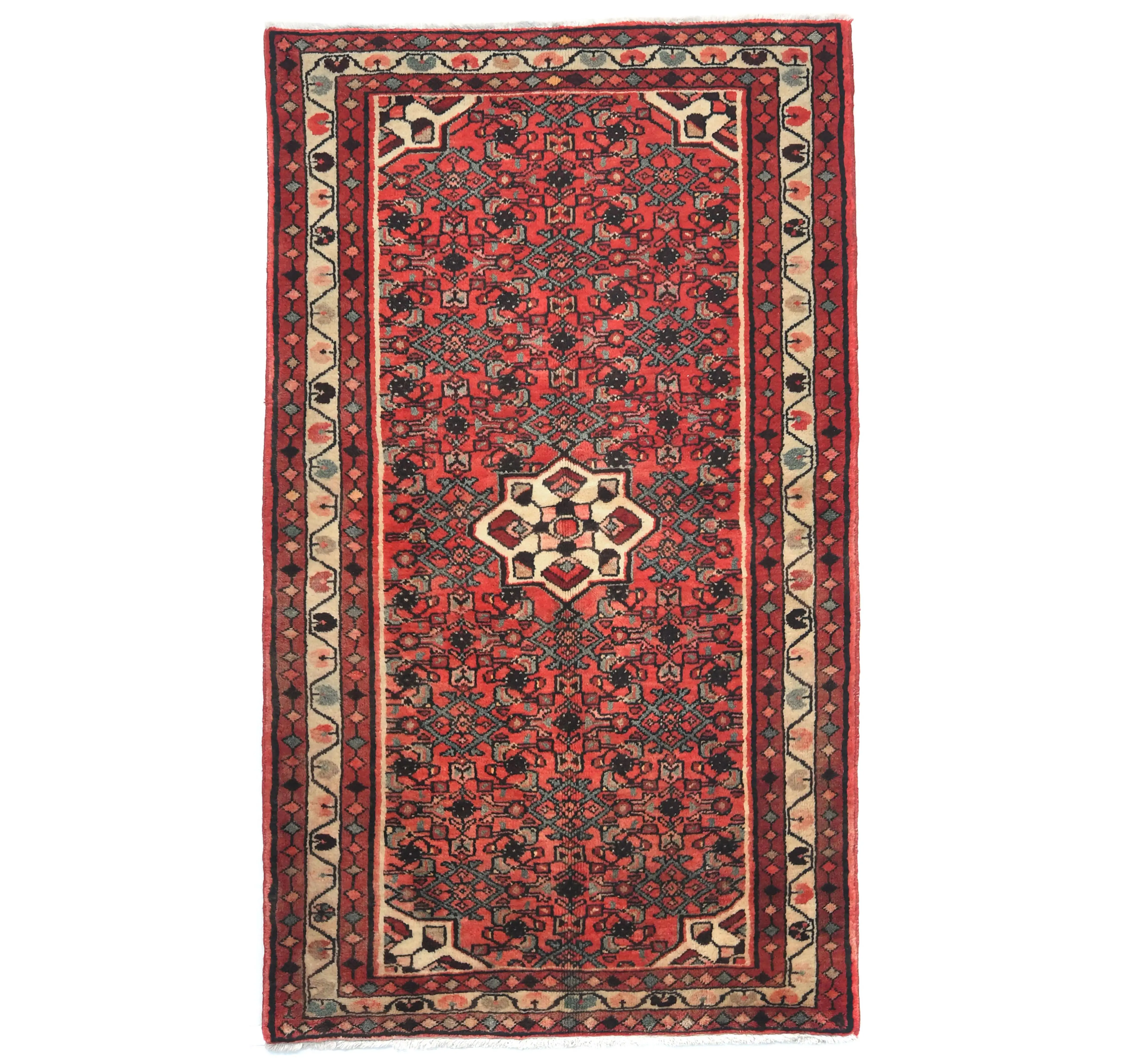 Vintage Bittersweet Red Floral Tribal 3'7X6'0 Hamedan Persian Rug